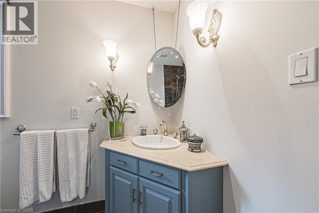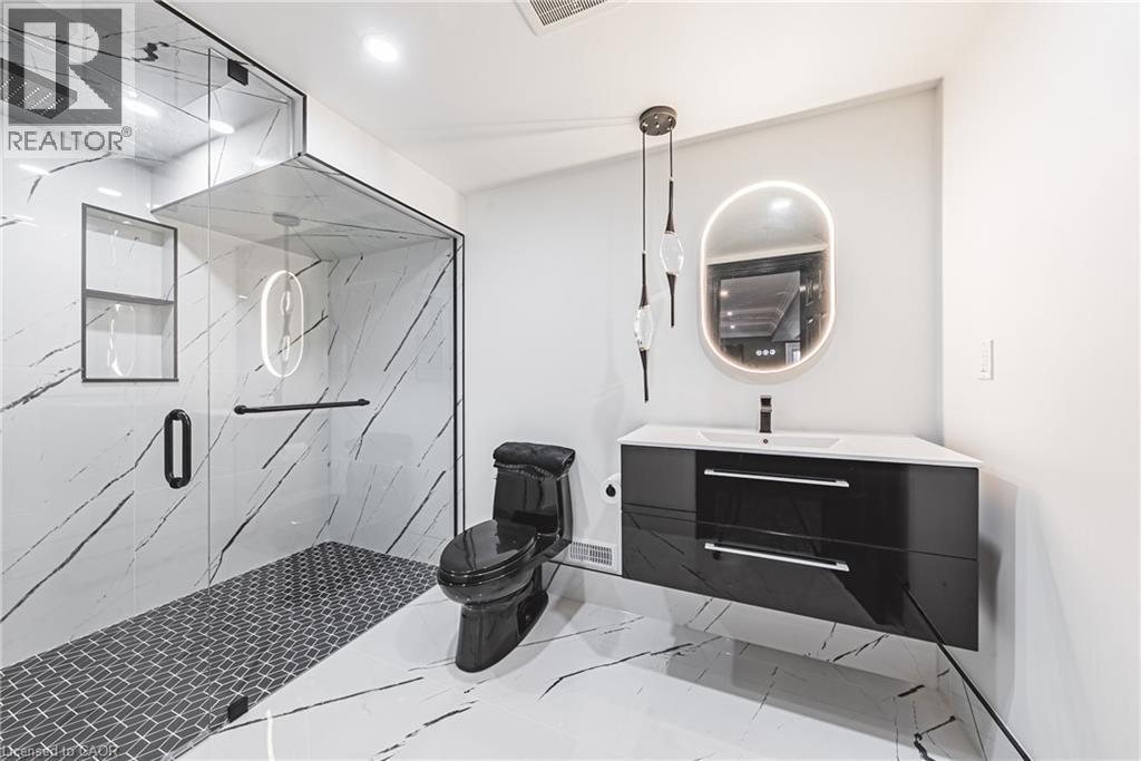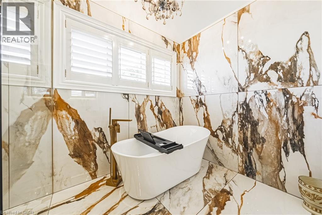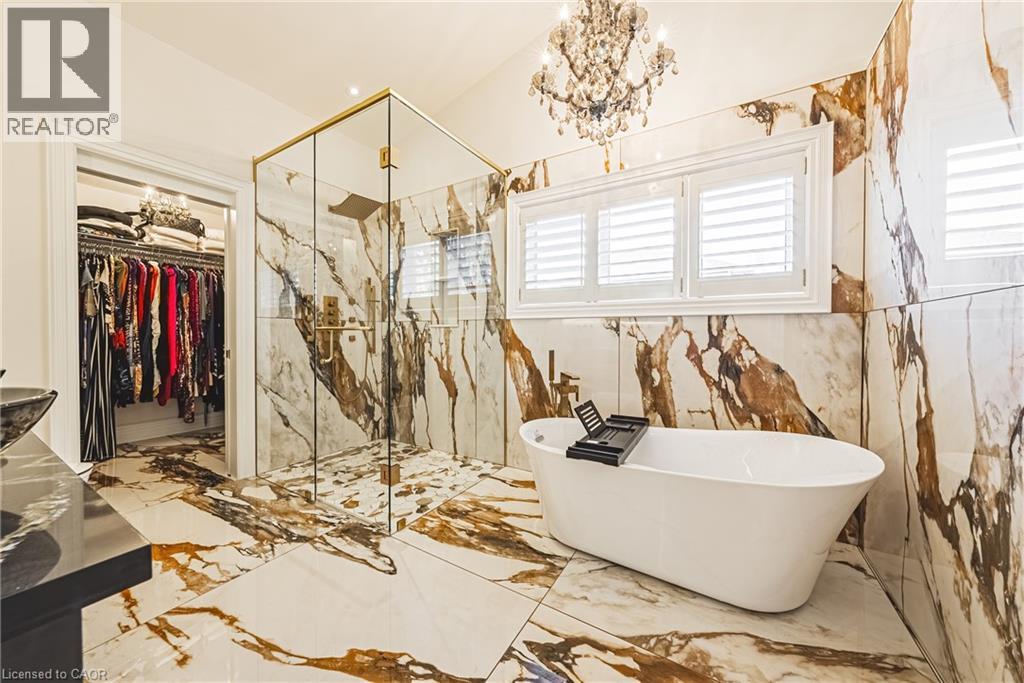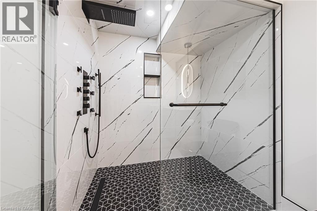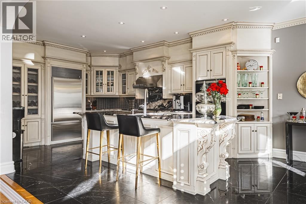 Unique, custom-built luxury home offering just over 5000 sq ft of Finished Living Space. Attention to detail & fine construction throughout, this home offers elegance, comfort, & functionality. Step into the grand sitting area, featuring soaring ceilings, stunning windows, & an impressive open staircase that connects all levels of the home. Sunken dining room boasts coffered gold leafing ceilings for refined entertaining. Custom Built Downsview kitchen offers abundant cabinetry, granite countertops, & top-of-the-line stainless steel appliances, including a Sub-Zero refrigerator, Wolf gas range, Gaggenau built-in oven, Miele dishwasher, & microwave storage. Relax or entertain in the expansive great room, featuring dramatic ceiling heights & a backlit onyx walls for your tv. An open-concept office with natural light, perfect workspace. Main-floor laundry room includes garage access. Upstairs, the spacious primary suite offers a large walk-in closet & a renovated 5-piece ensuite (2025). Two generous bedrooms share a beautifully appointed 4-piece bathroom, & a bright loft area overlooks both the front & rear of the home. The lower level features large windows & offers in-law suite potential with separate walk-ups to both the rear yard & garage. Cozy recreation room with fireplace, a fully equipped gym, a sauna for relaxation, 3 pc bath (2025), workshop, cold room, & plenty of storage space. The outdoor oasis includes a composite deck with built-in BBQ, hot tub, & an oversized waterfall feature with fireplace, artificial turf & a storage shed. Additional highlights include an oversized 2-car garage with abundant storage & a long interlock driveway accommodating up to 8 vehicles & irrigation system. Trillium award several years for landscaping. Ideally located near Tiffany Falls, Tamahaac Club, Highway 403, the Linc, Costco, schools, parks, & trails, luxury living with convenience & lifestyle. (id:4555)
