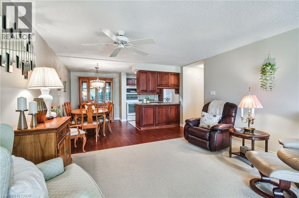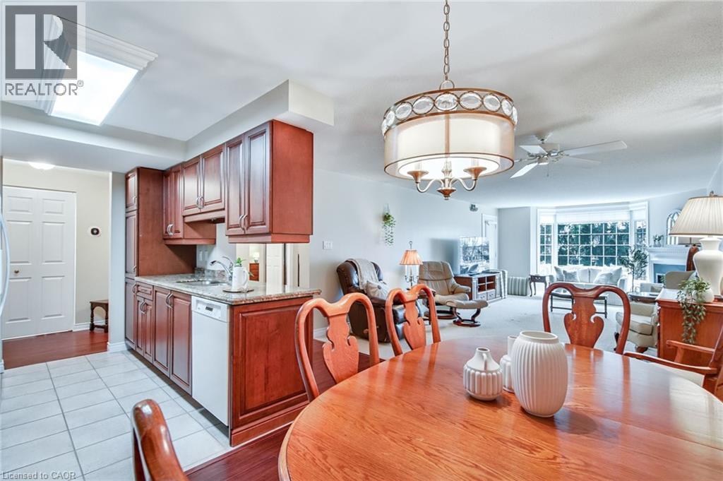 Beautiful 2-bedroom, 2-bathroom condo in a quiet pocket of Ancaster. Patio backs on to green space & the unit is extremely spacious - perfect for downsizers who don't want to sacrifice their living space! Stunning cabinetry in the kitchen, granite countertops and the hardwood in the dining room is in impeccable shape. Hunter Douglas remote controlled blinds and California Shutters. . Walking distance to parks, schools, Meadowlands shopping with its movie theatre, LCBO, Costco and its many restaurants. Easy highway & Linc access. Furnace 2024, A/C 2024, fireplace 2021 (id:4555)