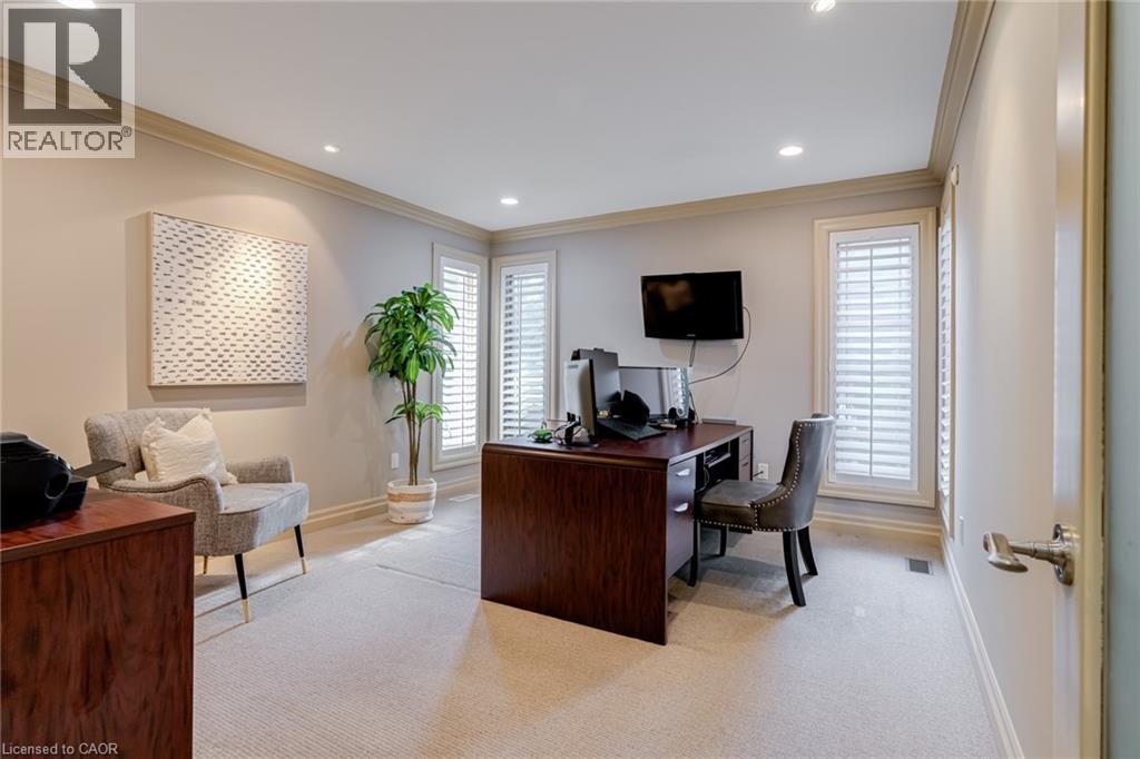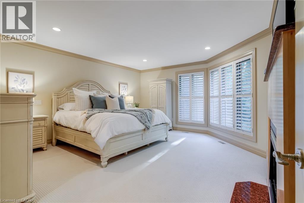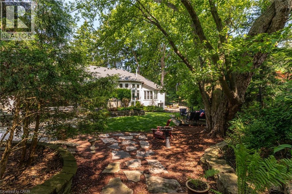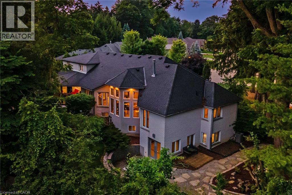 Located on a quiet court in Ancaster’s prestigious Oakhill neighbourhood, 34 Harrington Place is a one-of-a-kind bungaloft designed for elegant living and unforgettable entertaining. Set on a pie-shaped, nearly half-acre lot with an impressive 217 ft across the rear, this custom-built Atherton home is surrounded by estate properties and award-winning Trillium gardens that elevate the curb appeal and outdoor experience. Boasting almost 5,000 sqft of impeccably finished living space, this home offers 3+1 bedrooms, 4 full baths, and a layout that perfectly blends everyday comfort with timeless sophistication. The main floor features a gourmet eat-in kitchen with custom cabinetry, cathedral ceiling, and access to a covered porch, flowing into a striking 12-ft great room with gas fireplace and floor-to-ceiling windows overlooking the oasis backyard. A formal dining room provides the ideal setting for hosting family gatherings and elegant dinner parties. The luxurious main-floor primary suite includes a cozy gas fireplace, an oversized walk-in dressing room, and a 5-pc spa-inspired ensuite. Also on the main level: a large private office, a full laundry room, and a stylish guest bath with direct outdoor access—perfect for rinsing off after a dip in the custom-designed hot and cold soaker pool spa or post-garden clean-up. Upstairs, two well-appointed bedrooms, a full bath, and a versatile loft area offer space for teens, guests, or a second home office. The bright walk-out basement features a 3-sided gas fireplace, spacious recreation room, kitchenette/bar, 4th bedroom, full spa bath, gym area, and abundant storage—ideal for in-laws or extended family. The backyard is a showstopper: private, lush, and tailored for gatherings large or small. Multiple seating and dining areas, a covered porch, and the signature pool spa create an outdoor sanctuary you’ll enjoy in every season. This is more than a home—it’s a statement of lifestyle in one of Ancaster’s most exclusive enclaves. (id:4555)