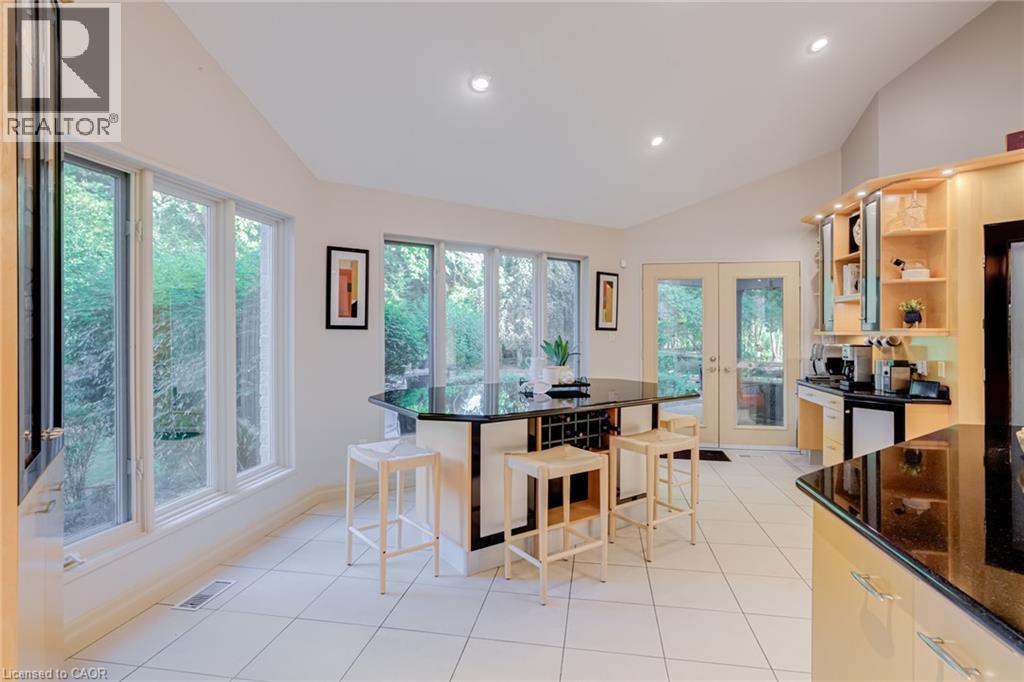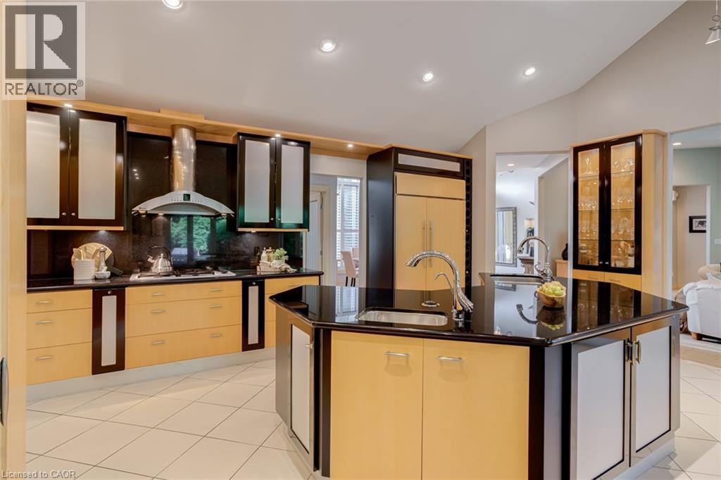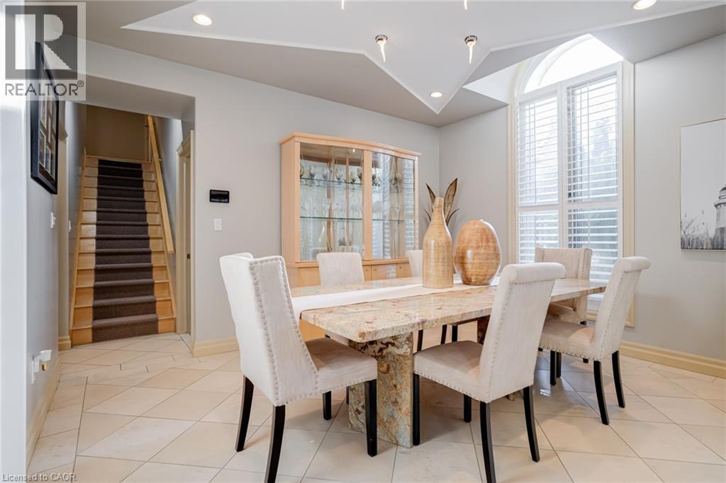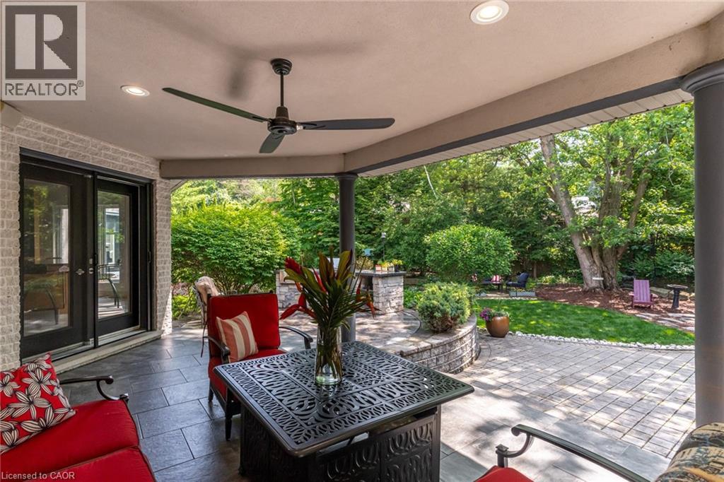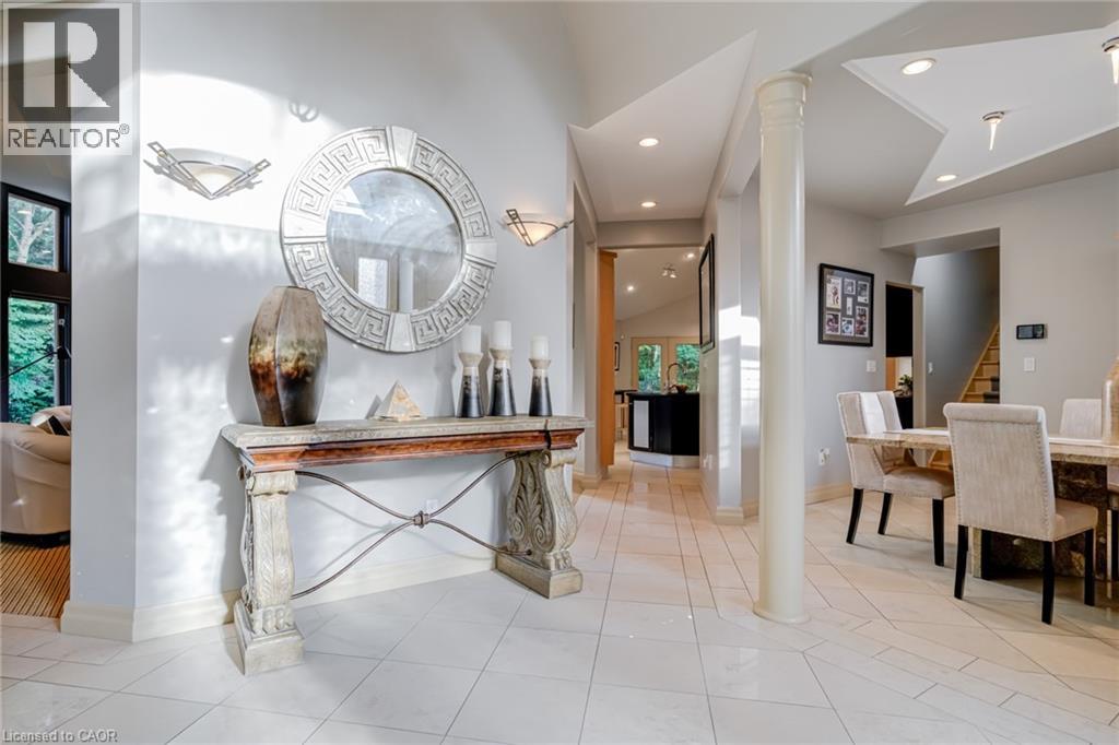 Located on a quiet court in Ancaster’s prestigious Oakhill neighbourhood, 34 Harrington Place is a one-of-a-kind bungaloft designed for elegant living and unforgettable entertaining. Set on a pie-shaped, nearly half-acre lot with an impressive 217 ft across the rear, this custom-built Atherton home is surrounded by estate properties and award-winning Trillium gardens that elevate the curb appeal and outdoor experience. Boasting almost 5,000 sqft of impeccably finished living space, this home offers 3+1 bedrooms, 4 full baths, and a layout that perfectly blends everyday comfort with timeless sophistication. The main floor features a gourmet eat-in kitchen with custom cabinetry, cathedral ceiling, and access to a covered porch, flowing into a striking 12-ft great room with gas fireplace and floor-to-ceiling windows overlooking the oasis backyard. A formal dining room provides the ideal setting for hosting family gatherings and elegant dinner parties. The luxurious main-floor primary suite includes a cozy gas fireplace, an oversized walk-in dressing room, and a 5-pc spa-inspired ensuite. Also on the main level: a large private office, a full laundry room, and a stylish guest bath with direct outdoor access—perfect for rinsing off after a dip in the custom-designed hot and cold soaker pool spa or post-garden clean-up. Upstairs, two well-appointed bedrooms, a full bath, and a versatile loft area offer space for teens, guests, or a second home office. The bright walk-out basement features a 3-sided gas fireplace, spacious recreation room, kitchenette/bar, 4th bedroom, full spa bath, gym area, and abundant storage—ideal for in-laws or extended family. The backyard is a showstopper: private, lush, and tailored for gatherings large or small. Multiple seating and dining areas, a covered porch, and the signature pool spa create an outdoor sanctuary you’ll enjoy in every season. This is more than a home—it’s a statement of lifestyle in one of Ancaster’s most exclusive enclaves. (id:4555)