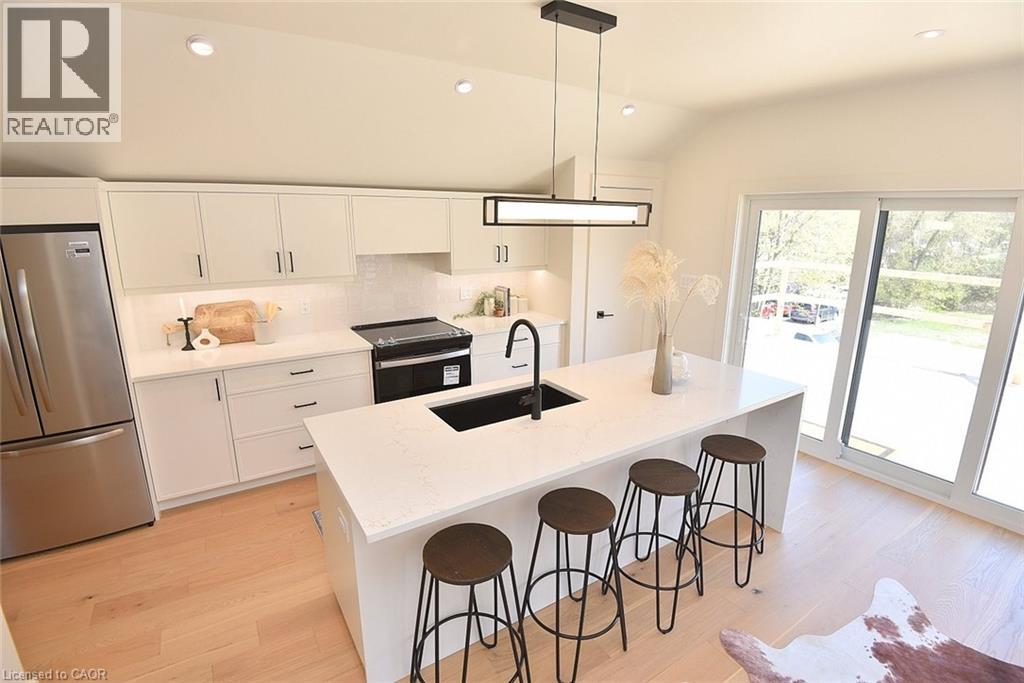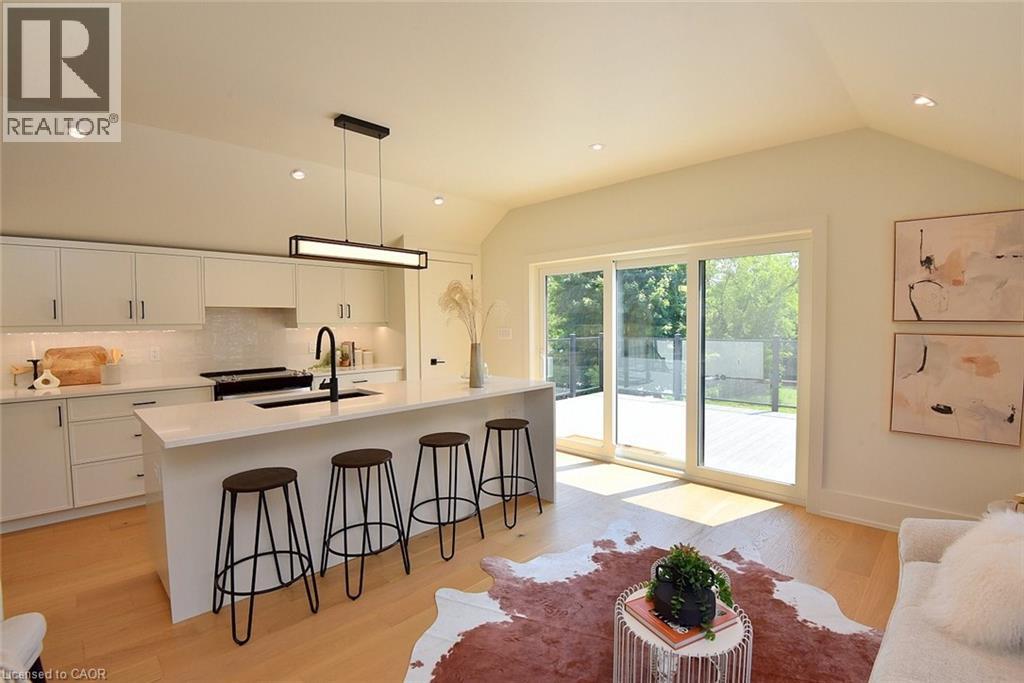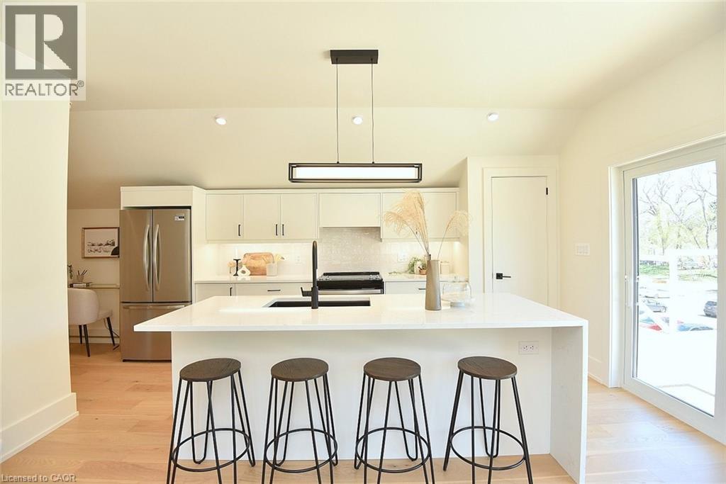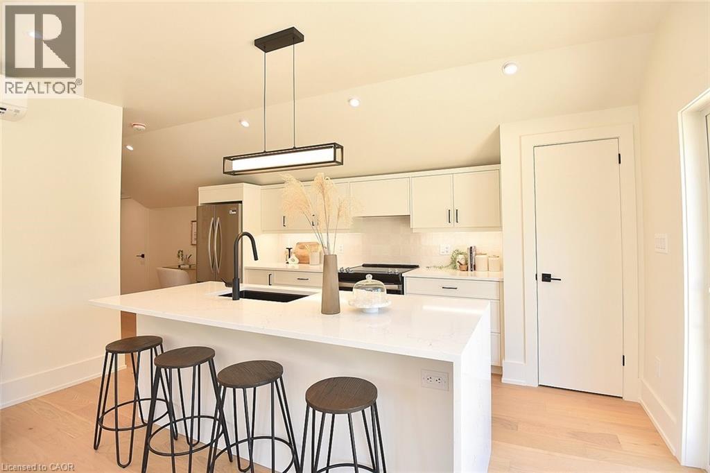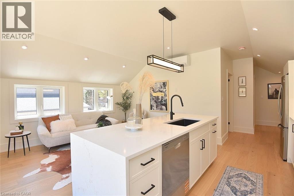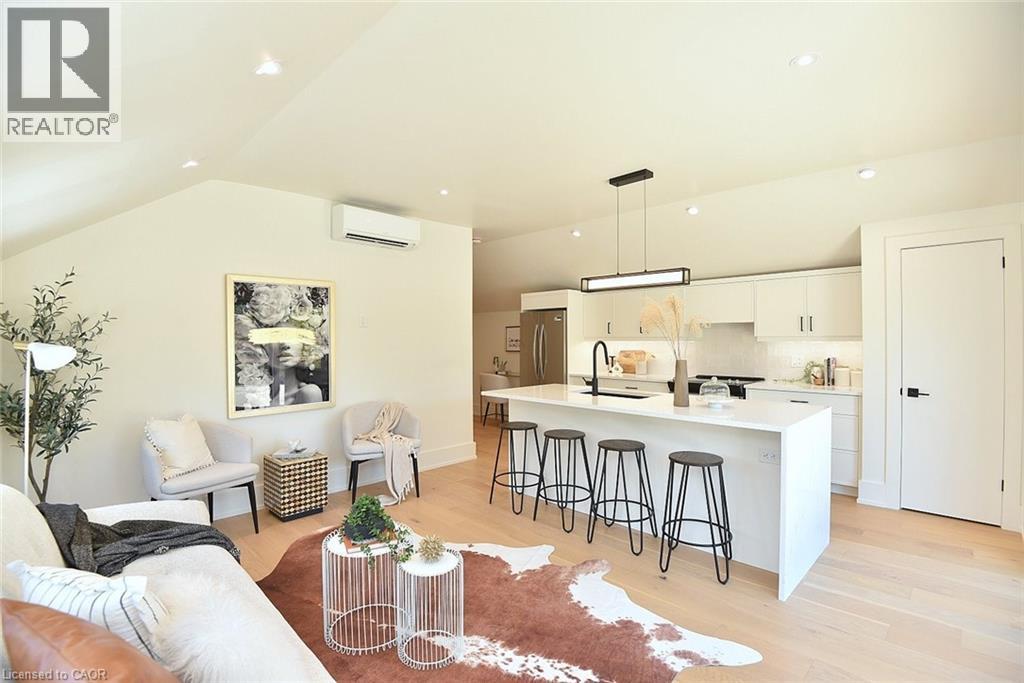 Never been lived in and fully renovated, this stylish one-bedroom, one-bath loft for lease is located in the heart of Old Ancaster. Gorgeous hardwood flooring runs throughout the open-concept living and kitchen space, enhanced by LED pot lights and large windows that flood the unit with natural light. The modern kitchen features quartz countertops, a large undermount sink, stainless steel appliances, and an eat-at island—perfect for both everyday living and entertaining. Enjoy the convenience of in-suite washer and dryer and patio doors leading to your own private balcony, ideal for relaxing outdoors. The main bath offers a double vanity and mirrors, and large walk in shower. Additional features include as small office area, a locker, and a surface parking space. Surrounded by Old Ancaster’s sought-after shops, restaurants, and amenities, this never-lived-in loft presents a rare opportunity to lease a beautifully finished home in a prime location. AAA+ tenants, please send application run through Single Key with supporting documents only. Tenant to pay all utilities including rental equipment. (id:4555)