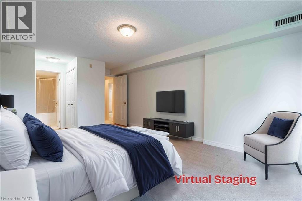 Spacious and bright, this 2-bedroom, 2-bath condo in the heart of Ancaster’s Meadowlands offers over 1,150 sq ft of comfortable living with a smart layout and plenty of natural light. The living room features a cozy gas fireplace and opens to a private balcony with a quiet treed view — a rare, calming backdrop in the community. The primary bedroom includes a full ensuite with a soaker tub, while the second bathroom is finished with a walk-in shower. Freshly painted walls add a modern touch, with plenty of room to personalize. Set on the preferred second floor, this home provides a safe and accessible option for downsizers and retirees alike. The well-managed building includes an underground parking space with a private storage locker located directly behind, as well as amenities such as a car wash bay, workshop, seasonal storage, party room, gazebo, and ample visitor parking. A walking path just steps from the property leads to a landscaped reservoir area with trails and greenery, perfect for a morning walk or evening stroll. Condo fees conveniently include water, building insurance, and all exterior maintenance. Located just steps from shops, restaurants, Costco, Shoppers Drug Mart, and more, this condo combines everyday convenience with peace and quiet — an excellent opportunity in a highly sought-after Ancaster location. (id:4555)
