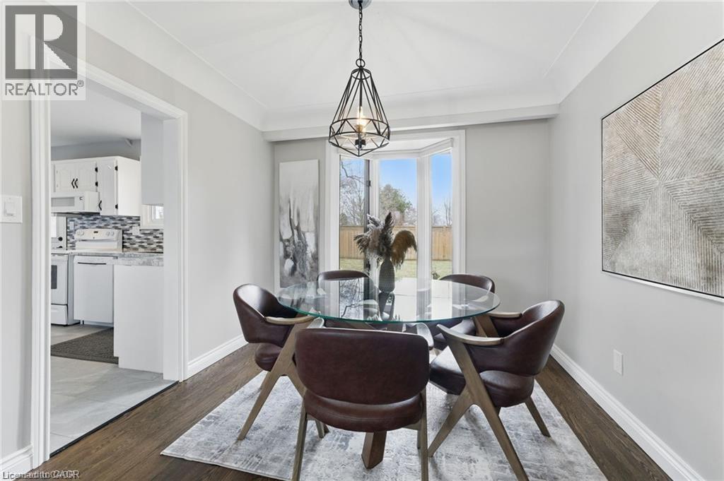 Welcome to 160 Council Crescent, a beautifully updated home in the heart of Ancaster, set on a private 75 x 100 ft lot with mature trees and no rear neighbours. This charming property offers the perfect blend of comfort, style, and location. The bright living room showcases a large bow window that fills the space with natural light, while the open living and dining area features recently refinished hardwood floors for a warm, modern feel. The kitchen has been tastefully updated with brand new quartz countertops and offers a walkout to the spacious, fully fenced backyard — ideal for entertaining, kids, or pets. Upstairs you’ll find 3 bedrooms and a recently renovated 4-piece bathroom. The lower level provides versatile additional living space, perfect for a playroom, recreation area, home office, or even a fourth bedroom. Major mechanical updates offer peace of mind, including a new furnace, air conditioner, and owned hot water tank (2024). Located in a highly desirable, family-friendly neighbourhood close to top-rated schools, parks, trails, shopping, and commuter access — this is a fantastic opportunity to own in one of Ancaster’s most sought-after communities. (id:4555)