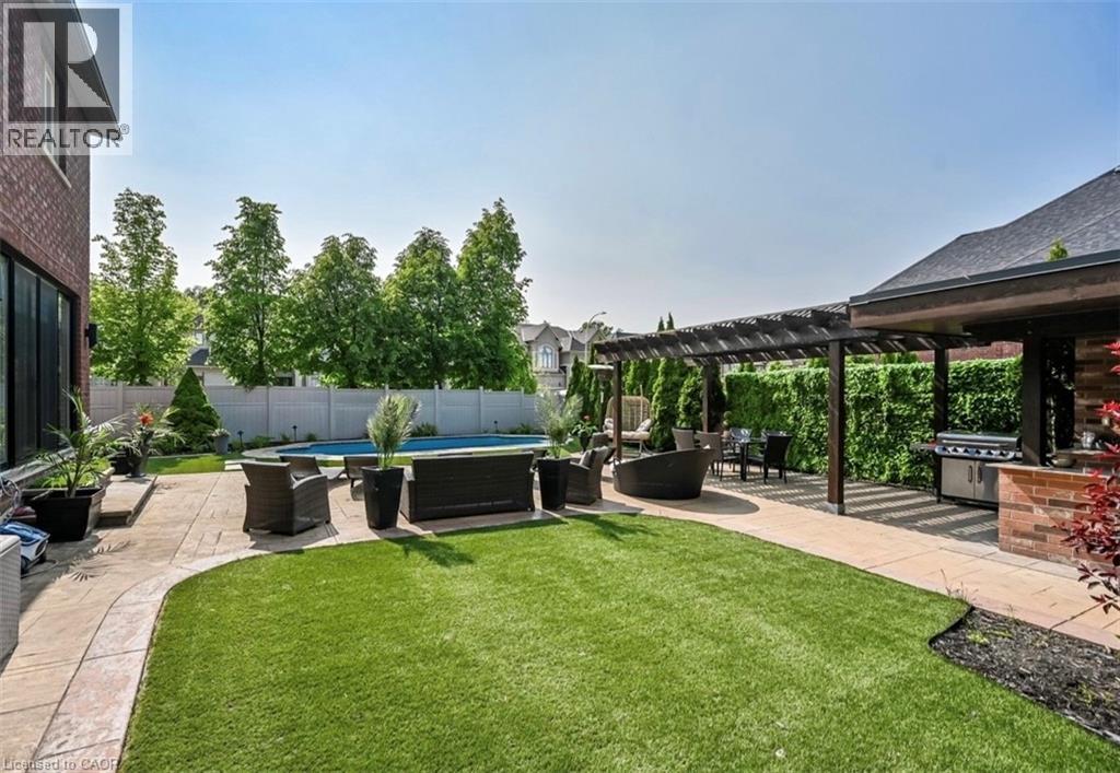 This beautiful and spacious 2 storey dream home, situated in Ancaster, in a prime location of Meadowlands directly facing the conservation area. This is truly remarkable and offers an unparalleled living experience, with 4+1 bedrooms, 4.5 bathrooms, over 4000 square feet of finished living space. The interior boasts desirable upgrades such as elegant granite countertops, a stunning kitchen, hardwood flooring throughout, and impressive high ceilings that enhance the sense of space and light. Furthermore, the property offers a fully finished basement, a significant added value, which includes a bedroom and washroom, a substantial bar with sink, 2 wine fridges and 2 beverage fridges, also a Den with a filter system. Additionally providing flexibility and privacy for a growing family or for hosting guests. The backyard has been thoughtfully designed as a private resort-like oasis, perfect for relaxation and entertainment. It features an inground pool for those warm summer days, a charming wood burning oven ideal for outdoor gatherings, and a patio where one can comfortably lounge and dine. Landscaped, both in the front and back yard. This property truly presents a wealth of additional features that must be seen to be fully appreciated and represents a significant opportunity for discerning buyers seeking luxury and convenience in a sought-after neighborhood. You'll find yourself just minutes away from all grocery stores, schools, shopping centers, etc. Plus you're conveniently close to highways like Lincoln Alexander Parkway and the 403 for easy commuting. (id:4555)
