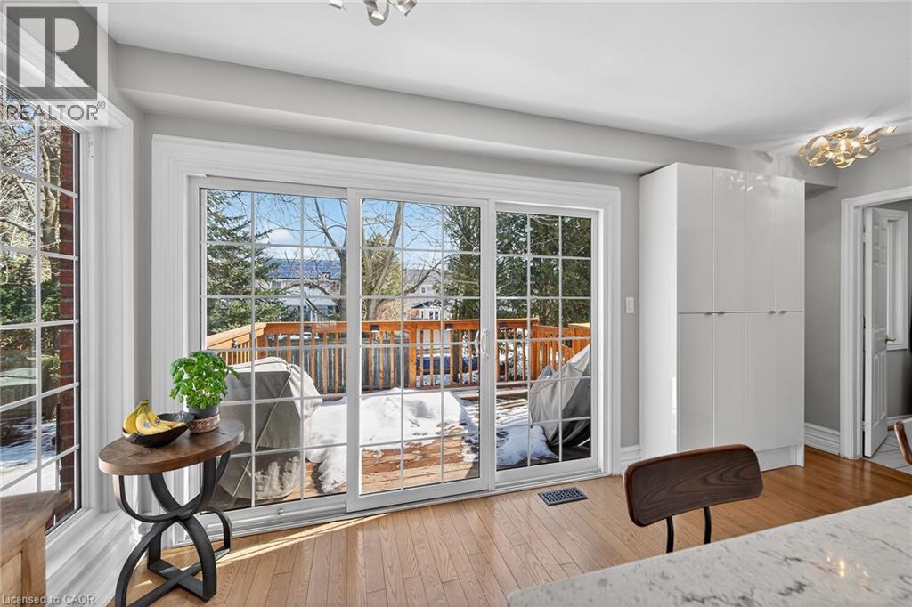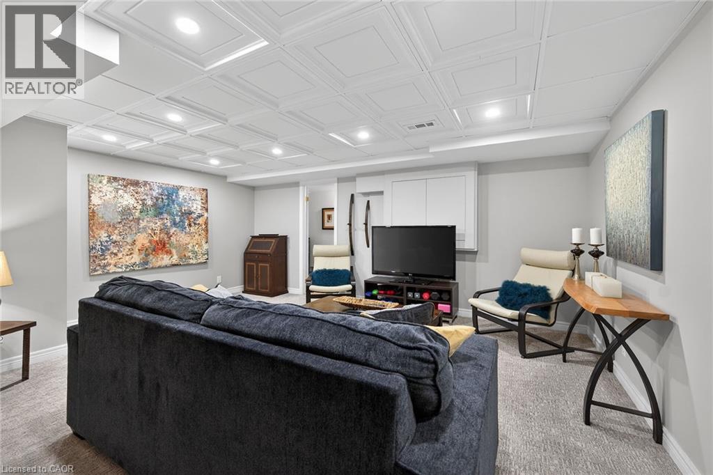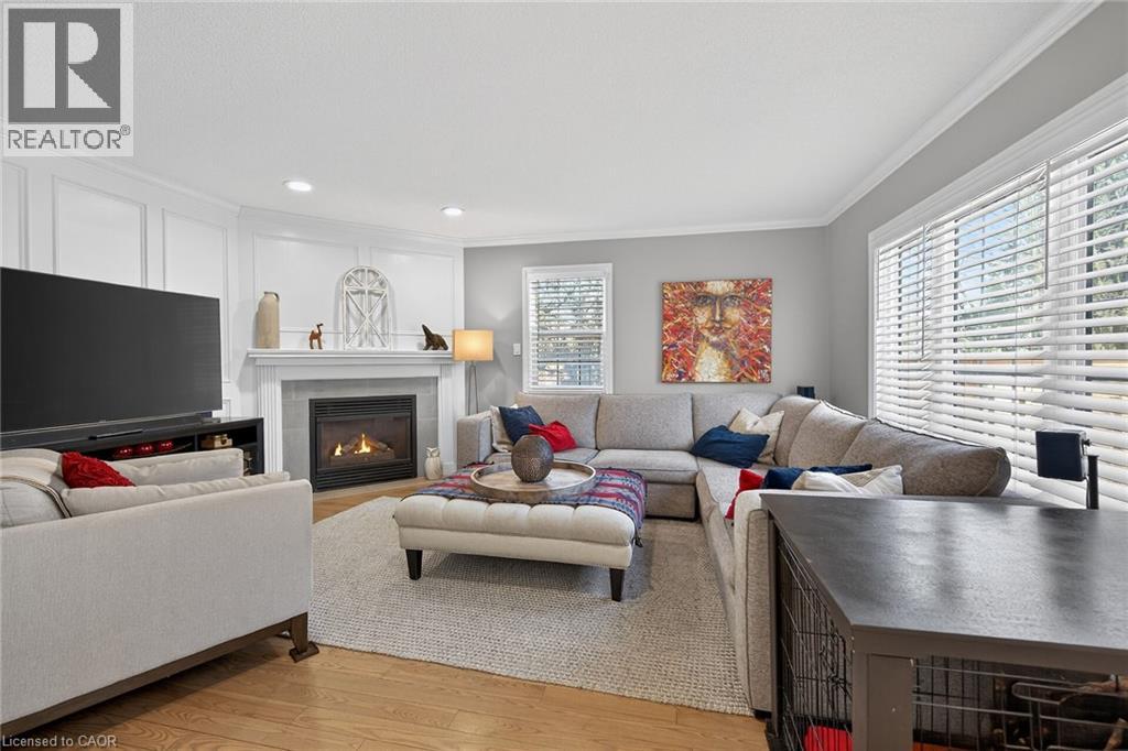 Spacious 2-storey end-unit condo townhouse providing 2946 sq ft of beautifully updated living space in sought-after Ancaster. This bright and airy home features vaulted ceilings, oversized windows and an abundance of skylights, filling the interior with natural light. Thoughtfully designed layout includes a ground-floor family room with cozy gas fireplace, as well as separate living and dining rooms ideal for entertaining. Elegant ash flooring runs throughout the first and second floors. The stunning renovated kitchen showcases white high-gloss cabinetry, a full pantry wall, premium quartz countertops, glass backsplash, pot lights, and top-of-the-line stainless steel AGA appliances. The basement was renovated in 2020, featuring a spacious recreation room, office space, additional bedroom, and a large 3-piece bathroom. A rare opportunity to enjoy spacious, low-maintenance living (including snow removal from driveway and walkway), close to highway access, shopping, and amenities in one of Ancaster's most desirable neighborhoods. RSA. SQFTA. (id:4555)