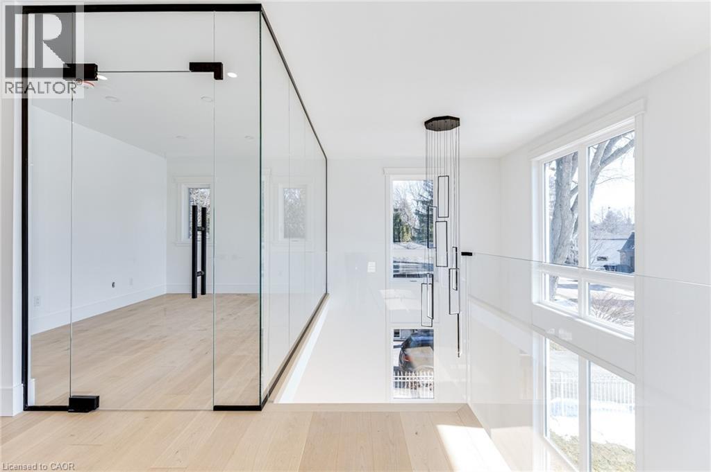 Welcome to this brand new, never-lived-in detached home in the highly desirable community of Ancaster, where thoughtful design, advanced technology, and luxury finishes come together to create an exceptional luxury living experience. Featuring 4+1 spacious bedrooms and 5 beautifully appointed bathrooms, this home offers the perfect blend of style, comfort, and functionality for modern family living and entertaining. The heart of the home is a show-stopping chef’s kitchen equipped with premium Miele appliances, a gas cooktop with pot filler, quartz countertops and backsplash, sleek cabinetry, under and upper cabinet lighting, and a built-in garburator. The expansive layout flows seamlessly into the bright living space highlighted by soaring 20-ft ceilings. The primary suite is a true retreat featuring a private balcony with wood flooring and glass railing, a luxurious spa-inspired ensuite with heated floors, and a custom closet organizer. Four bathrooms include heated floors, LED mirrors, and convenient electrical outlets beside each toilet. Designed with both elegance and practicality in mind, the home features 10-ft ceilings on the main floor, 9-ft ceilings on the second floor, 8-ft interior and entry doors, white oak 7.5” engineered hardwood flooring throughout, and illuminated interior staircases to the second floor and basement. The home is equipped with smart home technology, including Google Home integration with two iPads, controlling security cameras (6), lighting, switches, and garage door, along with a Nest thermostat for modern convenience. Exterior highlights include a front granite porch with glass railing, light strips along the driveway, walkway, and front steps, and exterior pot lights. The covered backyard deck features a wood ceiling with pot lights and gas line for a BBQ, overlooking a fully fenced yard with space for a future pool. Conveniently located close to parks, schools, shopping, and Highway 403. Taxes not assessed yet. (id:4555)