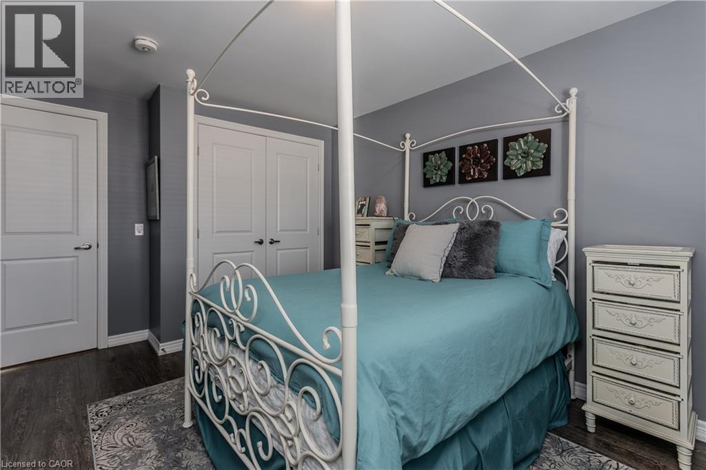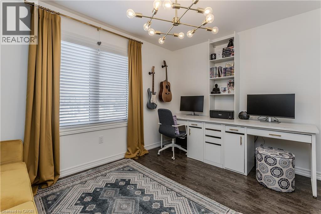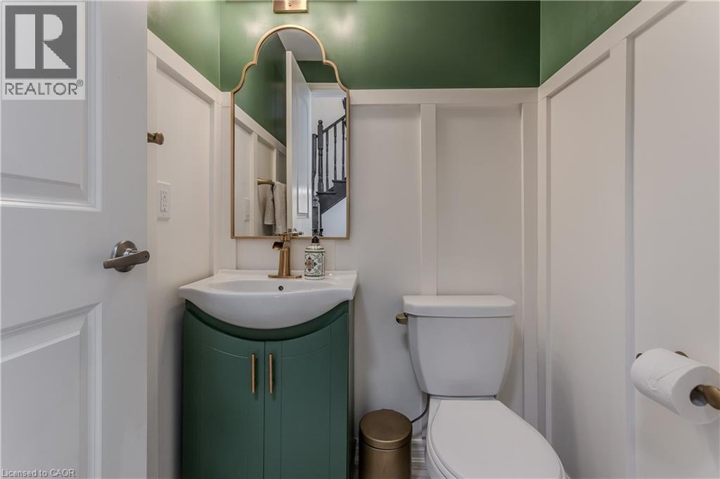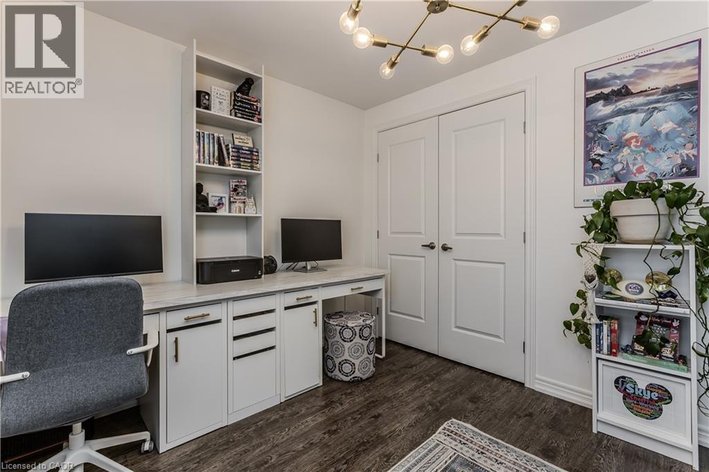 Welcome to this beautifully updated freehold townhome with 1933sf of living space in the heart of the Meadowlands community—an ideal place for families looking for comfort, style, and convenience. Located near a vibrant shopping centre with dining, retail, and a movie theatre, this home also offers easy access to schools, everyday amenities and hwys. Freshly painted throughout, the home feels modern, and move-in ready. The exterior offers welcoming curb appeal with a stone façade, aggregate porch, and an extra wide single driveway. Step inside to an inviting entryway featuring shaker-style board and batten and a stylish feature wall. Hardwood flooring flows throughout the main level, where design and functionality shine. The kitchen features granite countertops, tile backsplash, SS appliances, designer lighting, and elegant gold hardware. Soft-close cabinetry, and an island with built-in storage add convenience, while the breakfast nook with booth seating creates the perfect spot for casual family meals. The living room offers a warm and welcoming gathering space with a gas fireplace, large window, and walkout to the backyard. A built-in coffee bar with tile backsplash and beverage fridge adds a stylish and functional touch for entertaining. Upstairs, laminate flooring runs throughout the bedrooms. The expansive primary suite is a peaceful retreat, highlighted by a picture moulding feature wall, spacious walk-in closet, and spa-inspired 5-piece ensuite with dual sink vanity, freestanding tub, glass shower, and custom trim details. Two additional bedrooms, a 4-piece main bathroom, and convenient bedroom-level laundry complete the upper floor. The fully fenced backyard offers a private outdoor space with an interlock patio, green space for kids and pets to play, a shed for storage, and a BBQ gas line ready for future summer entertaining. A wonderful opportunity to enjoy stylish, low-maintenance living in one of Ancaster’s most desirable family-friendly communities. (id:4555)