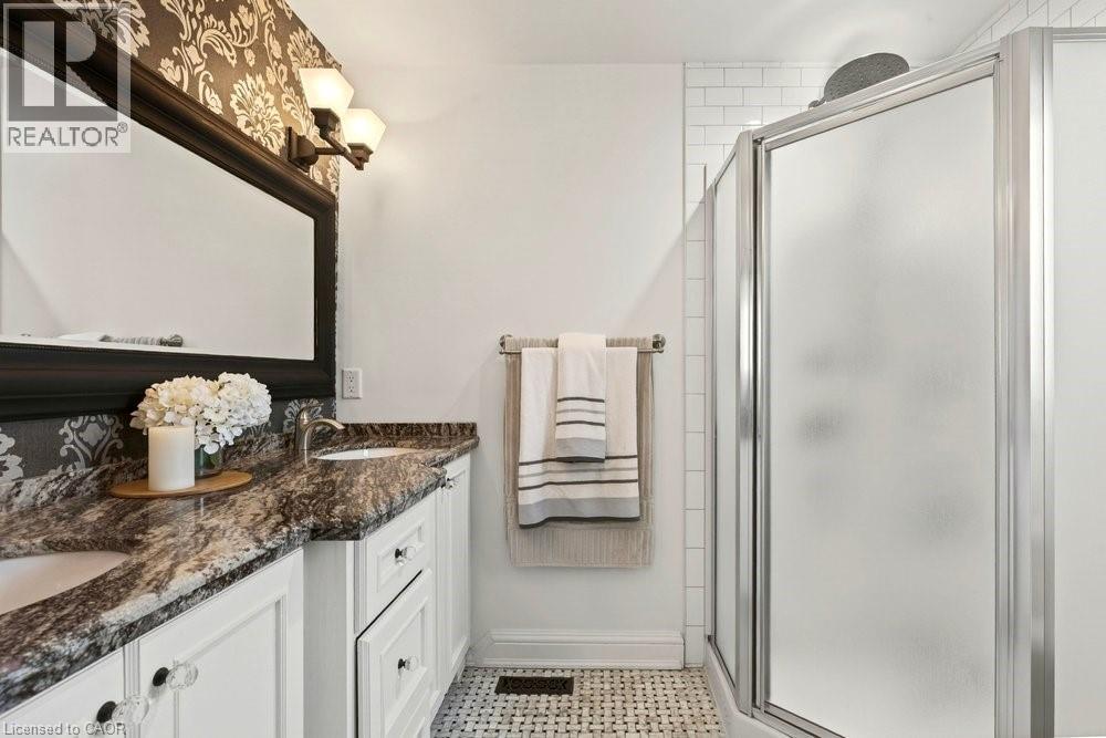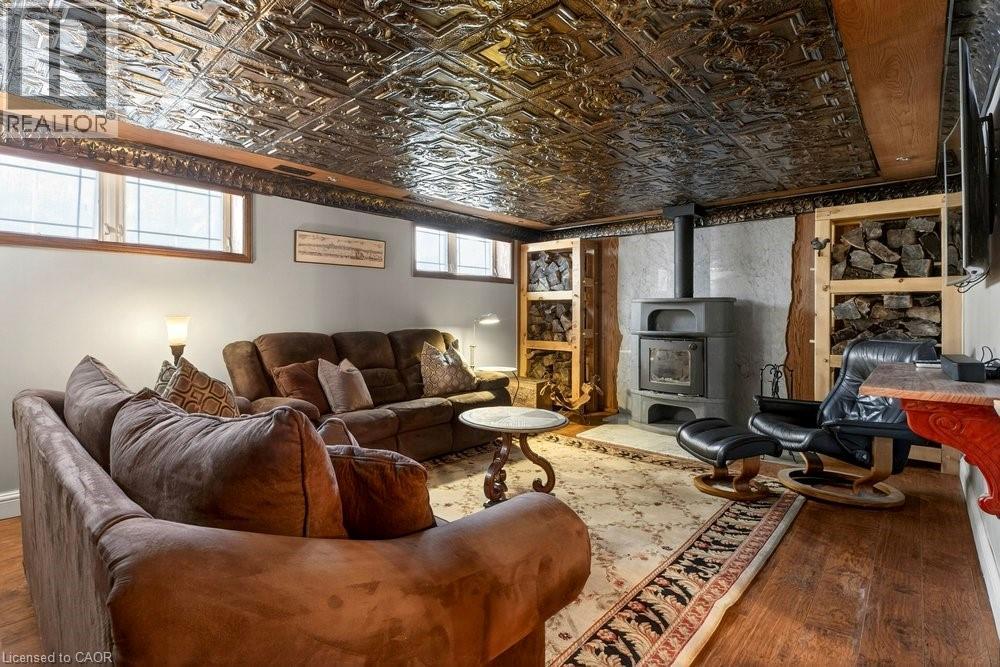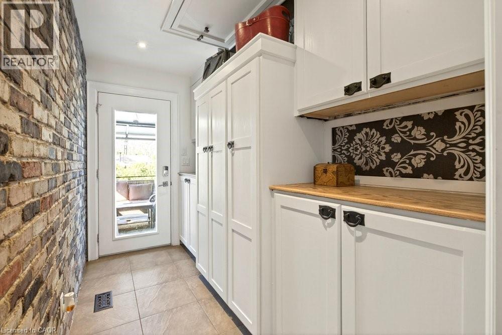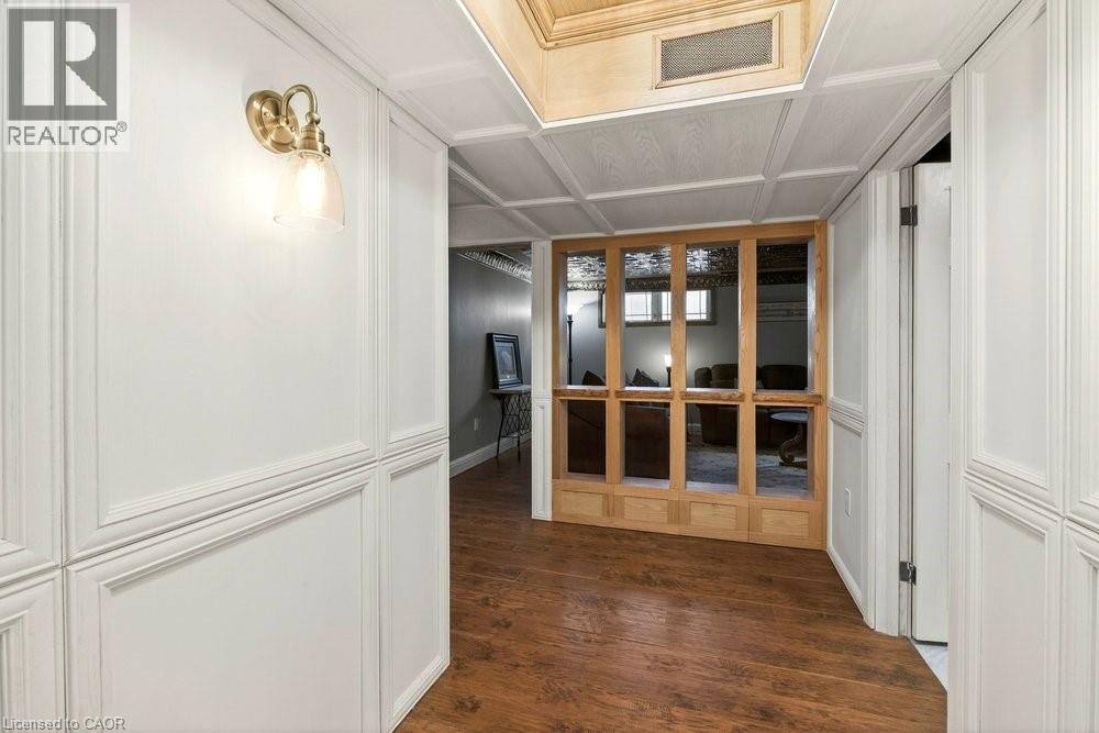 Tucked away at end of a quiet street in Old Ancaster, this extensively renovated bungalow with a thoughtful addition blends rustic warmth with refined, high-end living. Surrounded by mature trees and set on a private, fenced lot, this home feels like a hidden retreat - peaceful, grounded, and crafted with intention. Inside, natural materials and exceptional craftsmanship take centre stage. Solid wood flooring flows throughout, complemented by custom solid wood cabinetry adding richness and texture. The heart of the home is a beautifully appointed kitchen featuring Wolf and Sub-Zero appliances – designed for both everyday living and entertaining. The main level offers three bedrooms, vaulted great room and a convenient mudroom. Downstairs, the ambiance shifts into something truly special. With the warmth of a Tulikivi soapstone wood-burning fireplace imported from Finland, the space feels like a cozy cabin in the woods. The lower level also adds two additional bedrooms (converted from a gym) and a full workshop provides incredible utility and can easily be converted back into a garage if desired – offering flexibility to suit your lifestyle. Step outside to your own private oasis. Low-maintenance IPE decking anchors the backyard while the swim spa invites year- round relaxation and fitness; all set against a backdrop of trees and total privacy. Put yourself within walking distance to restaurants and shops, the Ancaster tennis club, the rail trail & Bruce Trail, and much more! (id:4555)