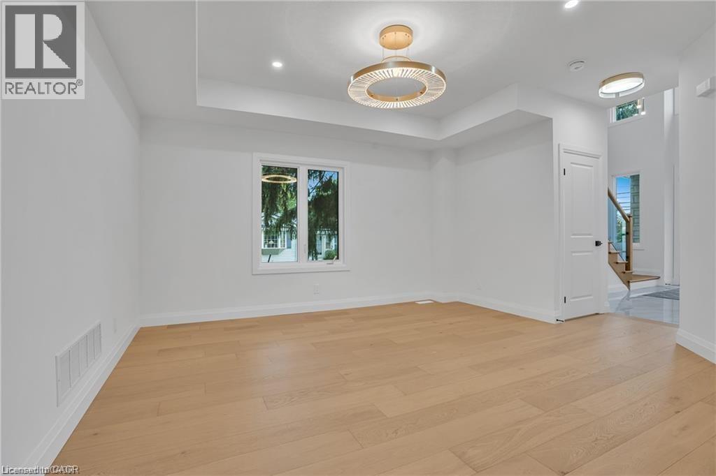 Zeina Homes RoyalView Model — This beautiful custom home sits on a 40 x 124 ft lot and features 5 spacious bedrooms plus a den and 5 bathrooms, including a main-floor bedroom. The fully finished basement includes a separate side entrance, making it ideal for an in-law suite. The open-concept main floor offers a welcoming double-door entrance, modern décor, and abundant natural light. The custom kitchen features a center island, extensive cabinetry, and stylish light fixtures. Sliding doors lead to the backyard. Additional highlights include an elegant oak staircase, oversized windows, granite/quartz countertops, hardwood floors, a brick-to-roof exterior, and a 2-car garage. Located in a mature Ancaster neighborhood, this home is close to parks, schools, shopping, restaurants, Costco, and more. (id:4555)