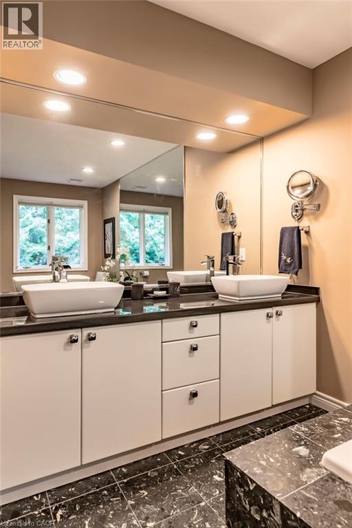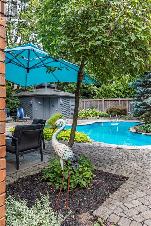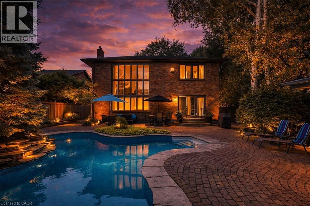 223 Briar Hill Crescent is a timeless family home defined by classic architecture, generous living spaces, and a private, mature setting. Its stately brick façade, arched windows, and gabled roofline reflect refined Colonial-inspired design, while a beautifully landscaped front entry and double garage enhance the home’s welcoming curb appeal. Inside, the thoughtfully designed floorplan offers a balance of everyday comfort and elegant entertaining. A sunken living room provides a warm gathering space, while the dramatic great room features open-to-above ceilings that fill the home with natural light. The formal dining room is ideal for family celebrations and holiday hosting, while the updated kitchen, complemented by a convenient mudroom, adds both style and everyday functionality. Upstairs, 4 spacious bedrooms and 2 full bathrooms provide room for growing families, along with a dedicated home office that offers a quiet space for work or study. The finished lower level further expands the home’s versatility with a large recreation room, den, full bathroom, and abundant storage. Outdoors, the fully fenced backyard offers a private retreat framed by mature trees. An inground pool with a waterfall feature, along with a pool shed/change room, creates the perfect setting for summer enjoyment, while interlock pathways and patio space provide inviting areas to relax or entertain. All of this is set within the prestigious Ancaster Heights neighbourhood, known for its executive homes, quiet tree-lined streets, and close proximity to Ancaster Village, Meadowlands shopping, top-rated schools, and convenient highway access. (id:4555)