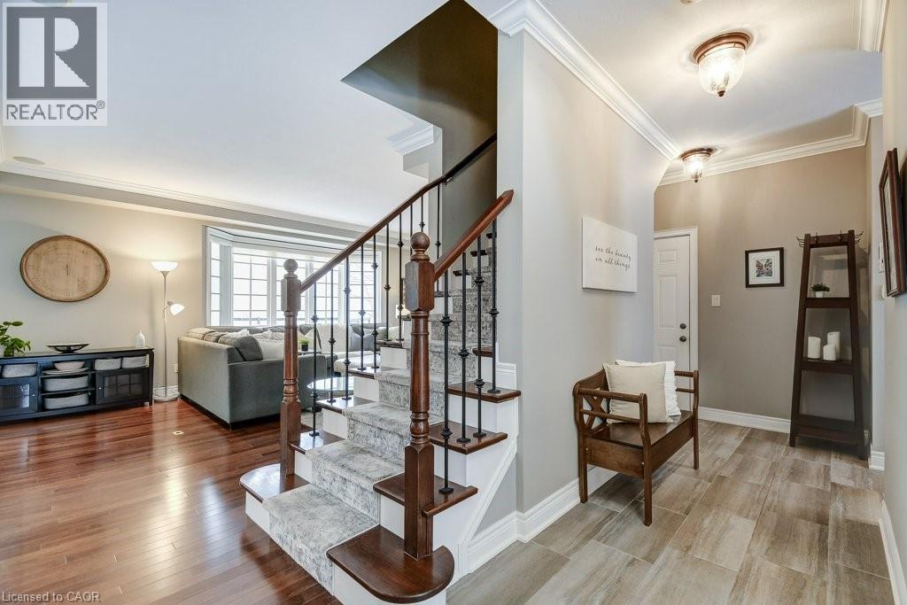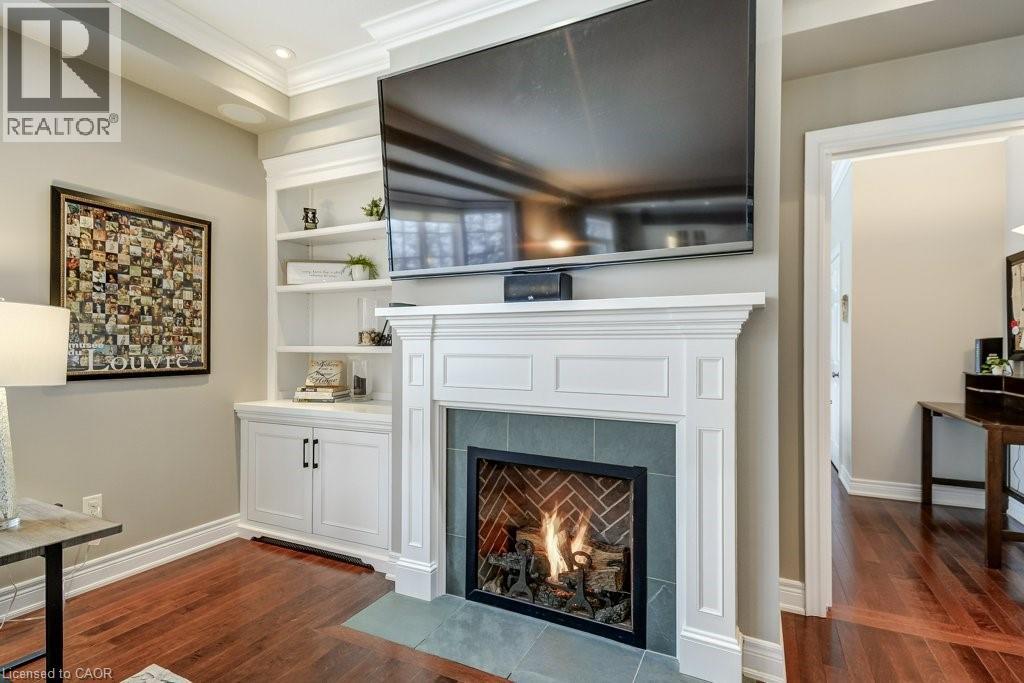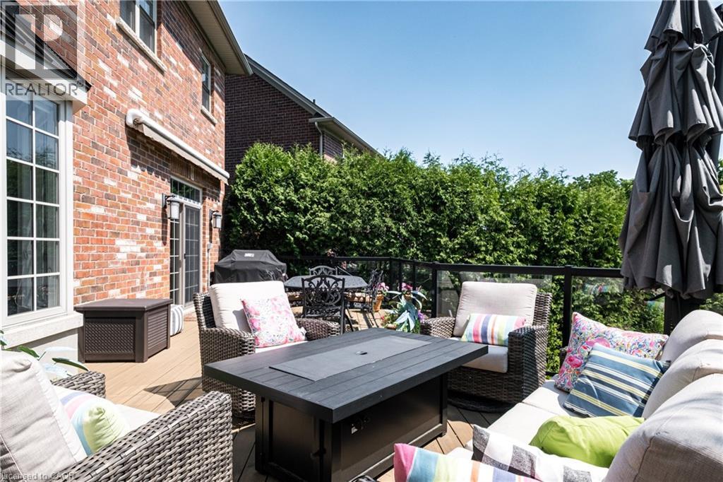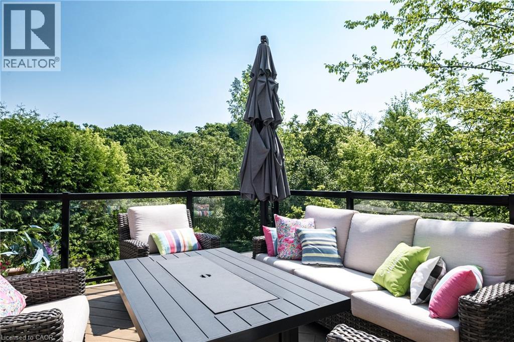 Executive living in prestigious Ancaster. Beautifully renovated 2-storey home on a quiet private road backing onto protected Conservation lands with no rear neighbours, offering exceptional privacy, tranquil treed views, and a true close-up-and-go lifestyle. Low monthly fees include snow removal (driveway & walkways), lawn cutting, fertilization, irrigation system open/close, and some seasonal garden planting. Designed with future living in mind with ELEVATOR ROUGH-IN, soaring ceilings, hardwood floors, and a bright open layout. The updated kitchen flows into the great room with gas fireplace and expansive windows overlooking the peaceful natural setting. Main floor also features a powder room, an office and formal dining room. Walk out to a 370 sq ft maintenance-free composite deck with glass railings — the perfect place to relax and enjoy the uninterrupted Conservation backdrop. Upper level offers a spacious primary retreat with custom walk-in closet and spa-inspired 5-piece ensuite, plus two additional bedrooms, updated bath, and convenient laundry. The finished walk-out basement provides exceptional additional living space with gas fireplace, 3-piece bath, built-in workstation, exercise area, second laundry, and abundant storage. Covered deck and large patio extend the outdoor living while maintaining total backyard privacy. Steps to Conservation trails and minutes to Hamilton Golf & Country Club, dining, shopping, the new Ancaster Arts Centre, and highway access. Meticulously maintained and move-in ready. (id:4555)