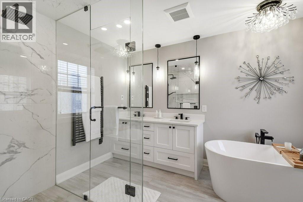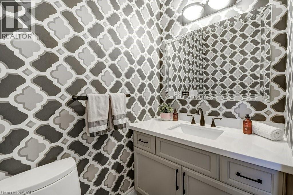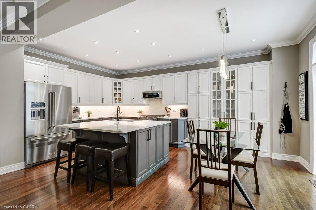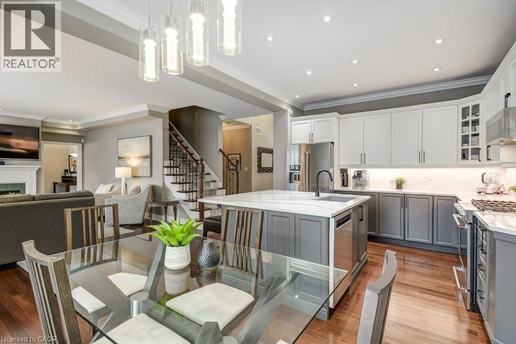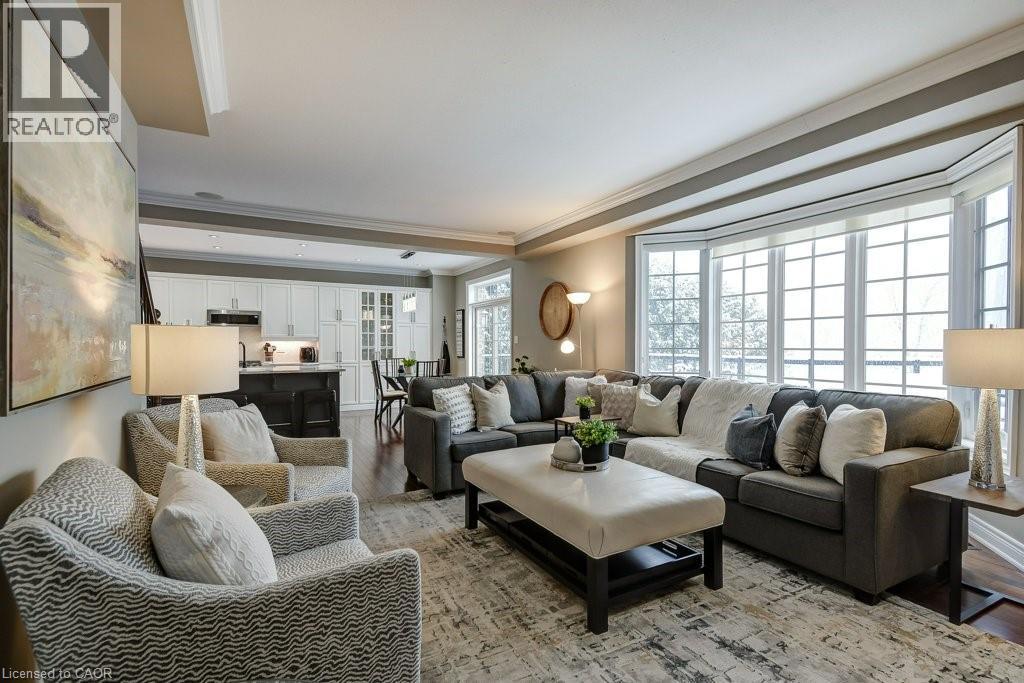 Executive living in prestigious Ancaster. Beautifully renovated 2-storey home on a quiet private road backing onto protected Conservation lands with no rear neighbours, offering exceptional privacy, tranquil treed views, and a true close-up-and-go lifestyle. Low monthly fees include snow removal (driveway & walkways), lawn cutting, fertilization, irrigation system open/close, and some seasonal garden planting. Designed with future living in mind with ELEVATOR ROUGH-IN, soaring ceilings, hardwood floors, and a bright open layout. The updated kitchen flows into the great room with gas fireplace and expansive windows overlooking the peaceful natural setting. Main floor also features a powder room, an office and formal dining room. Walk out to a 370 sq ft maintenance-free composite deck with glass railings — the perfect place to relax and enjoy the uninterrupted Conservation backdrop. Upper level offers a spacious primary retreat with custom walk-in closet and spa-inspired 5-piece ensuite, plus two additional bedrooms, updated bath, and convenient laundry. The finished walk-out basement provides exceptional additional living space with gas fireplace, 3-piece bath, built-in workstation, exercise area, second laundry, and abundant storage. Covered deck and large patio extend the outdoor living while maintaining total backyard privacy. Steps to Conservation trails and minutes to Hamilton Golf & Country Club, dining, shopping, the new Ancaster Arts Centre, and highway access. Meticulously maintained and move-in ready. (id:4555)