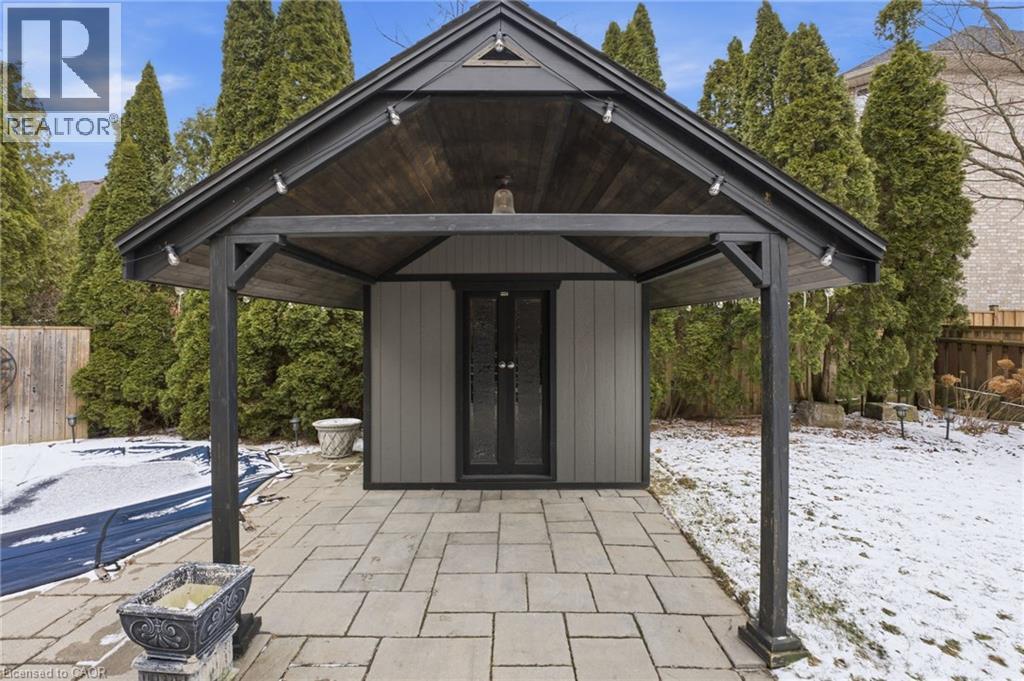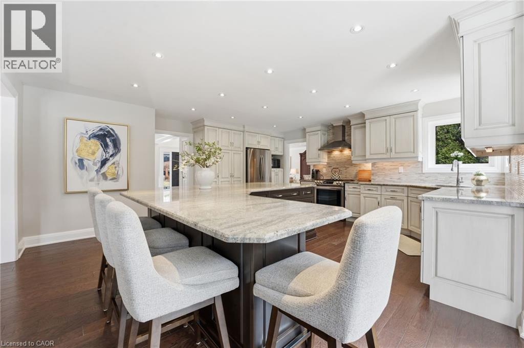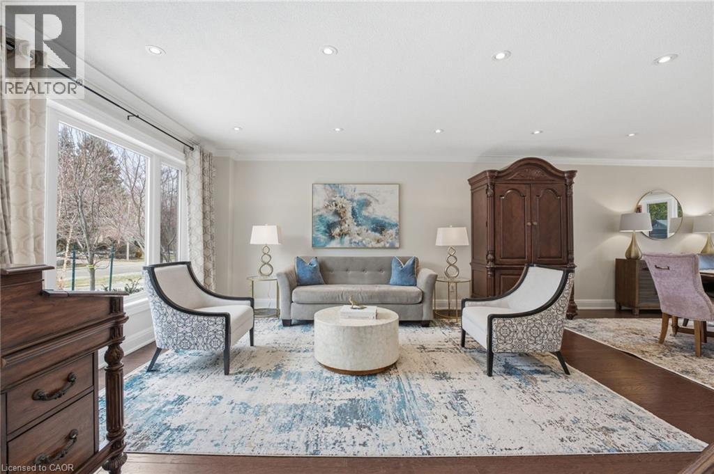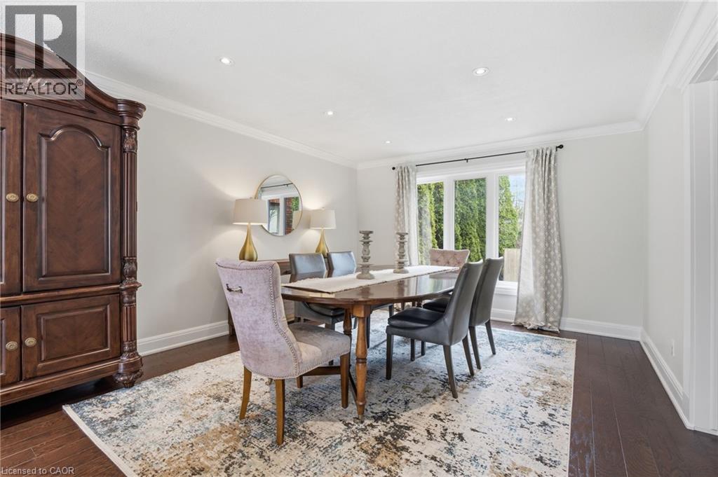 Experience refined living in this exquisite 3+1 bedroom home in highly sought after Deerview Estates. This stunning executive home features a bright and spacious main floor offering space for the whole family. Step into a gracious foyer which opens to an oversized living/ dining room combination and office area. A fabulous gourmet kitchen offers a super sized island, custom cabinetry, granite counter tops and decorative mouldings and pot lights. Patio doors open to a beautifully landscaped backyard with a salt water pool, cabana and patio area perfect for lounging and entertaining in style. The main level also features a full mud/ laundry room with convenient side door access. The second level offers 3 bedrooms, a beautiful primary retreat with a custom walk-in closet and a spa-like 5+ pc. ensuite with a stand alone tub and separate shower. The second bedroom also offers ensuite privaledges. Enjoy a fully finished basement with a 4th bedroom, large recreation room with a cozy wood stove and 3 pc. Bathroom and ample storage space. Updates and features include fresh paint (2025), windows & exterior doors (2019), Roof shingles ( 2017) Owned water heater (2024), Furnace/ Ac/ Humidifier (2021), professional landscaping (2021), pool safety cover (2021). Located in the sought after Oakhill area just steps to scenic hiking trails in the Dundas Valley, parks, Ancaster Village shops, restaurants and easy highway access. Nothing to do but move in and enjoy (id:4555)