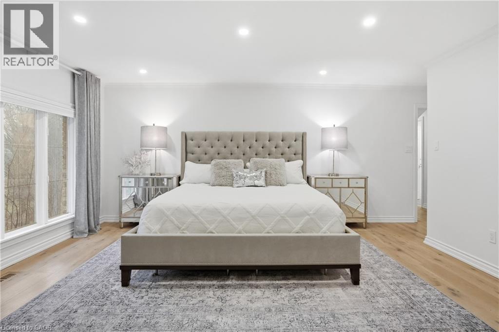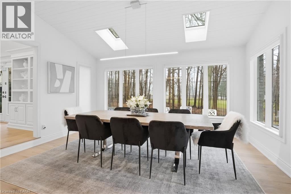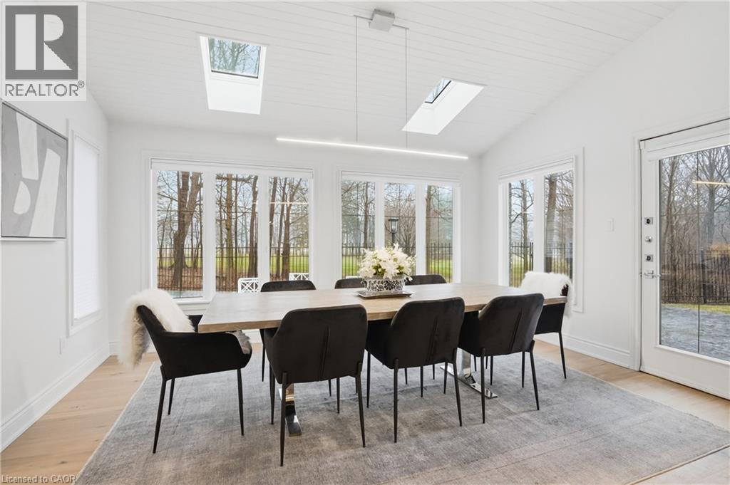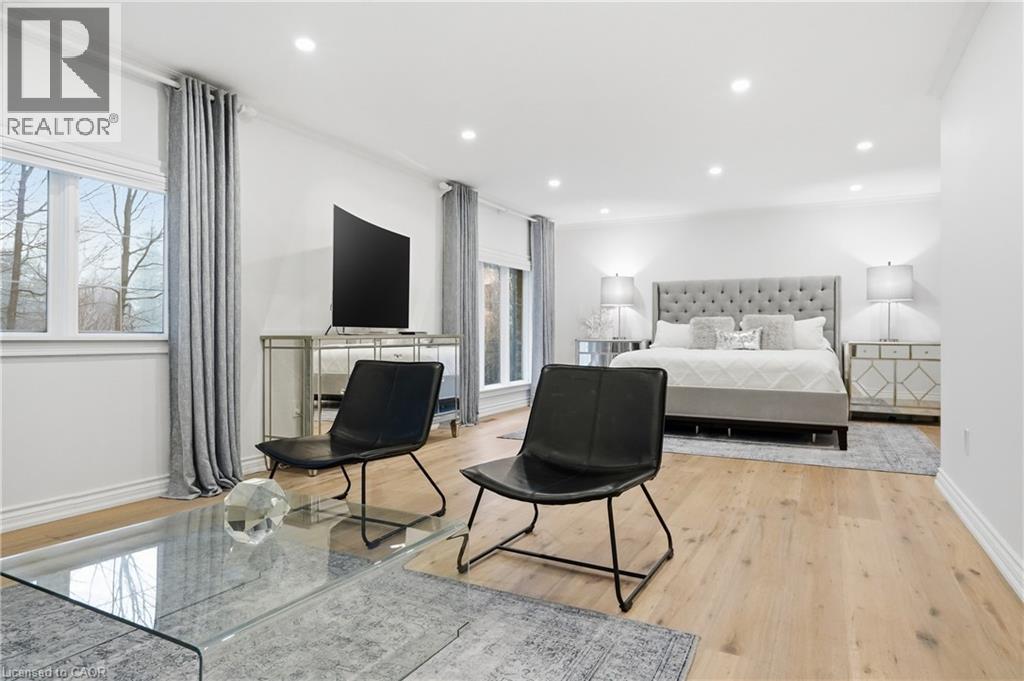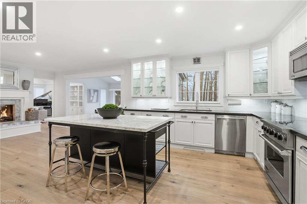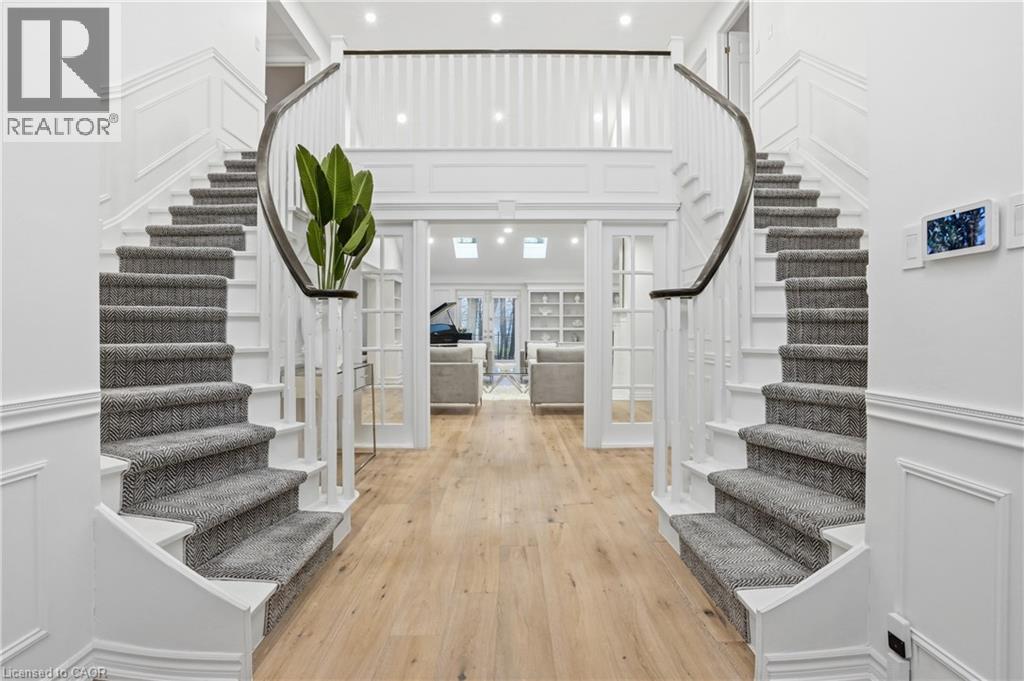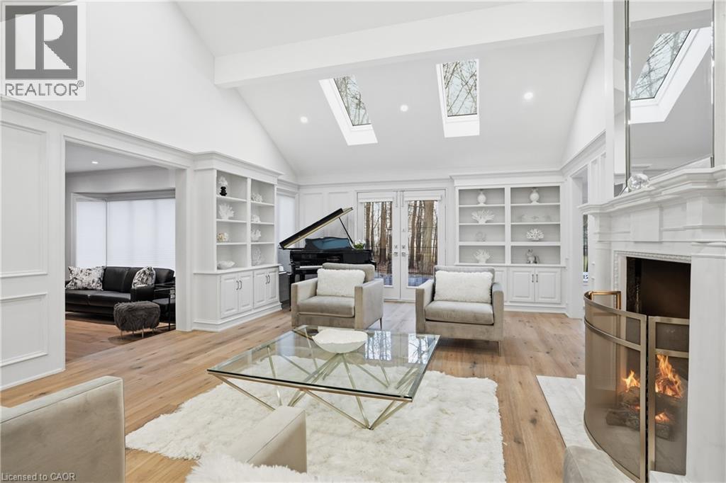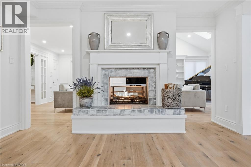 Situated on a serene, tree-lined street, this remarkable five-bedroom home offers breathtaking views and exceptional privacy, backing directly onto the prestigious Hamilton Golf and Country Club. Surrounded by mature landscaping, the property blends timeless elegance with modern comfort. The main level features expansive principal rooms, including a dramatic family room with vaulted ceilings, skylights, custom millwork, and a striking fireplace. A gourmet kitchen with premium finishes flows seamlessly into a sun-filled solarium overlooking the professionally landscaped backyard, complete with a pool and outdoor entertaining spaces. Upstairs, the primary suite serves as a private retreat with a fireplace, walk-in closet, and spa-inspired six-piece ensuite. Additional bedrooms are generously sized, ideal for family and guests. The fully finished walk-out basement offers versatile space for recreation, entertaining, or multi-generational living, including additional living areas and a private retreat. Additional features include 200 amp electrical service and an EV charging plug in the garage, combining modern convenience with refined living. This exceptional home presents a rare opportunity to enjoy elegant design, comfort, and lifestyle in a coveted golf course setting. (id:4555)