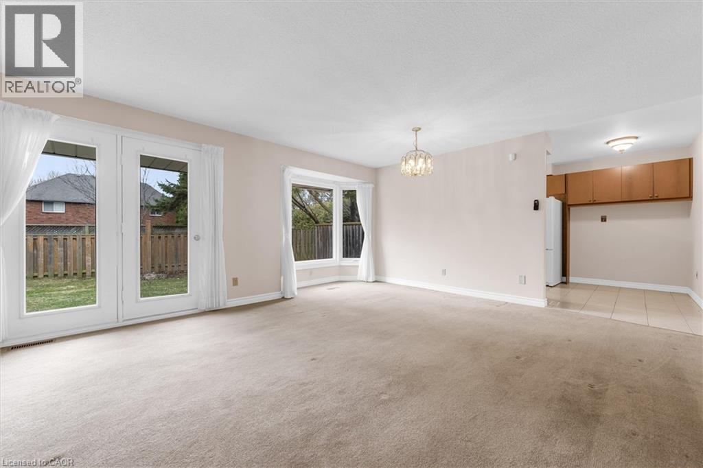 End-unit townhouse condo in a family-friendly Ancaster neighbourhood where convenience really stands out. With over 2,000 square feet of finished living space, this is one of the larger layouts in the complex, with extra windows, more natural light, and a bit more space than your typical interior unit. The main floor offers a bright, comfortable living and dining area with a fireplace, bay windows, and a walkout to a backyard surrounded by mature trees—great for kids, pets, or just having some quiet outdoor space. The layout works well as-is, with the option to update over time if you want to put your own touch on it. Upstairs you’ve got three good-sized bedrooms, including a primary with a walk-in closet and a full ensuite with a jetted tub and separate shower, plus a second full bathroom and the added bonus of upstairs laundry. The finished basement gives you that extra space everyone ends up needing—rec room, playroom, home office, or a bit of everything—along with storage and a large utility area. Attached 2-car garage plus a double driveway gives you parking for four. Brand new furnace (2025), A/C (2021), and hot water tank are all owned. Well maintained, clean, and vacant, so it’s an easy move for the next owner. Location-wise, it’s hard to beat—park across the street, schools nearby, quick access to the 403, and all the shopping and everyday stuff along Wilson just a couple minutes away. Don’t sleep on this one! (id:4555)