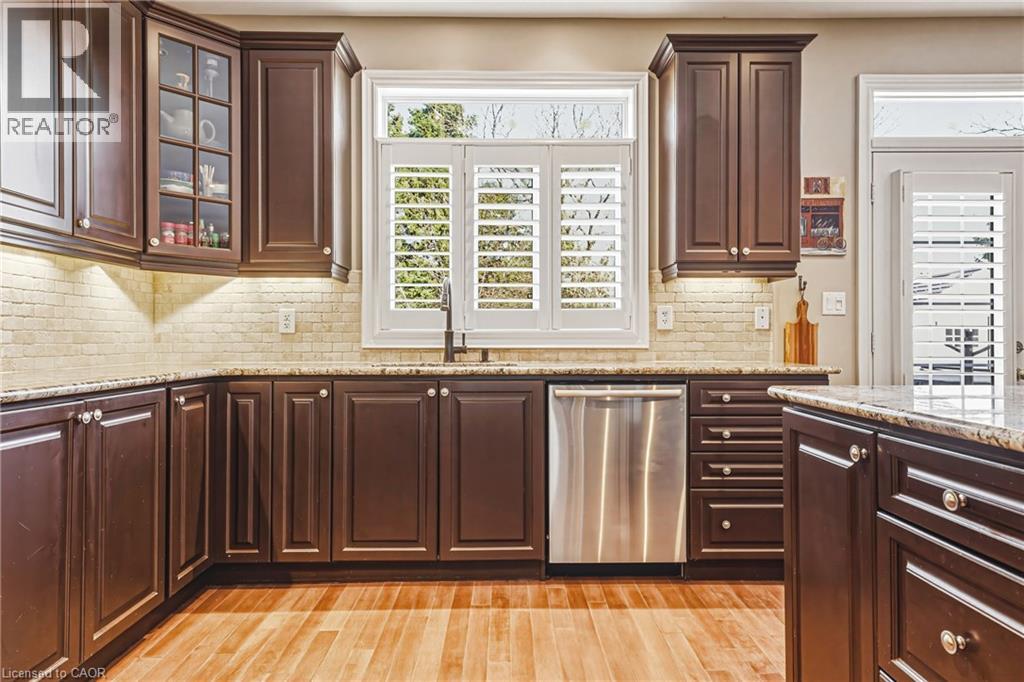 This stunning 4+1 bedroom executive home in the highly sought-after Parkview Heights community is sure to impress. Built by DeSantis Homes, this unique, customized floor plan offers over 4000 sq ft of living space designed for family living. The spacious Great Room features a gas fireplace with a beautiful antique mantle and has been expanded to create a warm, inviting space. A main floor office adds convenience, while upgraded rear windows and French doors lead to a landscaped backyard with gas BBQ hookup and an Arctic Spa saltwater hot tub. The gourmet kitchen is a chef’s dream with upgraded cabinetry, granite countertops, and a large island. Premium appliances include a 6-burner Wolf gas cooktop, built-in oven and microwave, French door fridge with water line and ice maker, and built-in dishwasher. Entertain in the formal dining room with coffered ceiling. The home features tasteful décor, a custom staircase, ceramic tile in foyer and mudroom with garage access, and dark engineered hardwood on the main level and upper hall. Bedrooms feature new carpeting. California shutters throughout add elegance. Upstairs, the primary suite boasts a luxurious 5-piece ensuite and walk-in closet. There are 3 additional bedrooms, a 4-piece bath, and a second-floor laundry room. The finished basement offers extra living space with a 4-piece bath, gas fireplace, and an additional bedroom or office. Upgrades include pot lights, foundation wrap, and a backflow valve. Situated on a premium lot backing onto a scenic walking path, this home offers privacy and tranquility. Beautiful curb appeal. Professionally landscaped. New furnace ’21. Easy highway access. Close to amenities, schools, parks, and trails. Room sizes approx. (id:4555)