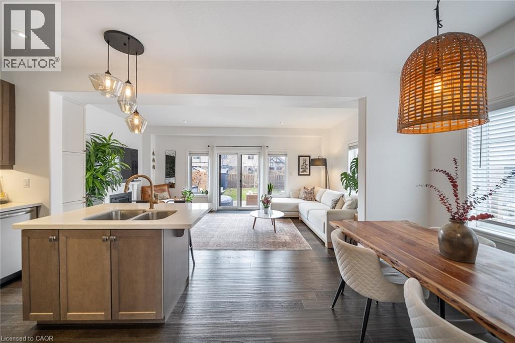 Gorgeous freehold end-unit townhome in a highly sought-after Ancaster neighbourhood with no condo fees. Attached only at the garage, offering added privacy and minimal noise, with a layout that lives closer to a detached home. Set on a premium lot larger than most surrounding homes, this property is filled with natural light from multiple sides and features engineered hardwood floors and consistent, quality updates throughout. Thoughtfully maintained and well cared for, this is a home where what you see is exactly what you get. Offering three bedrooms and three bathrooms, with a functional layout. The main floor has been upgraded with quartz countertops, updated faucets, lighting, and fixtures, along with a custom pantry and built-in shelving. The primary suite features custom built-in closets and dresser. The professionally finished basement (2025) adds additional living space, ideal for a gym, entertaining area, or accommodating extended family. The backyard is fully fenced, private, and larger than typical for the area, complete with newer landscaping, stonework, and established gardens. The driveway has been newly asphalted and sealed, offering parking for three vehicles in addition to the garage. This is a turnkey, well-maintained home in a safe, family-friendly community close to parks, schools, and amenities. Come see it in person; it’s even better than in the photos. (id:4555)