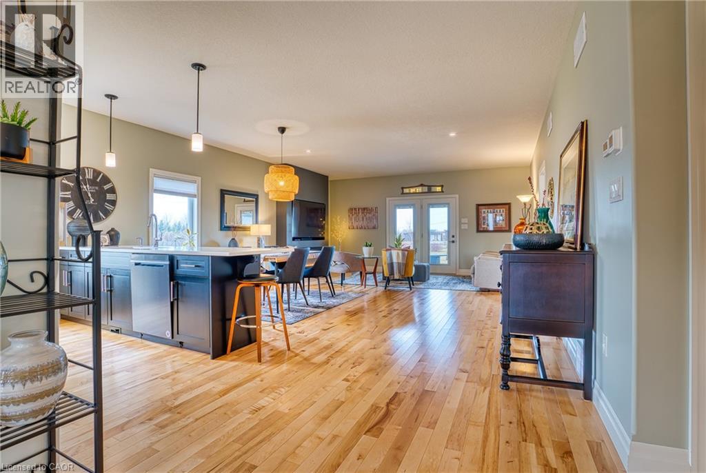 Sitting on a tranquil 1/2 acre lot in desirable Port Albert, walking distance to sandy beach with awesome sunsets. Well maintained bungalow built in 2019 with an additional detached garage. This home features 9 feet ceilings, hard wood flooring through out, open concept kitchen with stainless steel appliances and quartz counter tops, living room has walk out to 35'x12' covered deck perfect for entertaining or relaxing by your outdoor firepit, lots of room to grow. Master bedroom has ensuite, walk in closet and additional walk out to covered deck, convenient main floor laundry. Basement has 8 foot ceilings, outer walls are all insulated and studded, ready for electrical and drywall, roughed in 3 piece bath with sewage tank, roughed in central vac, forced air furnace heat supplied by a boiler (very efficient) and heated basement floor. Detached garage is insulated ,walls are covered in plywood and has forced air propane heater with thermostat, 240 volt shop receptacle and Wi-Fi connection. Parking for 12 cars or some toys. Short drive to hiking trails, swimming beaches, fishing, snowmobiling, shopping and much more. (id:4555)