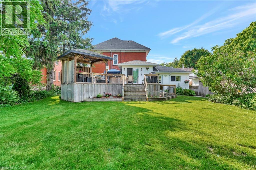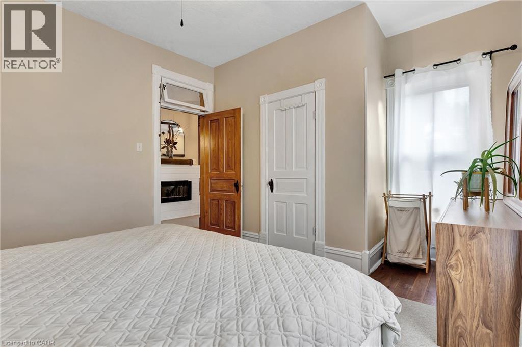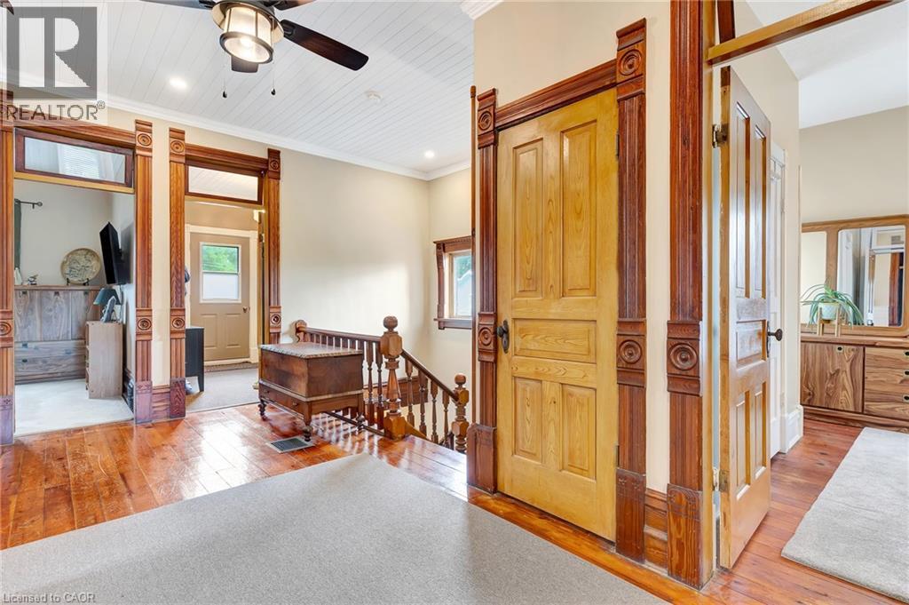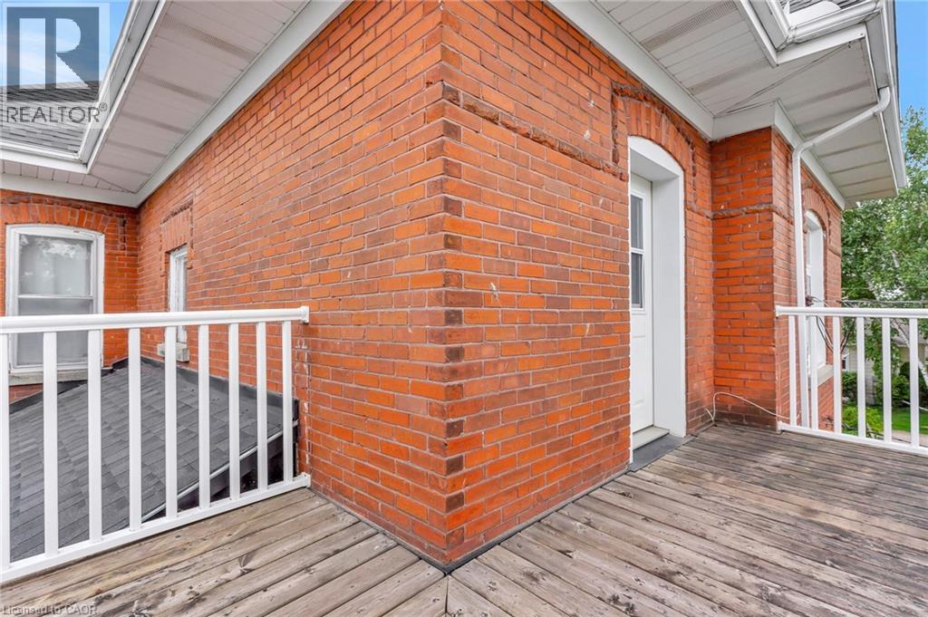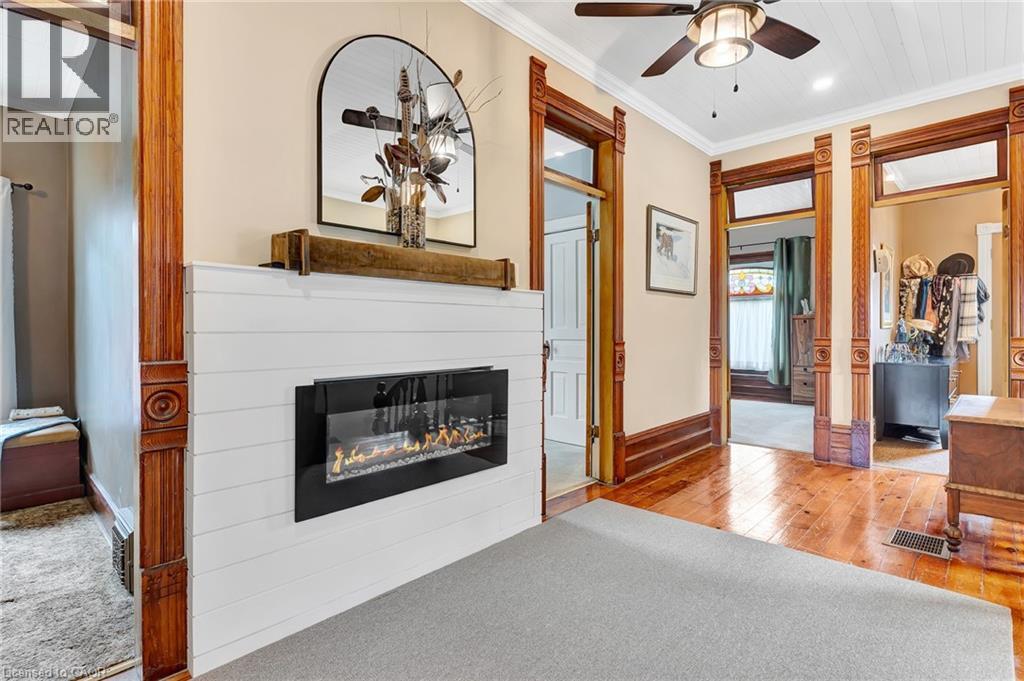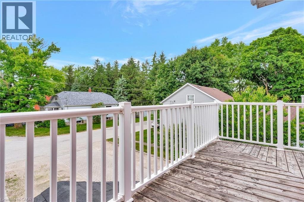 Welcome to 199 Ellen St, a charming century home overflowing with character located in the quiet family friendly town of Atwood, just a 45 min drive to Kitchener/Waterloo. This 5 bed, 2 bath, 2.5 story has beautiful curb appeal with an inviting wrap-around porch, solid red brick, lush landscaping, and a stone driveway to fit 6+ cars. Inside, the timeless appeal is seamlessly blended with modern upgrades from the elegant detail of the wood trim, some original stained glass windows and hardwood throughout to the classically renovated kitchen and bathrooms. The large entryway takes you to a cozy living room with large windows to let in plenty of natural light, and a gas fireplace where you will love to relax after a long day. From here you can separate the large formal dining room with traditional pocket doors. You will also find a den/office on this main level which is big enough to use to create a 6th bedroom on the main floor. Down the hall from the foyer is the gorgeous, modern-meets-rustic kitchen, with custom cream cabinetry and island, black granite countertops, gas stove and wood paneled ceiling, combining tradition and luxury. From here you can head through the mudroom where you'll find main floor laundry and a modern updated 3 pce bath. The oversized sliders will lead you to the peace and tranquility of the huge, treed backyard where you can enjoy the stunning gardens or relax on the private, well designed deck with a bar, or under the canopy where you can cool off under the fan. Store your toys and tools in the custom crafted shed. Upstairs there is an exquisitely designed electric fireplace with white shiplap, another fully updated 4 pce bathroom and 5 spacious bedrooms with one leading to your upper balcony, a great place to enjoy a morning coffee. If you're looking for more space or extra storage, there's a staircase to an attic with 500 sq feet to make your own. A perfect place to raise your children, close to community center/pool, schools and more! (id:4555)