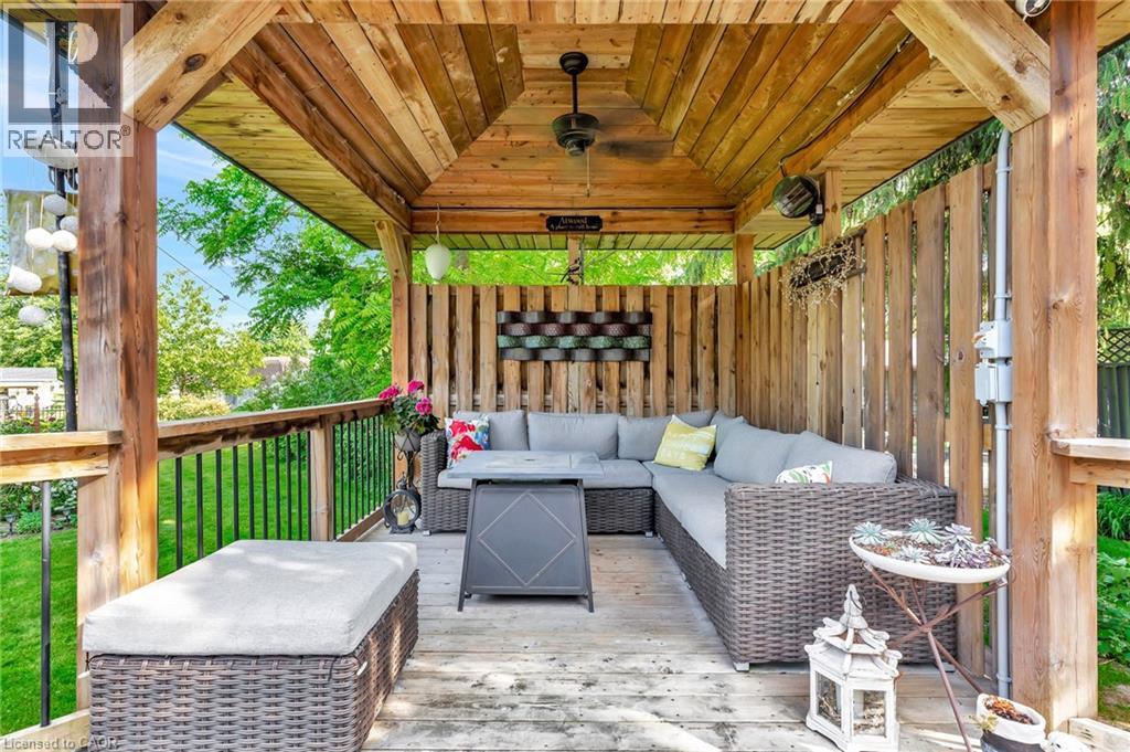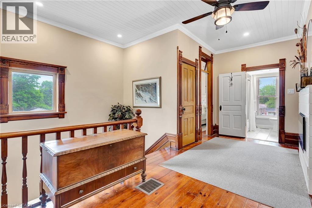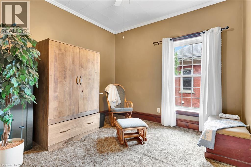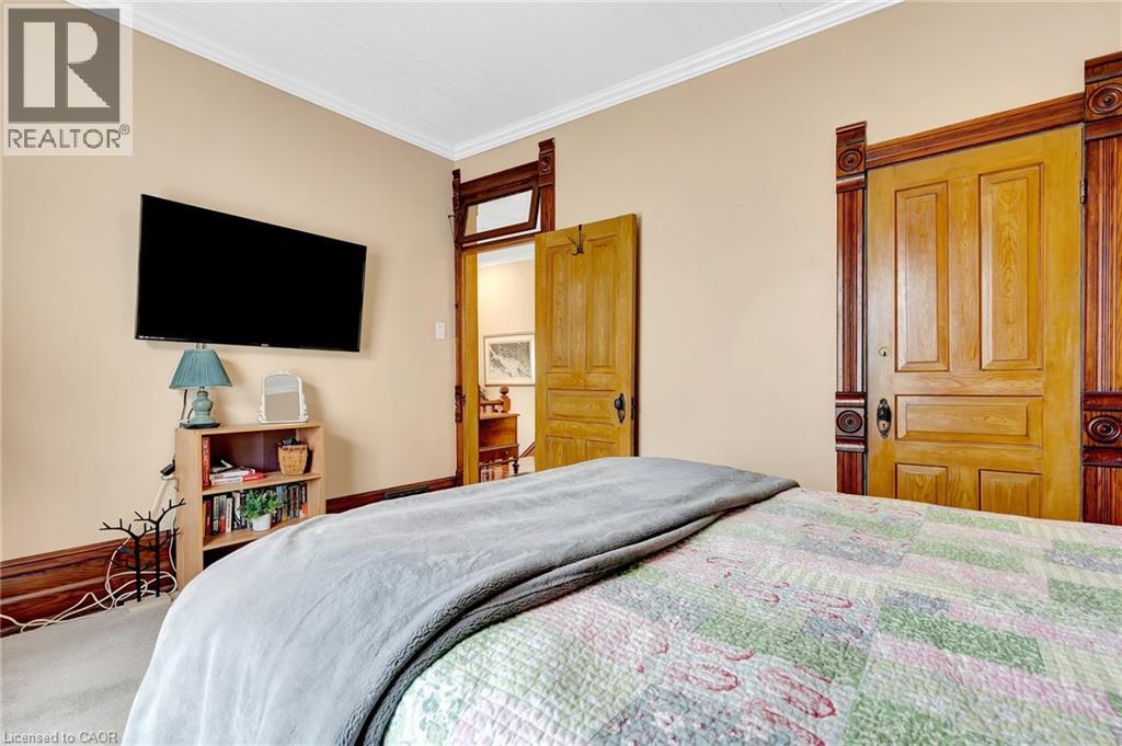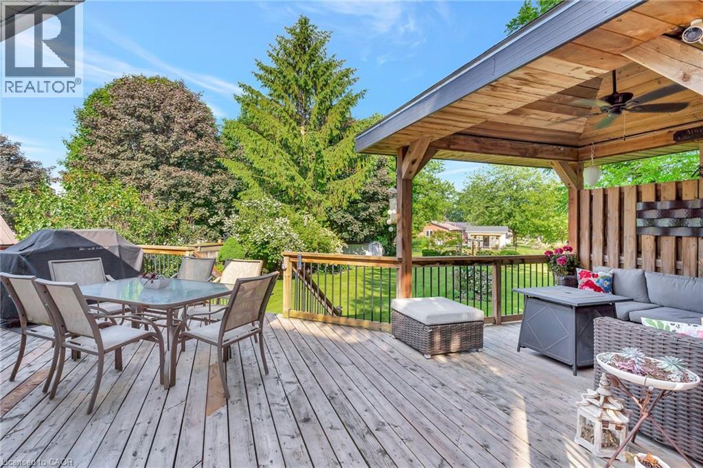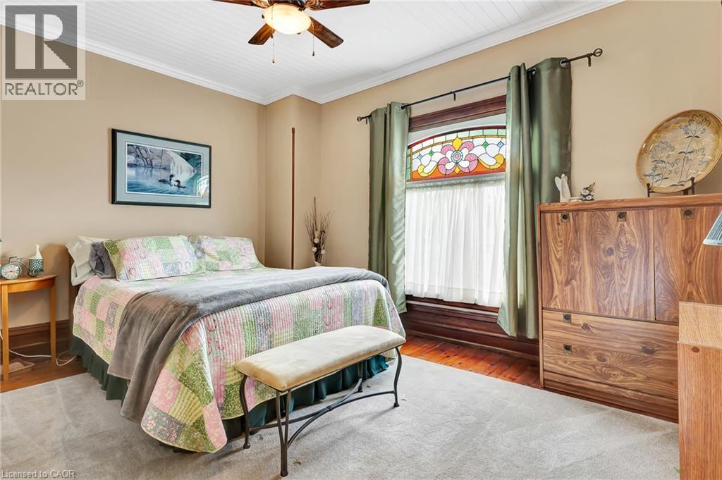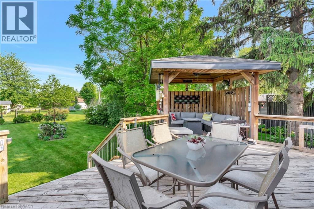 Welcome to 199 Ellen St, a charming century home overflowing with character located in the quiet family friendly town of Atwood, just a 45 min drive to Kitchener/Waterloo. This 5 bed, 2 bath, 2.5 story has beautiful curb appeal with an inviting wrap-around porch, solid red brick, lush landscaping, and a stone driveway to fit 6+ cars. Inside, the timeless appeal is seamlessly blended with modern upgrades from the elegant detail of the wood trim, some original stained glass windows and hardwood throughout to the classically renovated kitchen and bathrooms. The large entryway takes you to a cozy living room with large windows to let in plenty of natural light, and a gas fireplace where you will love to relax after a long day. From here you can separate the large formal dining room with traditional pocket doors. You will also find a den/office on this main level which is big enough to use to create a 6th bedroom on the main floor. Down the hall from the foyer is the gorgeous, modern-meets-rustic kitchen, with custom cream cabinetry and island, black granite countertops, gas stove and wood paneled ceiling, combining tradition and luxury. From here you can head through the mudroom where you'll find main floor laundry and a modern updated 3 pce bath. The oversized sliders will lead you to the peace and tranquility of the huge, treed backyard where you can enjoy the stunning gardens or relax on the private, well designed deck with a bar, or under the canopy where you can cool off under the fan. Store your toys and tools in the custom crafted shed. Upstairs there is an exquisitely designed electric fireplace with white shiplap, another fully updated 4 pce bathroom and 5 spacious bedrooms with one leading to your upper balcony, a great place to enjoy a morning coffee. If you're looking for more space or extra storage, there's a staircase to an attic with 500 sq feet to make your own. A perfect place to raise your children, close to community center/pool, schools and more! (id:4555)