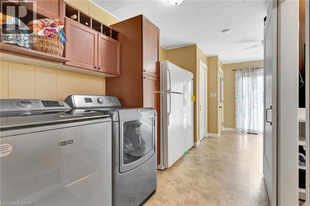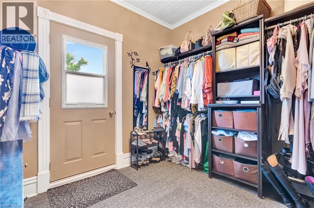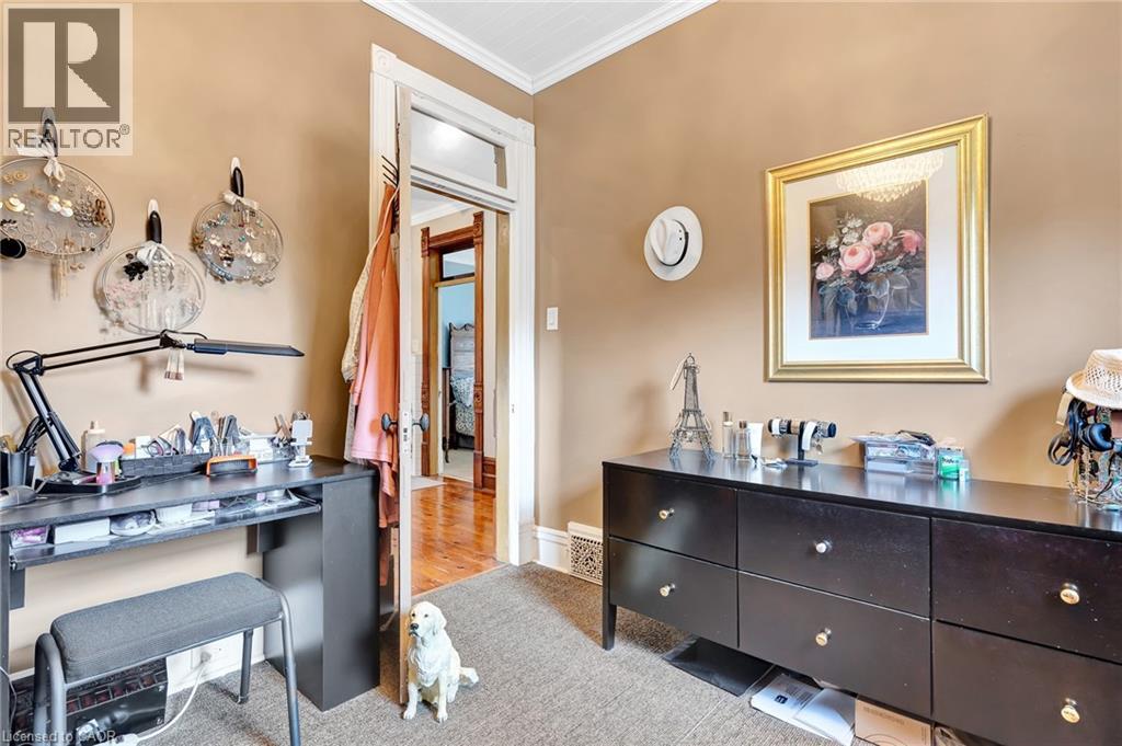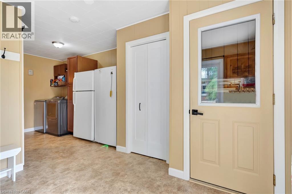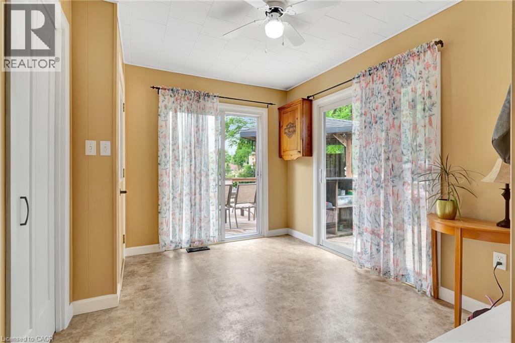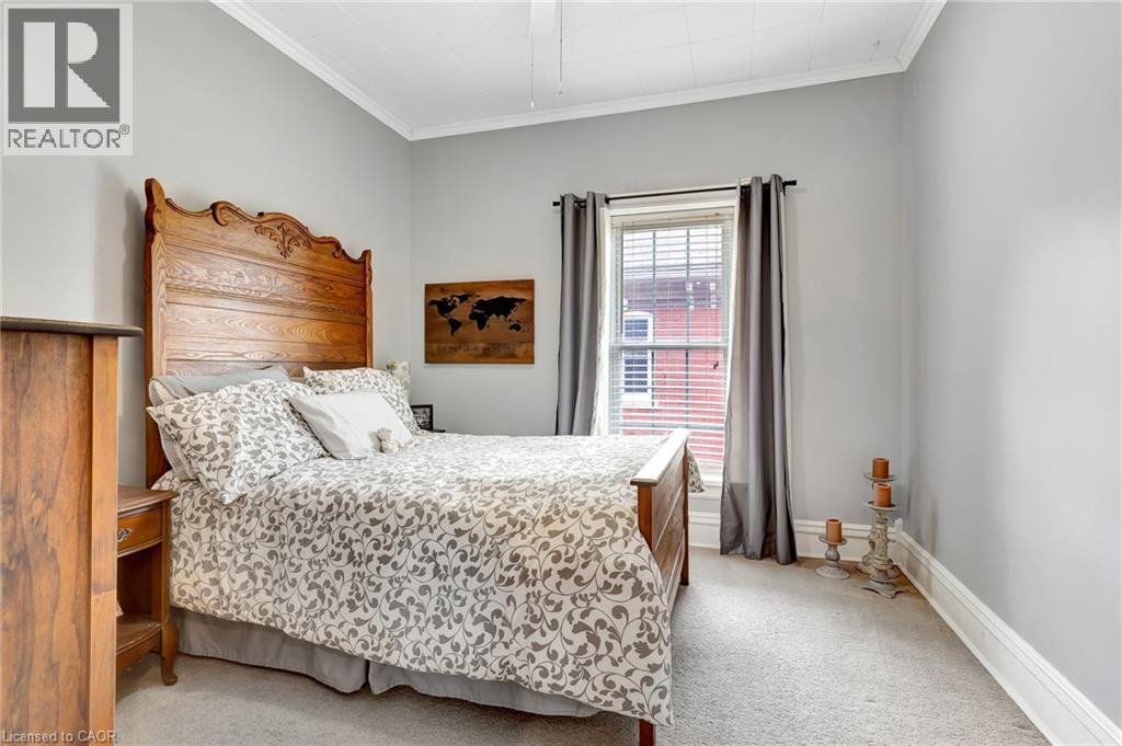 Welcome to 199 Ellen St, a charming century home overflowing with character located in the quiet family friendly town of Atwood, just a 45 min drive to Kitchener/Waterloo. This 5 bed, 2 bath, 2.5 story has beautiful curb appeal with an inviting wrap-around porch, solid red brick, lush landscaping, and a stone driveway to fit 6+ cars. Inside, the timeless appeal is seamlessly blended with modern upgrades from the elegant detail of the wood trim, some original stained glass windows and hardwood throughout to the classically renovated kitchen and bathrooms. The large entryway takes you to a cozy living room with large windows to let in plenty of natural light, and a gas fireplace where you will love to relax after a long day. From here you can separate the large formal dining room with traditional pocket doors. You will also find a den/office on this main level which is big enough to use to create a 6th bedroom on the main floor. Down the hall from the foyer is the gorgeous, modern-meets-rustic kitchen, with custom cream cabinetry and island, black granite countertops, gas stove and wood paneled ceiling, combining tradition and luxury. From here you can head through the mudroom where you'll find main floor laundry and a modern updated 3 pce bath. The oversized sliders will lead you to the peace and tranquility of the huge, treed backyard where you can enjoy the stunning gardens or relax on the private, well designed deck with a bar, or under the canopy where you can cool off under the fan. Store your toys and tools in the custom crafted shed. Upstairs there is an exquisitely designed electric fireplace with white shiplap, another fully updated 4 pce bathroom and 5 spacious bedrooms with one leading to your upper balcony, a great place to enjoy a morning coffee. If you're looking for more space or extra storage, there's a staircase to an attic with 500 sq feet to make your own. A perfect place to raise your children, close to community center/pool, schools and more! (id:4555)