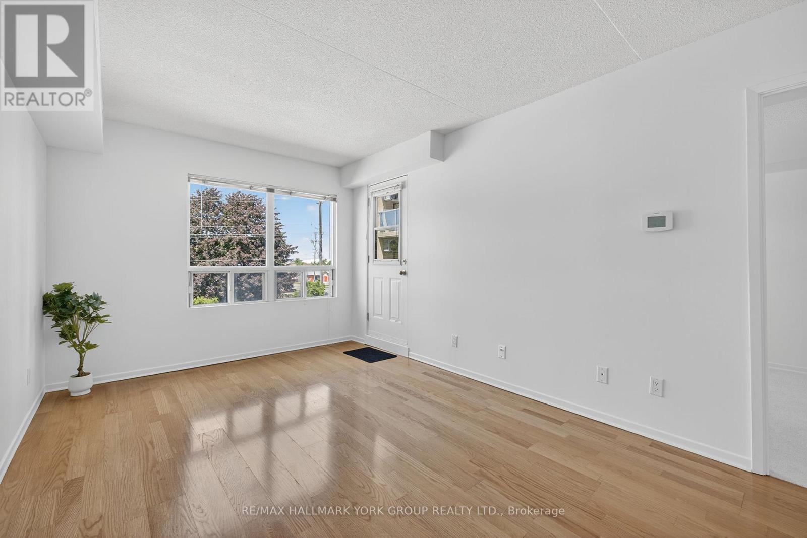 Discover this sparkling 2 Bedroom, 2 Full Bath condo in the heart of Aurora Village! Nestled in an exceptional 4-level boutique-style building just steps from the GO Train, this immaculate Royal Model suite has been freshly painted and is move-in ready white and bright! Enjoy an open-concept kitchen overlooking the living area. Complete with ensuite laundry and in-unit storage for added convenience. The condo showcases hardwood floors throughout the living and dining rooms, brand new broadloom in both bedrooms, and ceramic tile in the kitchen and foyer. Recent updates include new in-unit plumbing and a new hot water tank. Step outside to your private patio on the quiet side of the building, perfect for outdoor relaxation or entertaining. Residents also have access to a spacious rooftop terrace with panoramic views. All of this in a prime Aurora location close to transit, the GO Train Station, shops, restaurants, parks, recreation centre, and pool, surrounded by all of Aurora's rapidly developing amenities. (id:4555)