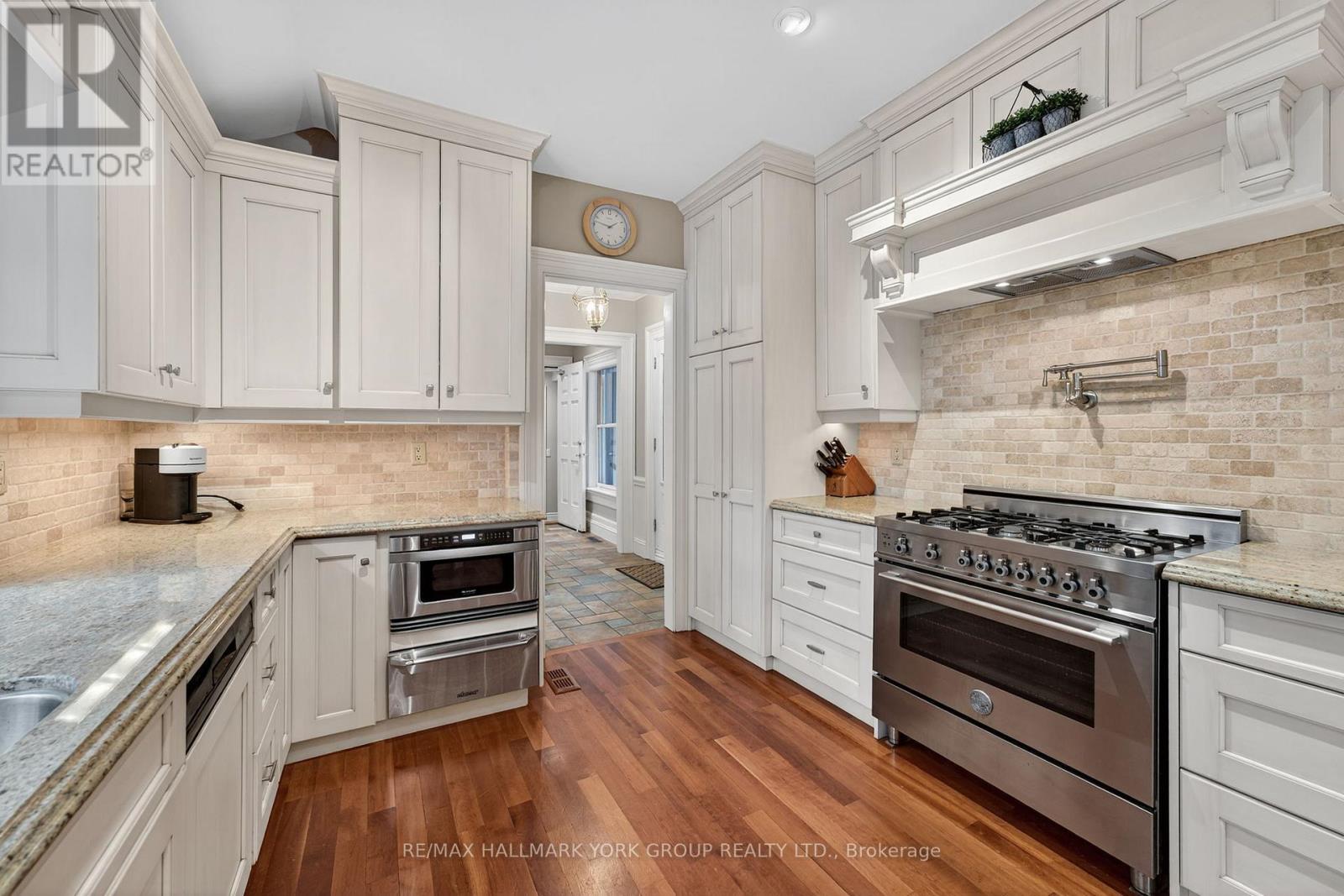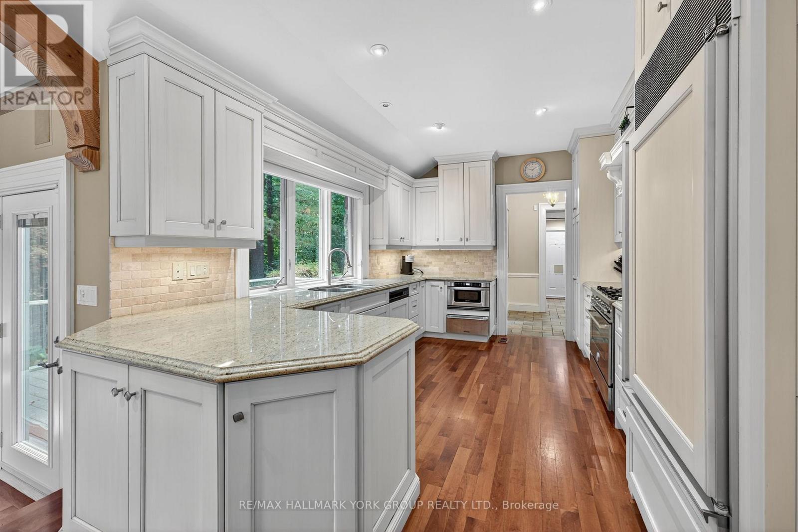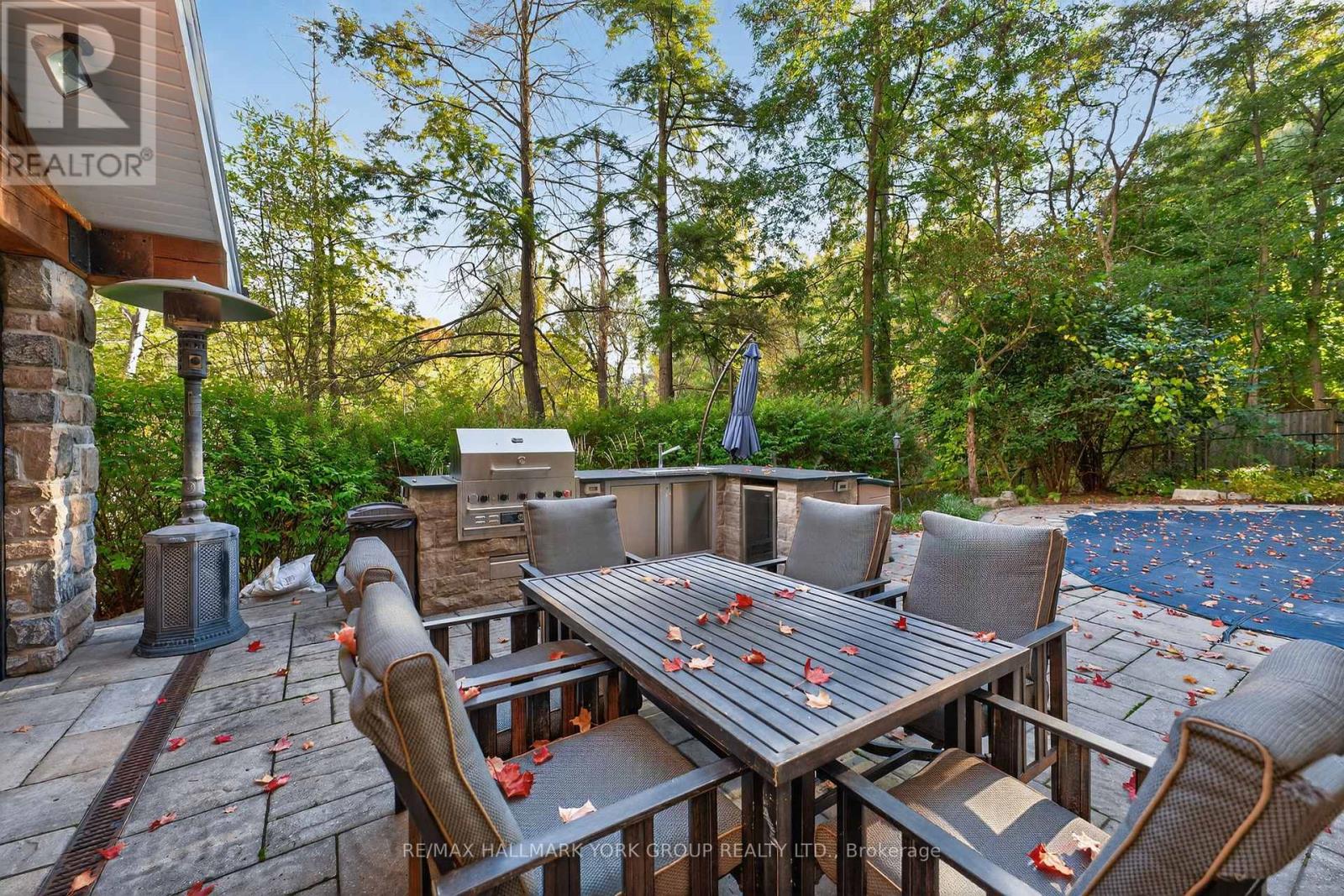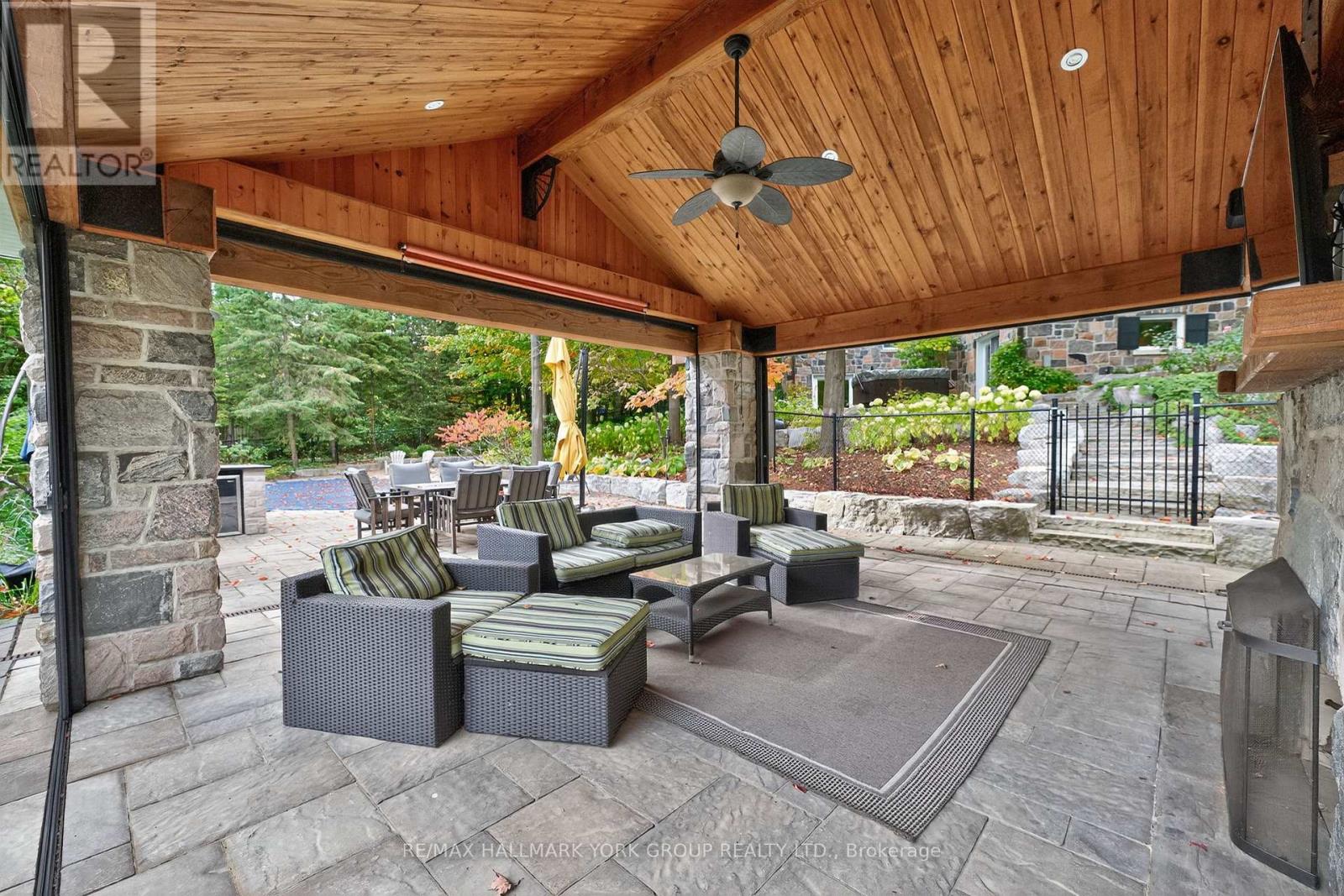 Welcome to Ridgewood, one of Aurora's most distinguished estate properties. Privately set behind gates on three manicured acres, this custom-built residence blends timeless architecture with modern luxury for an exceptional lifestyle. A circular drive leads to an elegant façade and inviting interior where refined craftsmanship meets everyday comfort. The chef's kitchen, equipped with premium appliances, opens to a grand vaulted family room with exposed beams and expansive views of the grounds. The main floor features a serene primary suite with a spa-inspired ensuite and custom dressing room. Upstairs, two additional bedrooms with private ensuites offer stylish comfort for family or guests. The finished walk-out lower level is designed for entertaining-featuring a home theater, gym, recreation lounge, wine cellar, and an arched-ceiling tasting room perfect for gatherings. A fourth bedroom adds versatility for guests or extended family. Above the three-car garage, a self-contained one-bedroom apartment includes a full kitchen, living room, and bedroom-ideal for multi-generational living, a nanny, a private office, or luxurious guest quarters.The outdoor setting is a resort-style retreat. Mature trees, lush gardens, and ambient lighting surround a stunning inground pool and hot tub. The poolside pavilion offers a fireplace, outdoor kitchen, two-piece bath, and change area-making entertaining effortless.With nearly 1,100 feet of frontage, enjoy your own walking trails, dog run, and direct access to the St. Andrews on the Hill trail network. Steps to St. Andrew's College and St. Anne's School, and just minutes to golf, shopping, and major highways.Ridgewood is more than a home-it's a private sanctuary where elegance, comfort, and nature exist in perfect harmony. (id:4555)