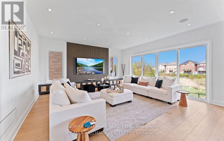 Welcome to an architectural masterwork of modern luxury and innovation. This bespoke residence offers over 3700 sqft of elevated living across three meticulously crafted levels. Perched on a premium RAVINE lot with 10FT walk-out basement, this home was thoughtfully designed for those who value both sophisticated style and advanced functionality.The main level boasts a dramatic grand foyer with custom millwork, an executive two-storey glass office, and a great room anchored by 12-ft wide floor-to-ceiling sliders that seamlessly connect to lush outdoor living. The chefs kitchen is a statement in design, featuring a showpiece waterfall island, panel-ready smart appliances, and a hidden walk-in scullery-butlers pantry with full prep capabilities.On the second level, three private bedroom suites each offer designer ensuites, custom storage and abundant natural light. A dedicated laundry suite with premium appliances and bespoke cabinetry adds everyday elegance.The entire third floor is a private primary retreat complete with vaulted ceilings, a sculptural four-poster bed alcove, boutique walk-in closet with skylight, and a spa-inspired ensuite featuring heated porcelain floors, double rainfall showers, and a freestanding tub.Smart home features include Brilliant WiFi automation, built-in speakers, central vacuum system with car vacuum, whole-house water softener and filtration, and security system wiring with camera capability. All appliances are WiFi-enabled and controllable by phone. Additional highlights include five skylights, pet wash station, private balconies with stunning CLEAR RAVINE views, artisan finishes throughout, and a walk-out basement with a 3-piece rough-in awaiting your vision. With easy access to 400 & 404, convenience meets luxury. This is a rare opportunity to own a residence where curated design and cutting-edge technology converge in perfect harmony. Plutus Homes is an HCRA Tarion registered builder with an impeccable reputation and rich history. (id:4555)