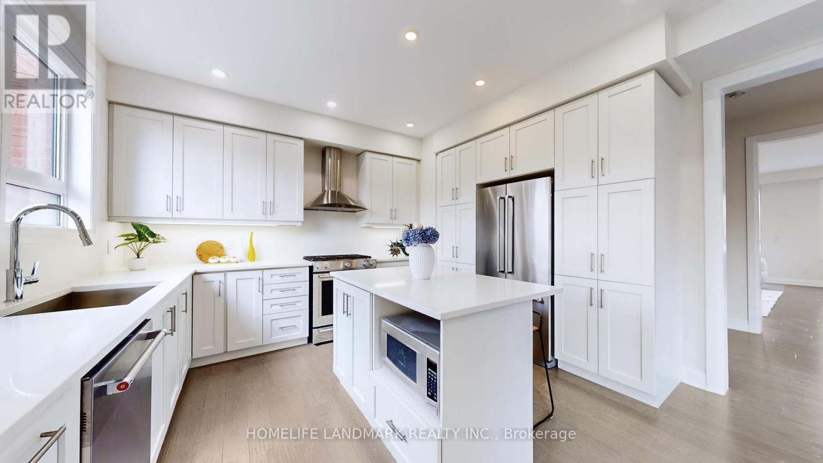 Welcome to the rarely offered end unit townhouse. Bright, sun-filled 3 storey (2,487 Sqft) freehold townhouse by Coutrywide Homes. Large 2 car garage with 2 car driveway, upgraded hand scraped hardwood throughout home. Lots of storage with large closets all with organizers. Pot lights throughout home. Wrought iron staircase, double door entrance, quartz countertop in kitchen with quartz backsplash and under valence lighting. Upgraded pantry space. Large terrace providing an additional 250 Sqft of outdoor entertaining space with built in gas line for BBQ'ing. Minutes away from 404, shopping, schools, trails & parks, Walmart, T&T, GO station, Shoppers Drug Mart, Farm Boy, Home Sense, Winners, and much more. (id:4555)