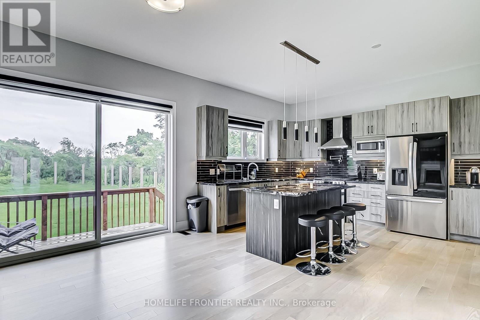 Stunning 5-bedroom modern house situated in Aurora Estates Woodhaven Community. Premium, Ravine, Corner Lot with Open Concept Main Floor 10" Ceilings Floor Pot lights throughout Designer. Inspired Kitchen w/ Your Eat-In Kitchen to a newly Build Outdoor Deck W beautiful ravine view on both sides. The contemporary design perfectly complements the beautiful neighborhood, offering both style and comfort. The spacious layout and high-end finishes make it an ideal family home, while the surrounding area adds an extra touch of charm and tranquillity. It's a perfect blend of modern living in a picturesque setting. (id:4555)