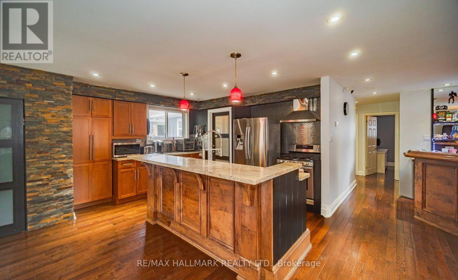 Exceptional Bungalow Set On A Premium 54x121 Ft Lot Featuring A Private Backyard Oasis With Inground Pool & Cabana. Step through the front door into a welcoming foyer with stone flooring, built-in bench, and custom wall panelling. The open-concept main level features almost 1500sqft of living space, hardwood floors, LED pot lights, and a striking custom stone accent wall that enhances the home's timeless charm. The kitchen offers stainless steel appliances, granite countertops, and generous cabinetry, along with a centre island featuring a breakfast bar, double undermount sink and dishwasher. A custom wet bar area serves as a unique addition, ideal for entertaining guests. The living area, framed by a large bay window with zebra blinds, fills the space with natural light and offers views of the manicured front yard. The spacious primary bedroom features double closets, 4pc ensuite and a walk out to large deck, pool and fenced backyard. The flexible home layout allows the option to convert back to 3 bedrooms on the main floor. Walk out to an expansive deck with wooden glass railing and ambient lighting, overlooking the lush backyard retreat. The private oasis showcases a large inground pool and tiki bar, creating the perfect backdrop for summer gatherings. Fully finished in-law apartment with separate entrance, complete with kitchen, living/dining area with fireplace, two bedrooms, and a 3pc bathroom. This lower suite offers excellent flexibility for extended family or investors or additional living space. Nestled on a quiet, family-friendly street in one of Aurora's most desirable neighbourhoods, just minutes from top-rated schools, shopping, restaurants, golf, and scenic parks. A rare opportunity to own a beautifully updated home with income potential in a sought-after location! (id:4555)