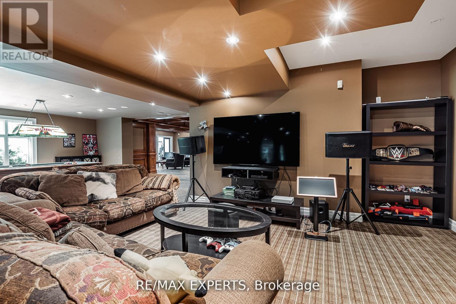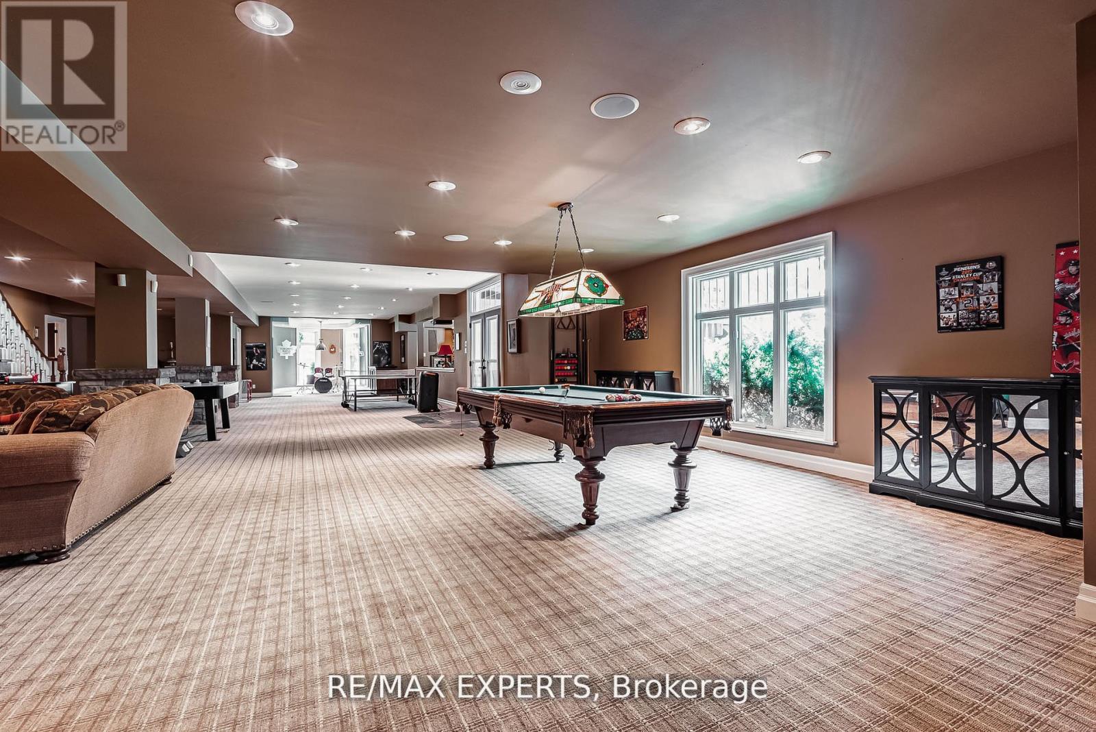 A Must-Have for Sports Enthusiasts - Previously Owned by Legendary Canadian Hockey Goaltender Curtis Joseph Welcome to this stunning executive bungalow nestled on nearly 2 acres in the prestigious enclave of Aurora Estates. Boasting over 5,100 sq. ft of pure luxury, this home features 10-foot ceilings, 8-foot doors, and exceptional designer finishes throughout. Step into the sunken living room with a two-sided fireplace, perfect for entertaining or relaxing in style. The grand primary suite offers a spa-like 7-piece marble ensuite and an enormous walk-in closet. The gourmet kitchen is a chef's dream, equipped with a Wolf stove, Sub-Zero refrigerator, and elegant custom cabinetry. The fully finished walk-out basement is a true entertainer's paradise, featuring a pub, wine cellar, gym, hockey training room, games room, home theatre, and direct access to a beautifully landscaped yard with pool, cabana, hot tub and multiple sitting areas with wood burning fireplaces. For the car enthusiast, there's also a newer detached 2-car garage in addition to the main 3 car garage. (id:4555)