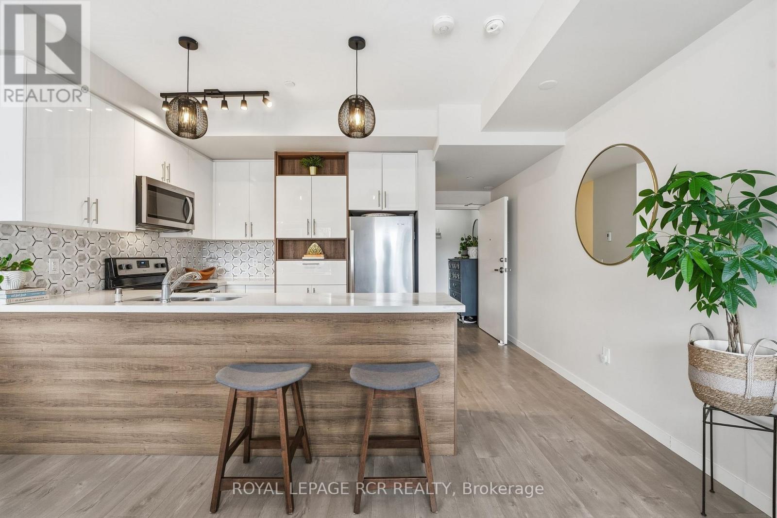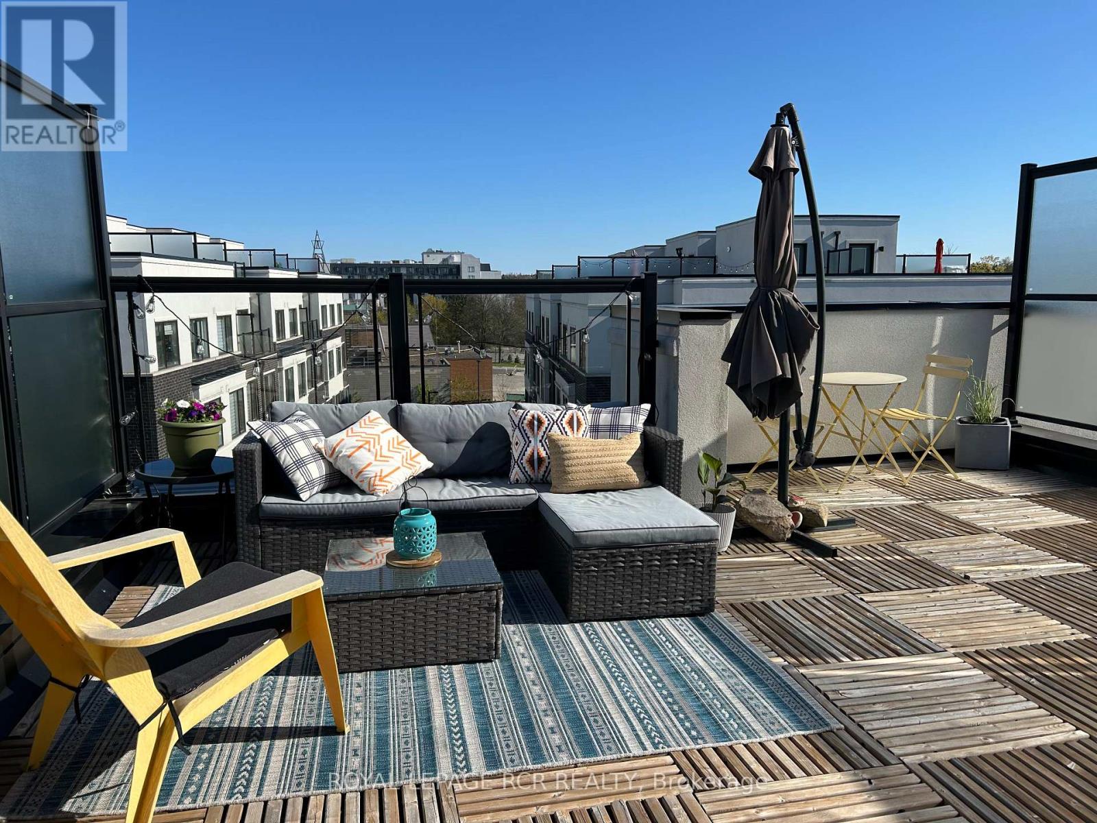 Welcome to this stylish 2-bedroom, 3-bath stacked townhouse offering modern design and functional living across every level. The open-concept main floor showcases a contemporary kitchen with quartz countertops, sleek tile backsplash, and counter seating, flowing seamlessly into the dining area and bright living space. Expansive windows fill the home with natural light, creating an airy and inviting atmosphere. Upstairs, the spacious primary suite features a walk-in closet, a charming Juliette balcony, and a private ensuite bath with a glass shower. A second bedroom and additional bathrooms provide excellent flexibility for guests, family, or a home office. Enjoy outdoor living on your private rooftop terrace, perfect for entertaining or relaxing. Underground parking and a storage locker add everyday convenience. Ideally located close to the Aurora GO Station, Summerhill Market, Aurora Town Park, and the Aurora Cultural Centre, this modern condo townhome balances comfort, style, and low-maintenance living in the heart of a vibrant community. (id:4555)