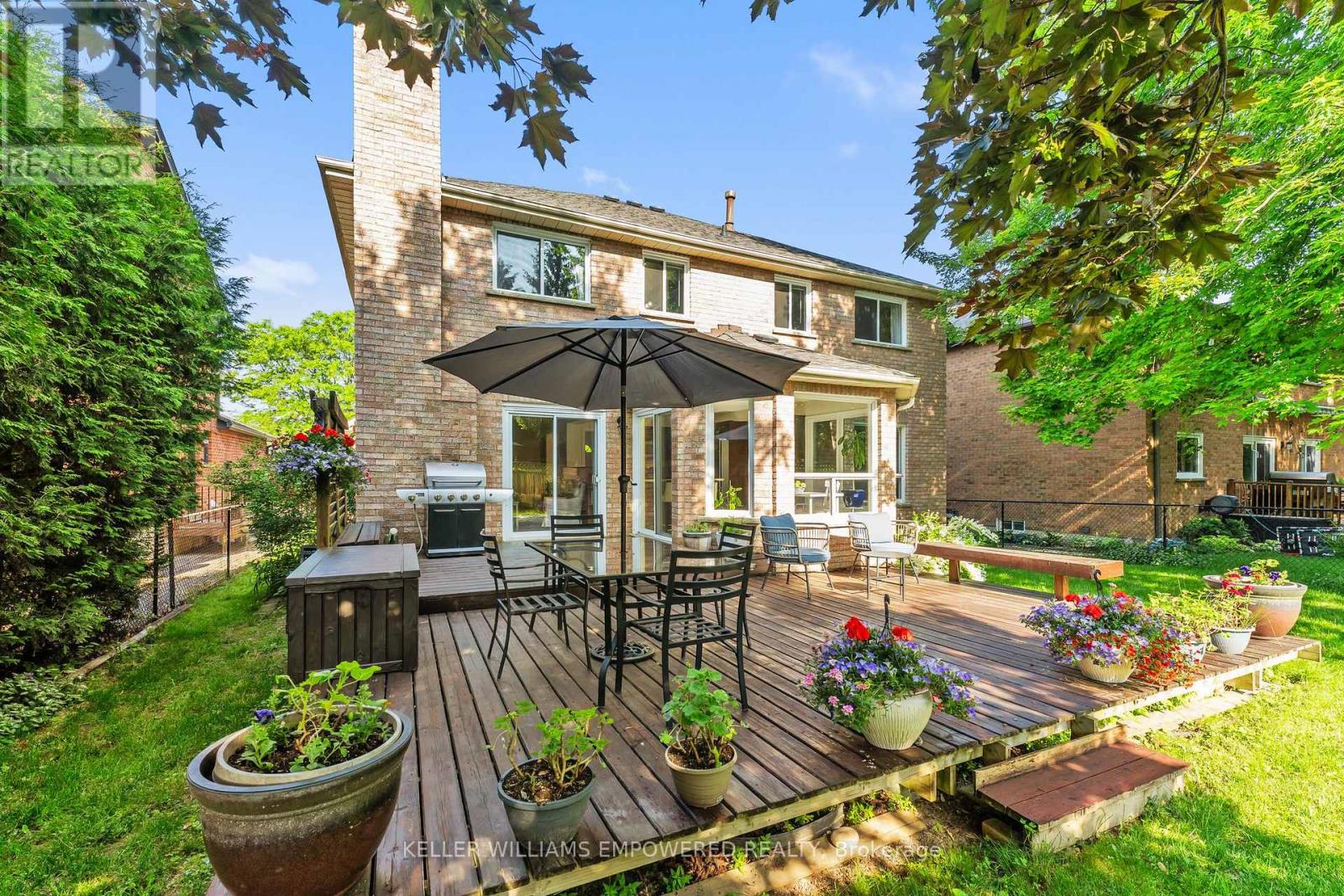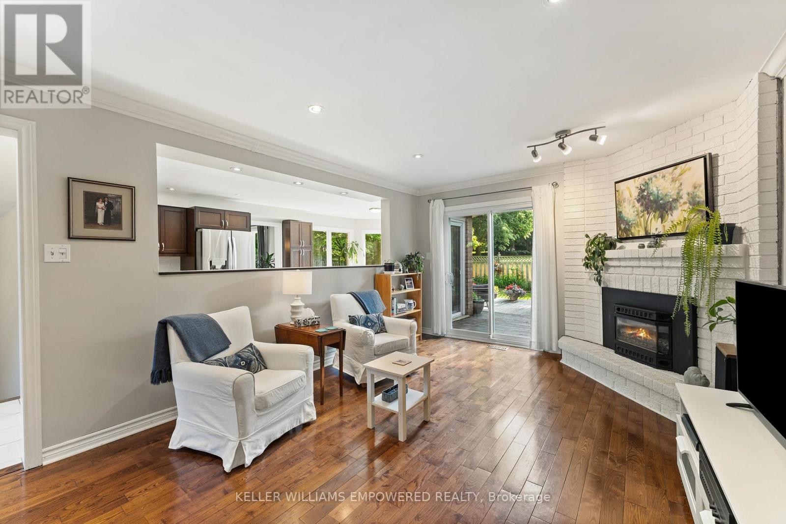 Welcome to this gorgeous family home nestled in the desirable Aurora Heights community. Perfectly located within walking distance to the Aurora Community Centre and just minutes from top-rated schools, shopping, and entertainment. This warm and inviting home features hardwood flooring, pot lights, crown moulding, and an open-concept design ideal for both everyday living and entertaining. Large windows throughout offer beautiful views of the treed surroundings, filling the space with natural light. The spacious kitchen is perfect for hosting, with direct access to the rear deck and adjacent family room. The family room exudes charm with a cozy gas fireplace with a floor-to-ceiling brick surround. The convenient main floor laundry room includes a side entrance and plenty of storage space. Upstairs, the large primary bedroom offers hardwood flooring, a custom floor-to-ceiling closet organizer, and a private three-piece ensuite with oversized porcelain tile flooring, a vanity with a stone countertop and a glass-enclosed shower. The additional bedrooms are generously sized perfect for a growing family. The fully finished lower level is made for entertaining, featuring a spacious recreation room with another brick-surround fireplace, a dedicated home office and an exercise room complete with laminate flooring and built-in speakers. Step outside to a private backyard oasis framed by mature trees and lush landscaping. This fully fenced yard includes a multi-level deck ideal for summer barbecues, relaxing in the sun, or entertaining guests. Enjoy garden beds filled with vibrant annuals and perennials that enhance the natural beauty of this space. Conveniently located near prestigious schools including St. Andrews College and St. Annes School, this home truly offers the best of family living in Aurora. (id:4555)