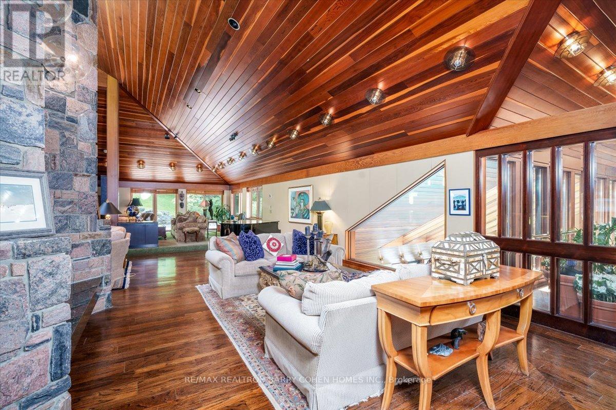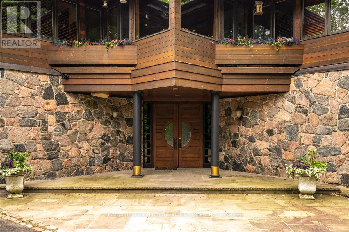 A Rarely Offered 15,000SqFt Prestigious Estate On An Exclusive Cul-De-Sac Bordering Aurora's Exclusive Beacon Hall Golf Club. Nestled Amid A Premium 4-Acre Lot! The Property's Severance Potential Provides An Added Investment Opportunity. The Existing Estate Is An Architectural Marvel. Designed By Famed Architectural Firm Laszlo Nemeth Associates & Features Outstanding Indoor & Outdoor Entertaining Spaces Including Covered Outdoor Kitchen W/Multiple Terraces, Majestic Lawns & Forests, Plus A Bridge Leading To The Tennis Court & Tennis Pavillion. An Additional Outdoor Hot Tub Sits Beside The Swimming Pool, Highlighted By A Cascading Waterfall Feature. The Great Rm Centres Around A Striking 20ft+ 4-Sided Floor-to-Ceiling Stone Fireplace Crowned By Vaulted Ceilings & Surrounded By Wall-To-Wall Windows W/Multiple. A Large Bar, Sunken Billiard Rm, Family Rm, Grand Dining Rm & Gourmet Kitchen Complete The Main Floor Entertaining Spaces. Main Floor Primary Suite Boasts His & Hers Dressing Rooms, Spacious 9-Piece Ensuite & Private Stair To The Indoor Pool Complex Complete W/ Grotto Hot Tub W/Waterfall, Walkout To Rear Gardens, Full Service Bar & Spa Zone Featuring Marble Steam Room, Sauna, Shower Rm & Exercise Room. The Main Floor Bedrm Wing Features 2 Additional Bedrooms W/Ensuites, Spacious Office W/ Wet Bar & Powder Rm, Games Rm, Laundry, Guest Wing W/2 Bedrms Plus Ensuites. The Top-Floor Office, Complete W/An Adjacent Washroom, Presents An Idyllic Workspace Filled W/ Natural Light While Also Offering Excellent Potential To Be Converted Into An Additional Bedrm. Included Is A 1-Bedrm Self-Contained Apartment W/Separate Entrance For In-Laws Or Staff Including Kitchen, Bathrm & Living Rm. A Rare Offering W/Unmatched Amenities, Luxurious Privacy, Investment & Development Potential, Conveniently Located Close To St. Andrew's College, St Anne's School, The Country Day School, & Villanova. Steps to Beacon Hall Golf Course, Close To Magna Golf Club & Several Club Link Courses. (id:4555)