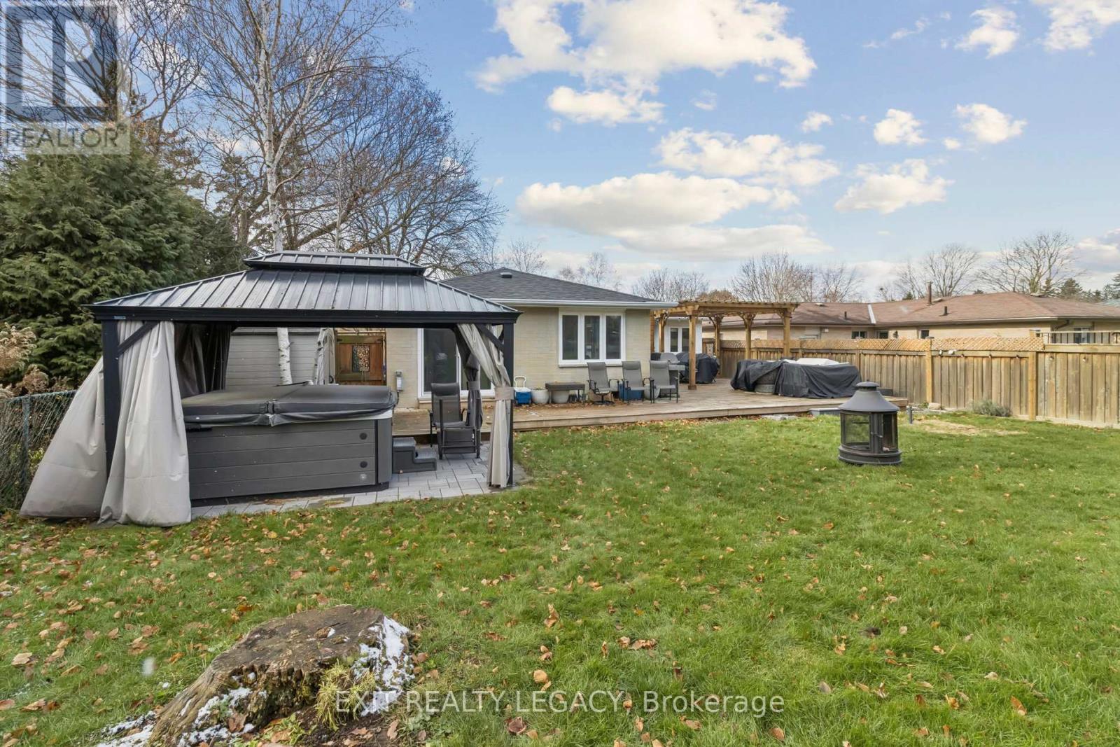 Welcome to 4 OAk Crt. This beautifully renovated open-concept bungalow located on a quiet court in Aurora Village. This home features large windows throughout for maximum natural light. The main floor includes 3 bedrooms and 2 bathrooms. The kitchen is equipped with a large quartz island, a custom pantry, and stainless steel appliances. The interior transitions to the outdoors via multiple entertainment decks. The backyard includes, a 6-seater hot tub, decks for sitting space and a fire pit. The property also features a fully finished basement providing additional living space. Much of the furniture can stay. Central location with easy access to local amenities. (id:4555)