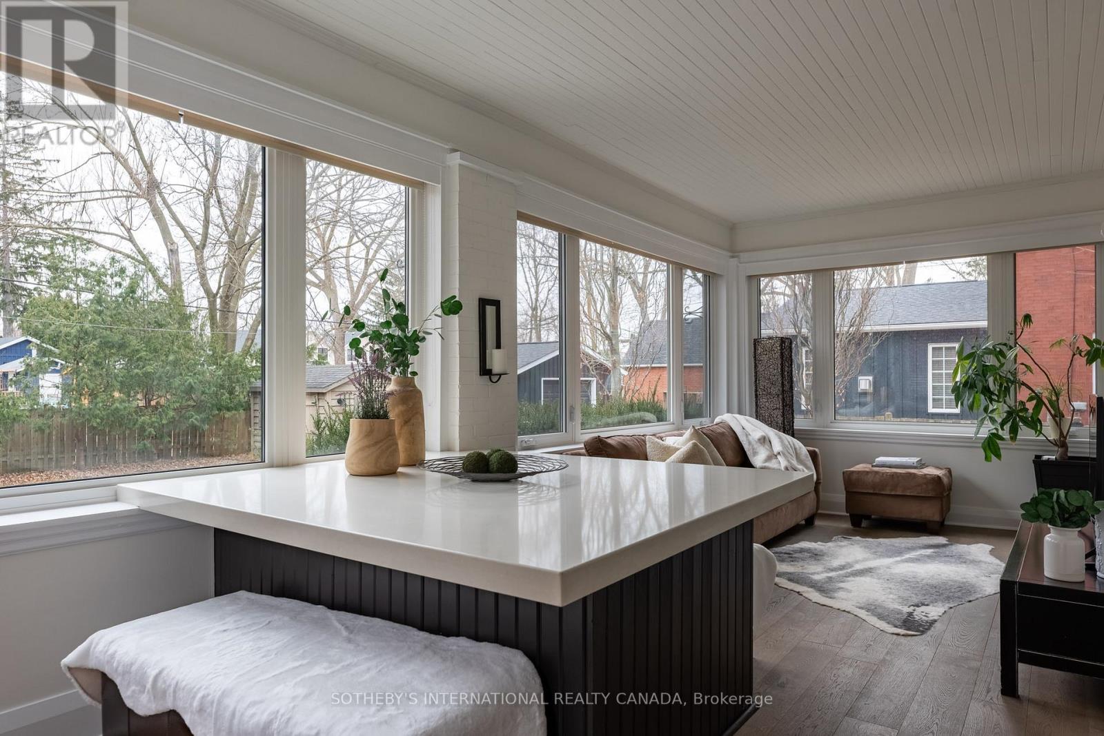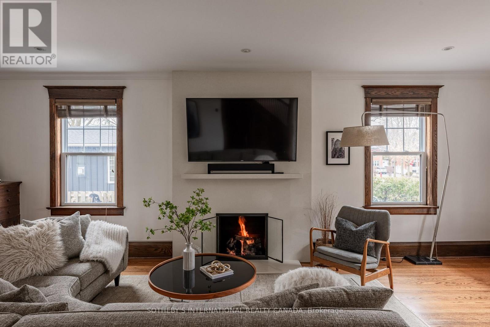 This classic red brick residence offers both character and charm within 3595 total square feet. Tucked into the sought-after pocket of Catherine, Fleury, and Spruce, it's the kind of place where front porches spark conversations, kids play up and down the street, and families gather for everything from street parties to backyard get-togethers. A new front door welcomes you into a centre hall plan. The contemporary kitchen blends old-world charm with modern functionality for active family life, featuring a Wolf 36-inch gas range, smart in-drawer island lighting, and a Luxor pantry with floor-to-ceiling cabinetry. The living room, anchored by a gas fireplace with a floor-to-ceiling quartz feature wall, pairs beautifully with the original oak trim of this timeless home. The bright sunroom with hardwood floors, a large quartz craft table, and a flexible layout functions easily as a breakfast area, workspace, or family room, surrounded by large new windows that flood the space with natural light. New sliding glass doors lead to a fully fenced, south-facing backyard with a new hardscaped patio. The second-floor landing includes a contemporary live-edge reading/storage bench beneath a large south-facing window and features three spacious bedrooms, each with custom closets. A 5-piece spa-like bathroom completes this level with heated floors and a 4' x 4' glass shower. The third level is a flexible open-concept space currently used as the primary suite but could also be a family room. It includes two skylights, a walk-in closet, a 3-piece ensuite with heated floors and a 4' x 4' shower, built-in oak drawers, a separate storage area, and an office nook. The lower level offers a guest suite with two built-in double closets, a TV/playroom area, and a laundry room. Just steps away are green spaces, parks, a local tennis club, lawn bowling, cafés or restaurants. Walk to Aurora GO Station or nearby public and independent elementary schools or high school. (id:4555)