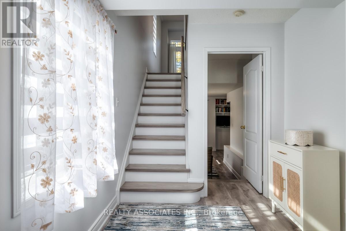 There Is Nothing That Has Not Been Thought Out Of This Modern And Stylish Corner End Townhome! Check All Boxes And Experience The Comfort Of This Sun Filled And Renovated Home! The Property Features 3+1 Bedrooms Plus 3 Bathrooms. The Main Level Offers An Open Concept Living/Dining Room With A Gas Fireplace Making It Perfect For A Cozy Day! Kitchen Provides Contemporary Finishes With Top Of The Line Appliances, Upgraded Quartz Counter Tops & Slate Quartz Backsplash. Walk-Out To A Raised Deck For Outdoor Entertaining! You Will Find a Extra Space For a Family Room or Office on the Ground Floor. The Following Renovations Where Done in October 2022: Fully Renovated Kitchen, All Laminated Throughout The House, Hardwood on Stairs, Upgraded Metal Railing, House Painted Throughout, Upgraded Light Fixtures, Upgraded Appliances including Washer and Dryer, Vanities Plus Quartz Countertops & Faucets in Bathrooms. Silk/Zebra Blinds 2023. One Of The Biggest Units In The Complex! Over 1700 Sq.Ft. (id:4555)