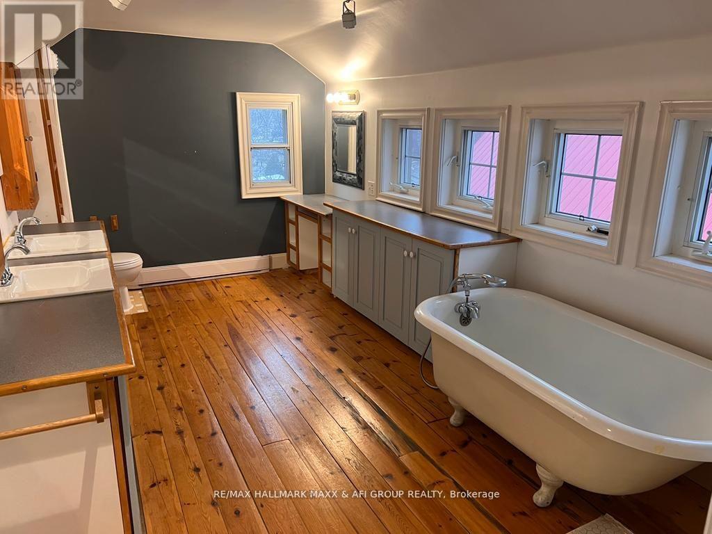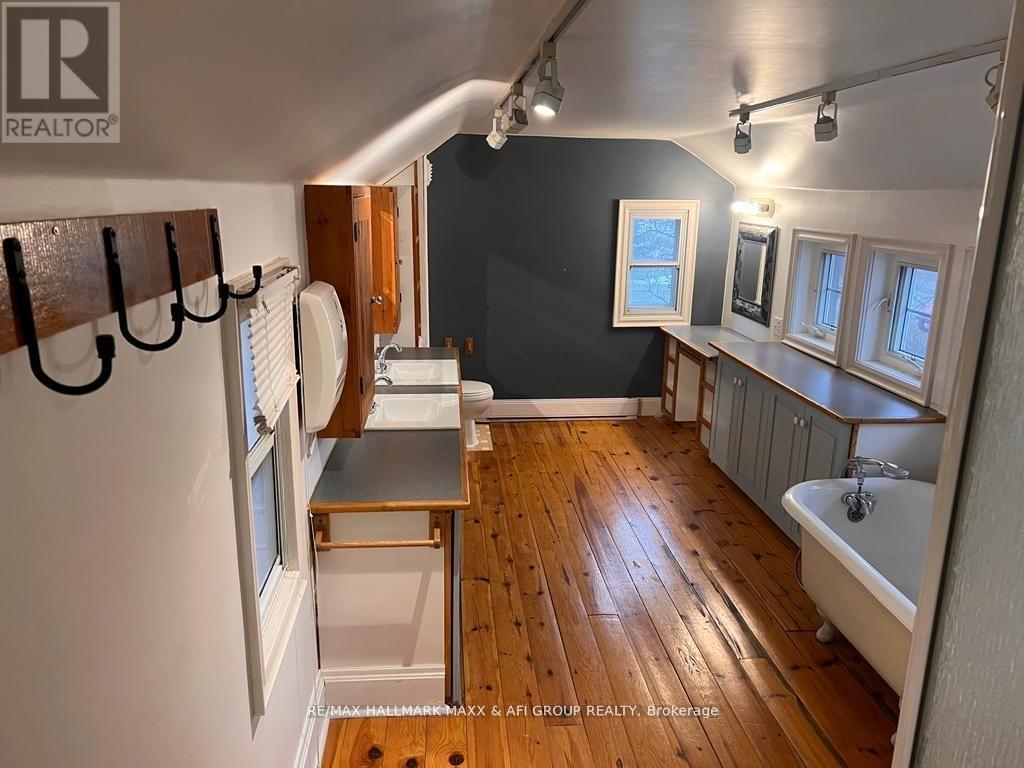 Step into timeless character with this two-storey heritage home located in the heart of downtown Aurora. This unique 2-bedroom, 1-bathroom residence blends historic charm with functional living spaces, perfect for tenants seeking something truly distinctive. The main level features original hardwood floors, high ceilings, decorative trim, and a cozy living/dining area highlighted by a feature fireplace. The spacious eat-in kitchen offers ample cabinetry, wood countertops, and multiple windows providing great natural light, with direct access to the backyard. Upstairs, you'll find two character-filled bedrooms with painted wood floors, wainscoting accents, and generous closet space. The bathroom is a standout, featuring a vintage clawfoot tub, double vanity, wood floors, and abundant natural light - a perfect blend of old-world charm and everyday comfort. Additional highlights include: Fully fenced private backyard with deck. Two tandem parking spaces on the driveway. Enclosed front entry/mudroom with built-in shelving and hooks. Fresh neutral paint throughout. Unique architectural details you won't find in newer homes. Unbeatable location - walking distance to Aurora GO Station, YRT transit, parks, shops, cafés, and restaurants. Ideal for commuters or anyone looking to enjoy a vibrant, walkable downtown lifestyle. A rare opportunity to lease a truly special home in one of Aurora's most desirable locations. (id:4555)