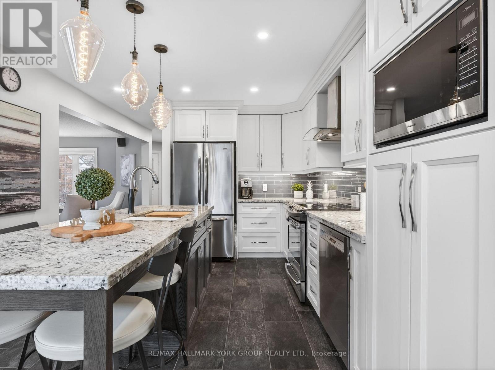 OPEN HOUSE SAT. MAR. 21ST & SUN. MAR. 22ND 2-4 PM! Move-in ready 2-storey family home in a sought-after Aurora neighbourhood featuring 3+1 bedrooms, 3 bathrooms, finished basement, double car garage, and extra-long driveway for 4 vehicles with no sidewalk. Landscaped, fully fenced lot with west-facing backyard, interlock patio, and tranquil zen water feature, perfect for relaxing or entertaining. Inviting foyer with double closet and access to the garage. The open-concept main floor features engineered hardwood and porcelain tile flooring, formal living and dining areas, and a renovated kitchen with granite countertops, large Kohler stainless steel sink, subway tile backsplash, stainless steel appliances, pot lights, crown moulding, pantry, under-mount lighting, soft-close cabinetry with custom storage, and large island with custom pendant lighting. The bright family room features a gas fireplace, cathedral ceiling, and abundant natural light with an arched window & sliding glass doors to the backyard patio. Convenient 2-piece powder room on the main floor. Upstairs features engineered hardwood and luxury vinyl plank flooring, and California shutters. Spacious primary bedroom with walk-in closet with custom sliding barn door and renovated 3-piece ensuite with heated floors, quartz vanity, and glass door shower with rain shower head. Two additional bedrooms share an updated 4-piece bath with honeycomb ceramic tile, and deep soaker tub with shower. Convenient upper-level laundry with cupboards and custom sliding barn door. Finished basement with new broadloom, large recreation room, and additional room ideal as bedroom, office, or flex space, plus storage and cold cellar. Close to Hwy 404, transit, top-rated schools, parks, trails, and St. Andrews Golf Club. Great family home in a fantastic neighbourhood! (id:4555)