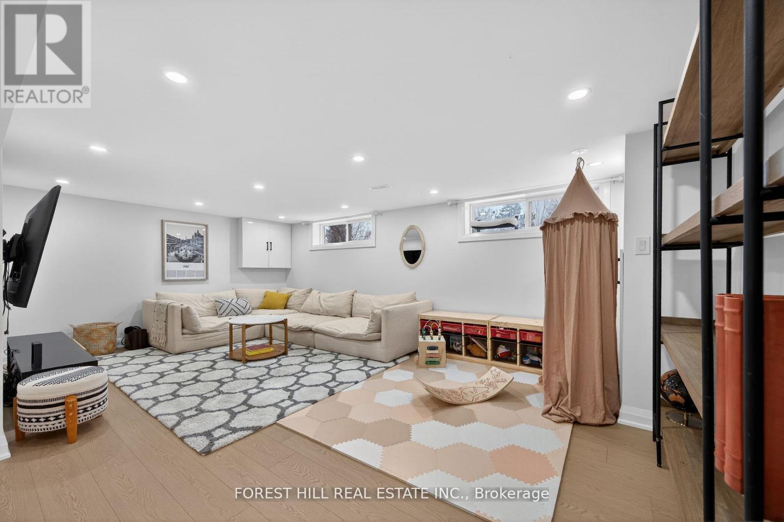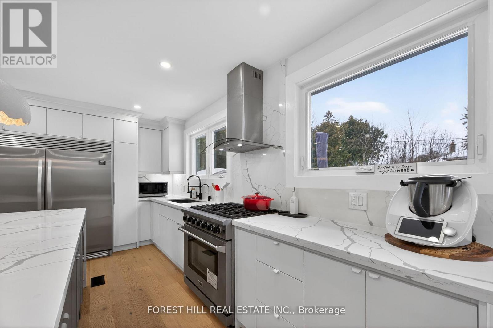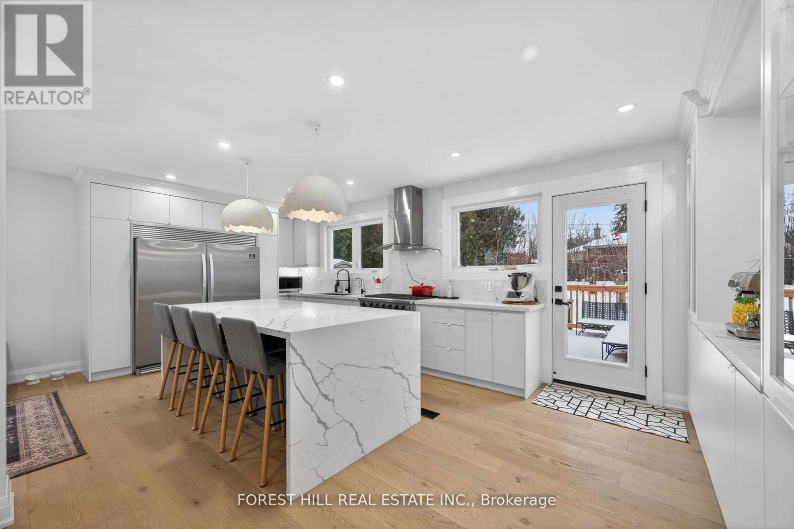 Beautifully renovated bungalow in prestigious Aurora. Extensively updated in 2022 with new windows, doors, roof shingles, HVAC, hardwood flooring, and modern glass railings. New deck added in 2023 and new bathtub installed in 2025.Spectacular open-concept gourmet kitchen featuring a quartz waterfall breakfast bar, oversized refrigerator, and gas stove/oven-perfect for entertaining. Finished basement offers a huge recreation room and an oversized bedroom, providing excellent additional living space. Tankless water heater and water softener included, EV charger for the car in the garage. No sidewalk allows parking for up to 3 cars on the driveway plus1-car garage. Large backyard and a bright home filled with natural light throughout. Just a 3-minute walk to Regency Acres Public School and St. Joseph Catholic Elementary School, close to Aurora High School, kids' parks, and scenic forest trails-perfect for families. (id:4555)