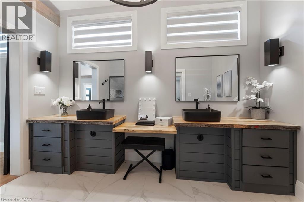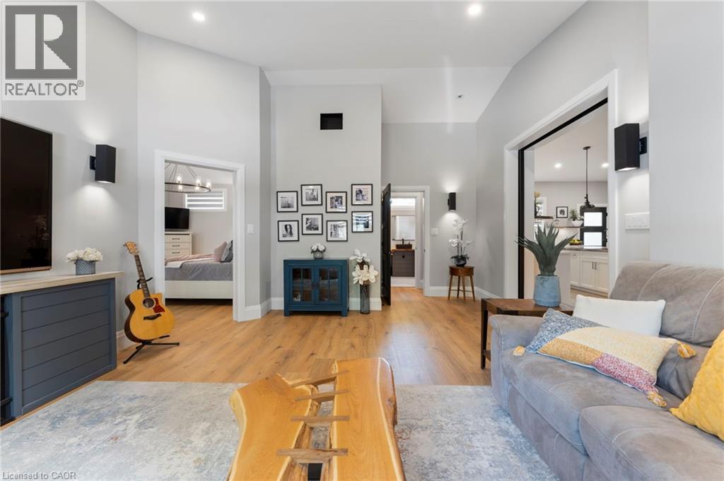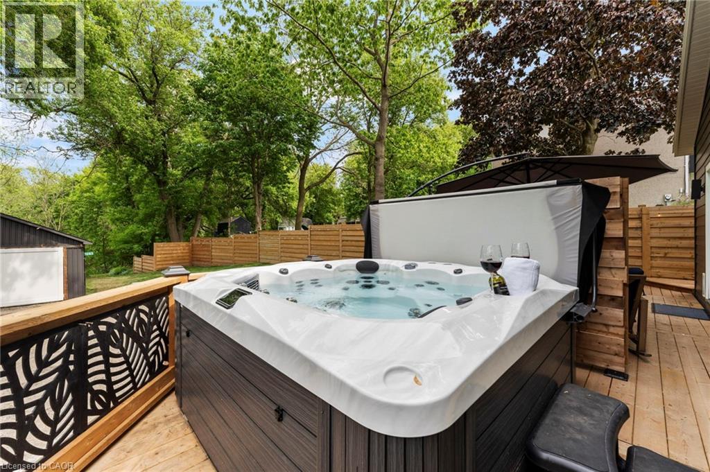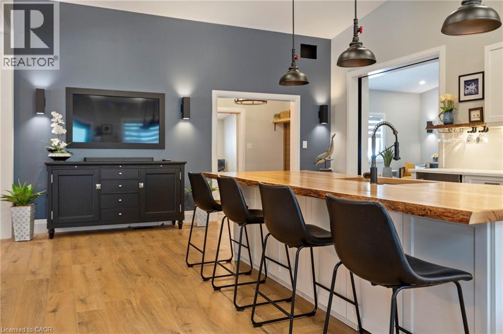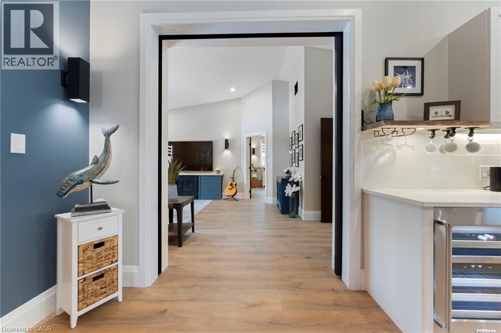 Luxurious, newly renovated and partially newly built 2759 sq foot bungalow sits on close to a half acre. This gorgeous home stuns with a private oasis out back - backing onto green space, in the trees. This property also boasts two driveways, garage/workshop, Yoga or art studio and a private deck with hot tub. Walking into this truly Show Home, you will be shocked. The foyer has a private guest bath and then opens up into a massive, soaring ceiling kitchen, living room and dining room. The heart of the home - the entertainer's dream kitchen, with 10 ft. live edge wormy maple slab island, built in appliances including wine fridge, curated lighting, quartz, gas cooktop, and black sink and fixtures, this room is show-stopping. The dining room and living room are breathtaking. Vaulted ceilings with stone fireplace, beamed ceilings, new windows and doors, it's magnificent. Off the living room is the entrance to one of two completely separate private living spaces. This large bedroom with sitting area, walk in closet and five pc bath with private laundry can easily be converted into two bedrooms (seller willing to do this). Back through the kitchen, behind the massive 8 foot sliding door, retreat to your luxurious primary suite. Private den, spa like bath with walk in double, stone shower, and a large secluded bedroom with a secondary room which encompasses a w/in closet, laundry, coffee station, and walkout to private sitting area with hot tub. Accessible via the side entry, a few stairs down, you'll find a private wine cellar/speakeasy/cigar lounge for a whisky retreat or poker nights. Exceptional attention to detail and too many wow features to list. (id:4555)