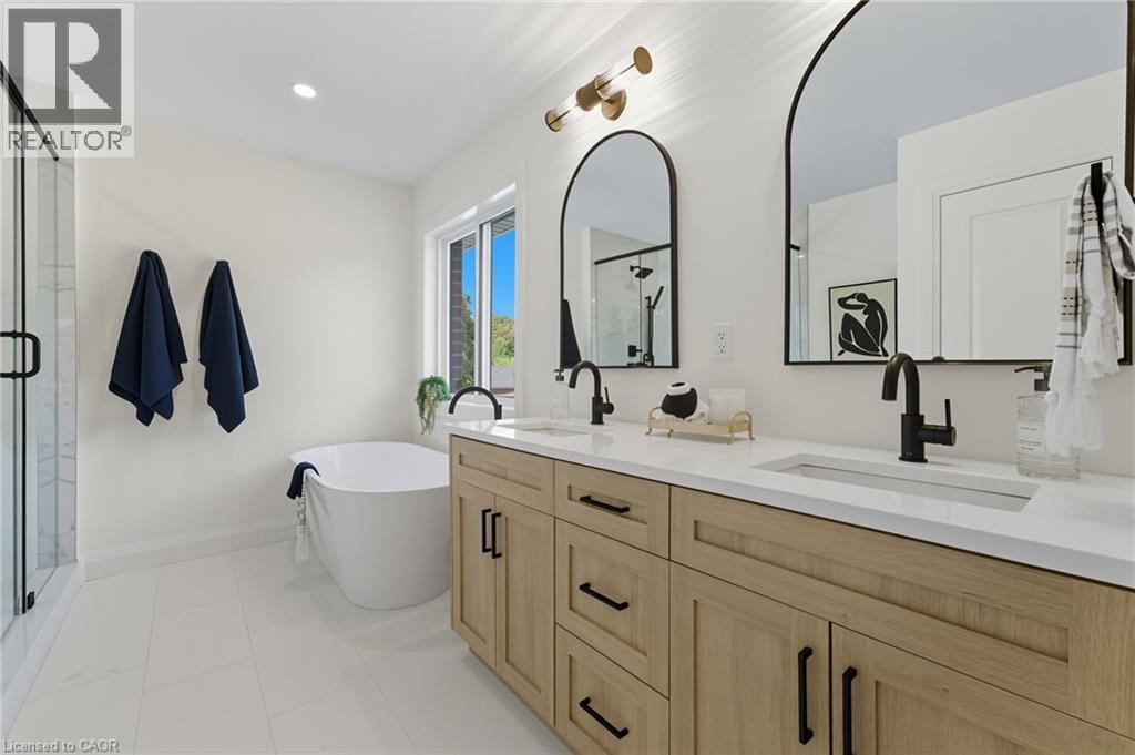 Welcome to 30 Manley Street—a show-stopping luxury residence in the heart of the sought-after village of Ayr, where timeless small-town charm meets modern elegance. This exceptional home offers over 3,600 sq. ft. of finished living space on a private, pool-sized lot on a quiet dead end street—just steps from parks, trails, schools, and everyday amenities. Inside, you’ll find 4+1 bedrooms, 3.5 baths, and upscale finishes throughout, including hardwood floors, quartz counters, and custom cabinetry. The chef’s kitchen is designed to impress with stainless steel appliances, a gas range, double oven, 9-ft island, coffee/wine bar, walk-in pantry, and abundant storage. The open-concept main floor also features a spacious living room with gas fireplace, a versatile bedroom/office, a stylish powder room, and an oversized mudroom with side entry. Upstairs, the custom white oak staircase leads to 3 generous bedrooms, each with its own walk-in closet. The luxurious primary suite showcases a spa-inspired 5-piece ensuite, while a convenient upper-level laundry room and main bath completes the space. The fully finished lower level is perfect for entertaining, offering a large recreation area, a full bathroom, and an additional bedroom. Outdoors, enjoy a large detached 21 x 21 garage, parking for 8 vehicles, and a family-sized yard—ready to bring your backyard dreams to life. Experience the warmth of Ayr’s vibrant community and the convenience of being just minutes from the 401. This home truly has it all—space, style, and location. Call your realtor today as this one won't last long. (id:4555)