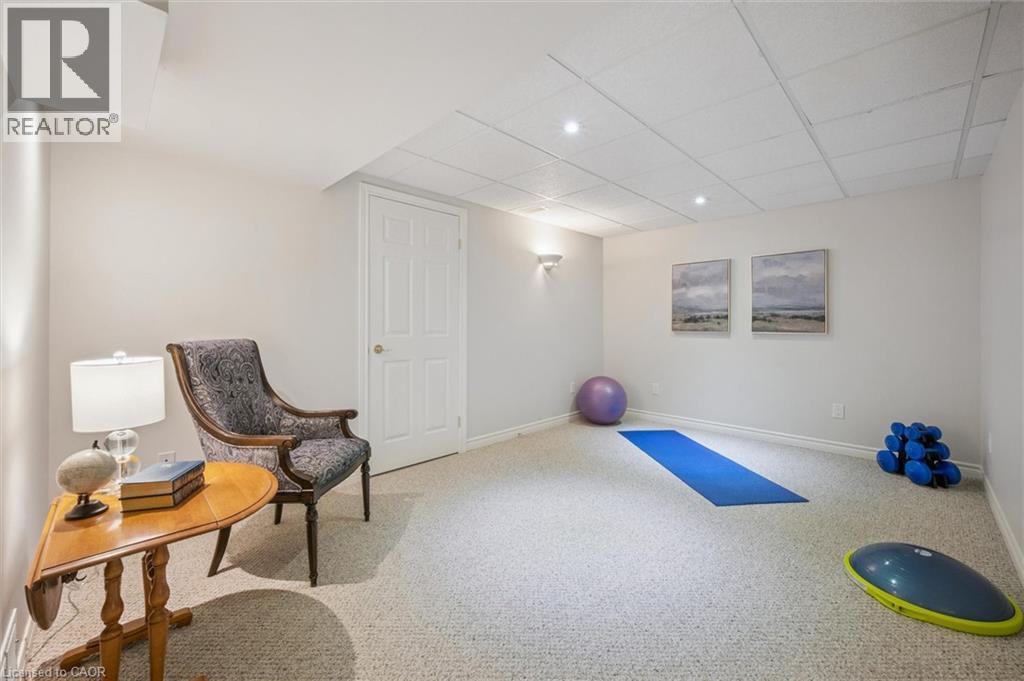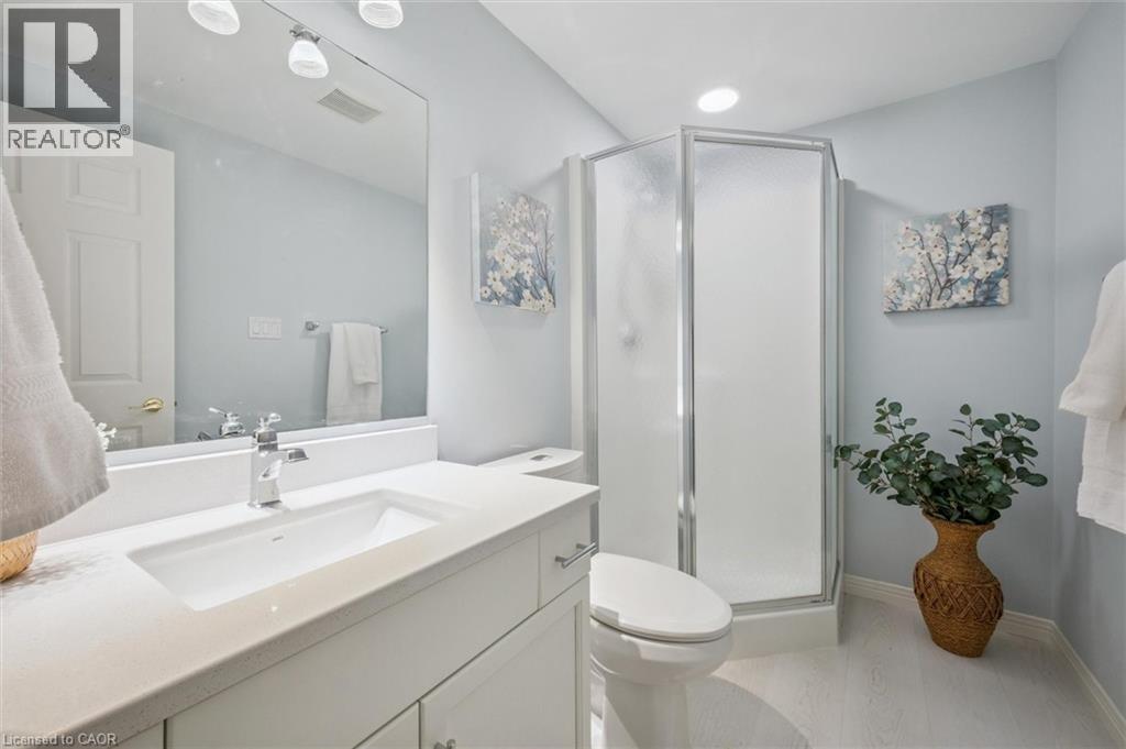 Welcome to Foxboro Green, an exclusive adult lifestyle community just 10 minutes from Kitchener–Waterloo and adjacent to Foxwood Golf Course. This updated all-brick Pine Model bungalow offers over 1,400 sq. ft. of living space with 3 bedrooms, 3 bathrooms, a fully finished basement, and double-car garage. The main level features hardwood flooring throughout, a bright living room with vaulted ceiling, gas fireplace, large windows with golf course view, an updated eat-in kitchen with newer appliances and access to the deck and two-tier brick patio, main-floor laundry and a formal dining room. The spacious primary bedroom includes a walk-in closet and updated 3-piece ensuite with walk-in shower, plus a second bedroom and updated 4-piece bath. The finished lower level offers a cozy rec room with gas fireplace, 3-piece bath, flex space ideal for home office, work-out area or hobby room. An additional bedroom makes this level perfect for visiting family or friends. You'll also appreciate the cold cellar, workshop area and ample storage. As a resident of Foxboro Green, you'll enjoy access to the community Recreation Centre offering an impressive array of amenities including an indoor pool, sauna, whirlpool, gym, tennis/pickleball, party room, library and more. The community also features 4.5 km of scenic walking trails enhancing the peaceful and active lifestyle Foxboro Green is known for. A wonderful opportunity for active, carefree living! (id:4555)
