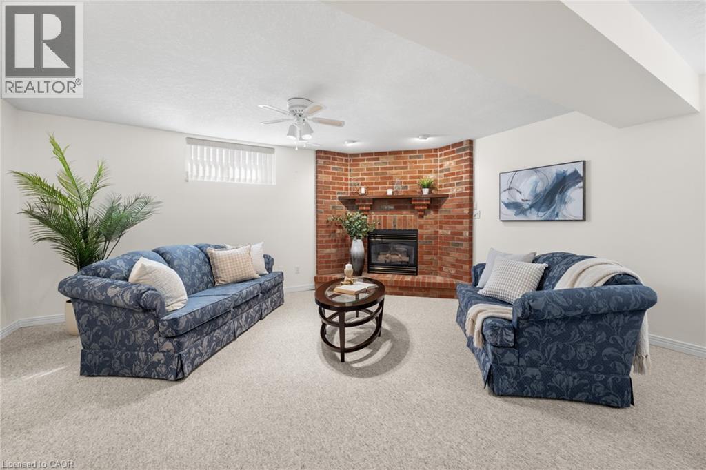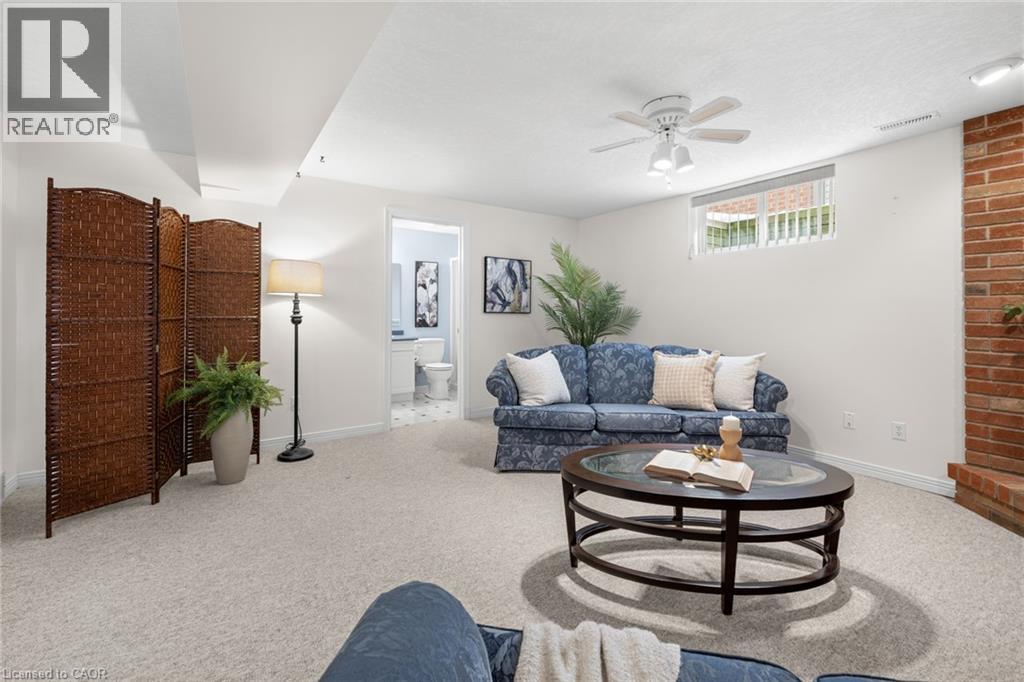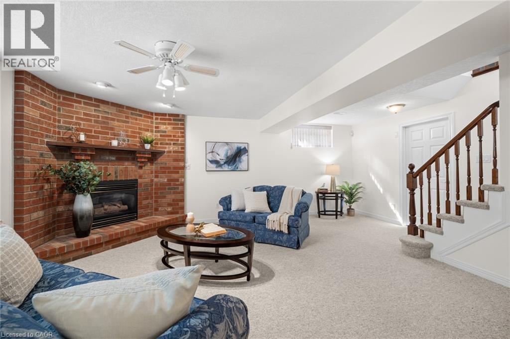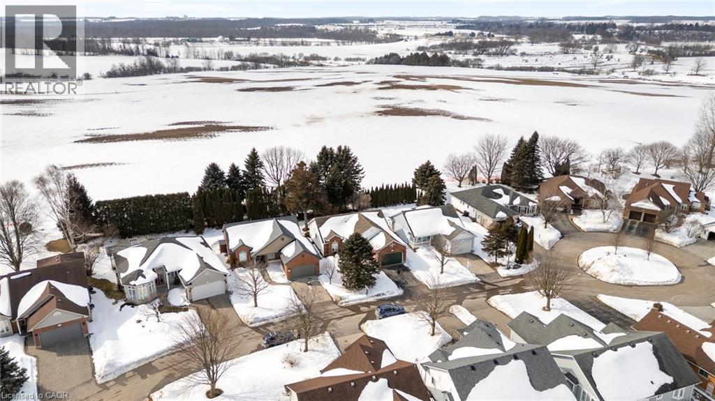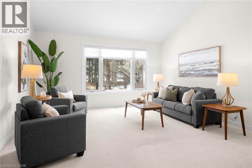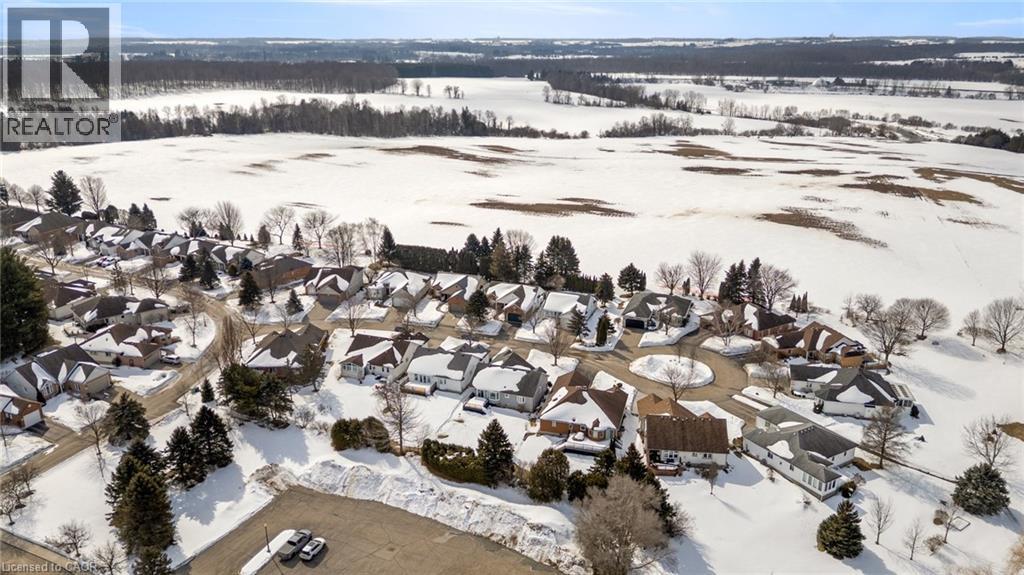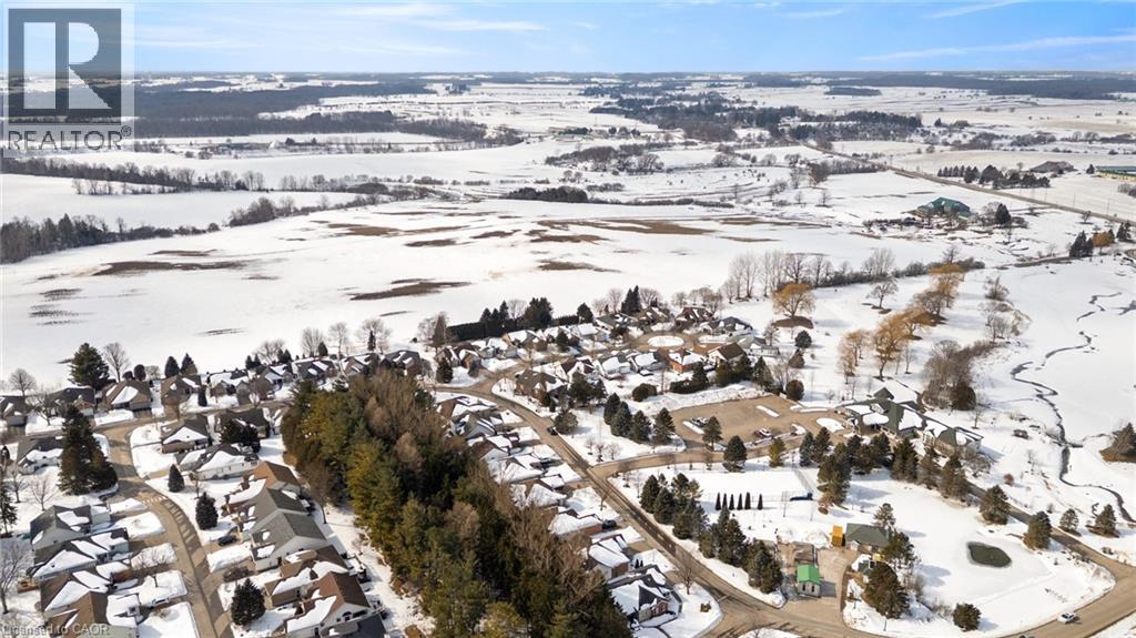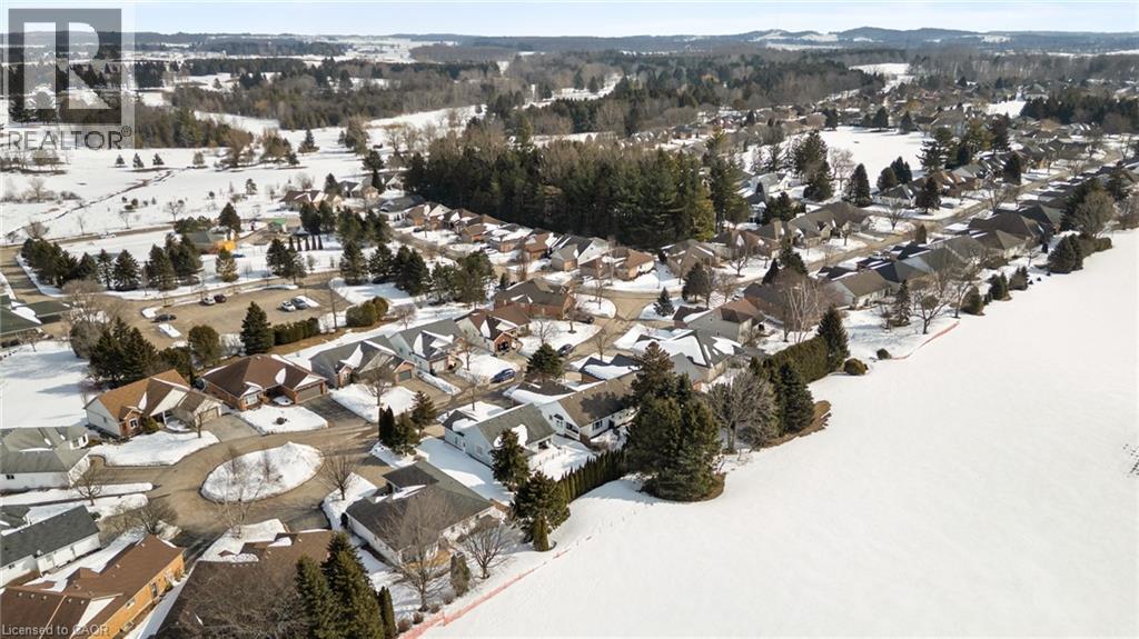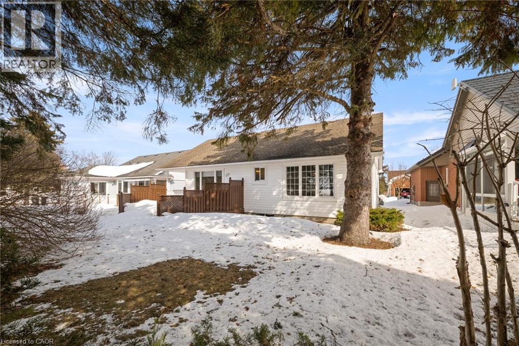 If you’re seeking an exclusive adult lifestyle community, Foxboro Green may be the perfect fit. Ideally located just 10 minutes from Kitchener-Waterloo and adjacent to Foxwood Golf Course, this lovely, well-maintained 1,300+ sq. ft. bungalow (Pine Model) offers 2 bedrooms, 3 bathrooms, a partially finished basement, and a 1.5-car garage. The inviting foyer overlooks a spacious living room with vaulted ceilings and a large picture window showcasing serene views of the private backyard. The main level features a separate dining room, convenient main-floor laundry, and a bright eat-in kitchen complete with quartz countertops, California shutters, and sliding doors leading to a deck overlooking the peaceful yard. Also on the main floor is a generous primary bedroom with walk-in closet and 3-piece ensuite, a second bedroom, and a 3-piece main bath. The lower level provides a cozy finished rec room with gas fireplace, an additional 3-piece bathroom, and ample storage/utility space. Residents of Foxboro Green enjoy exceptional amenities at the community Recreation Centre, including an indoor pool, sauna, whirlpool, tennis and pickleball courts, gym, party room, library, and more, along with 4.5 km of scenic walking trails throughout the community. Embrace an active, maintenance-friendly lifestyle — book your showing today. (id:4555)