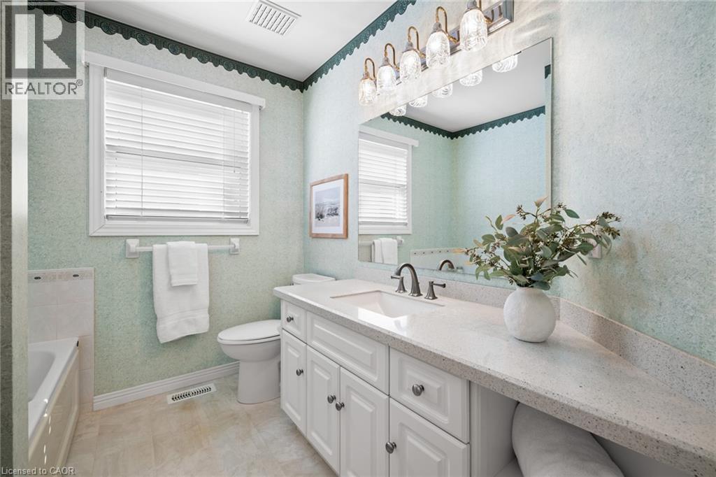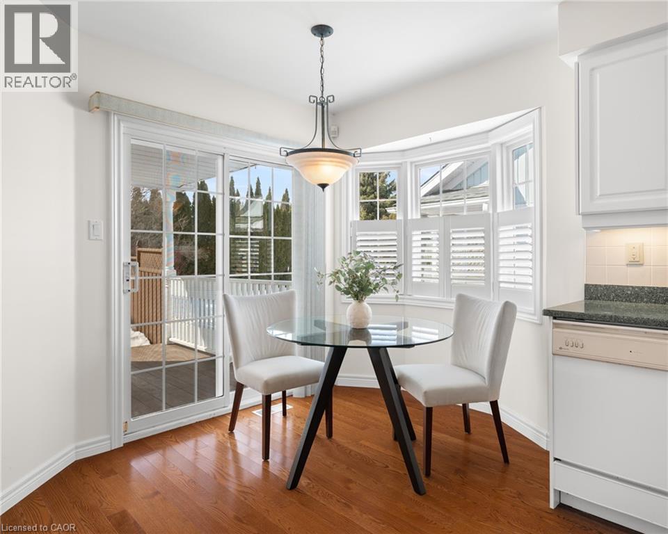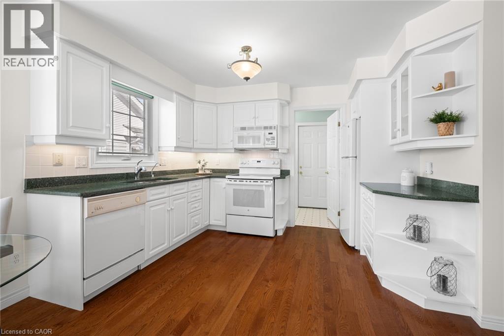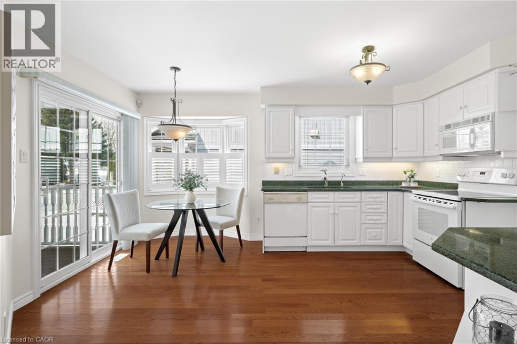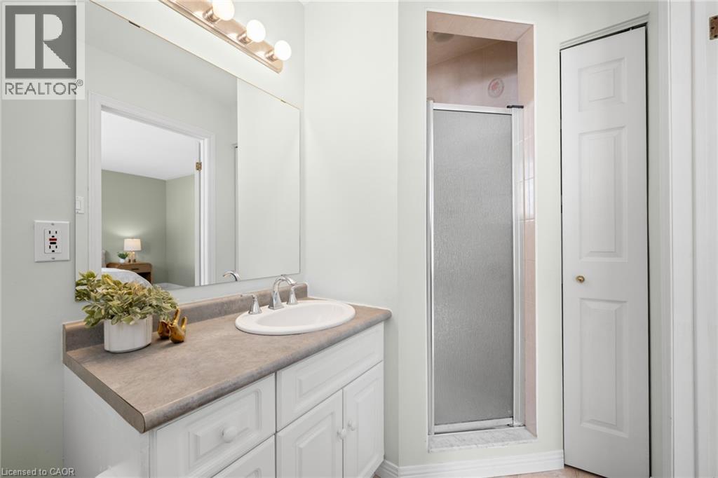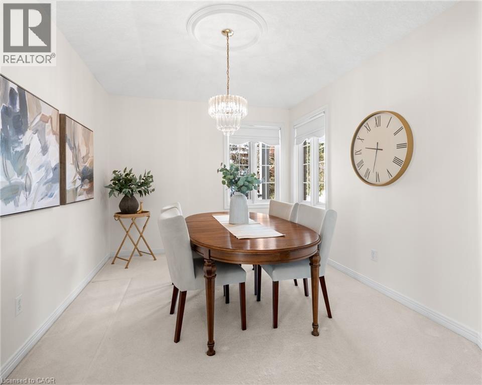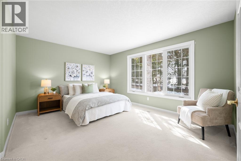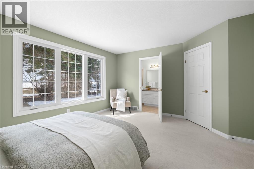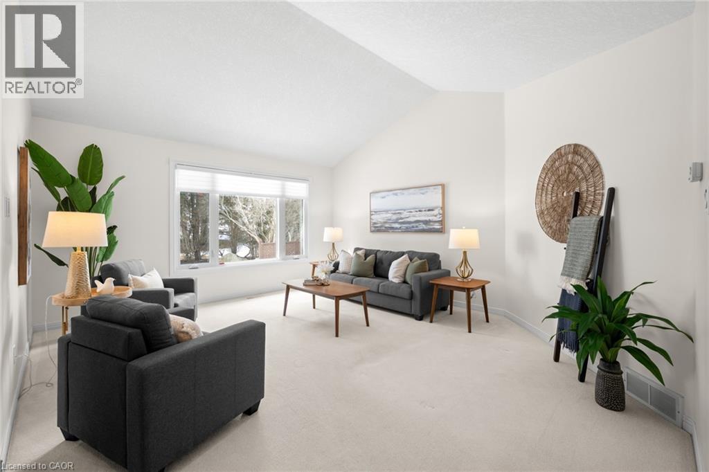 If you’re seeking an exclusive adult lifestyle community, Foxboro Green may be the perfect fit. Ideally located just 10 minutes from Kitchener-Waterloo and adjacent to Foxwood Golf Course, this lovely, well-maintained 1,300+ sq. ft. bungalow (Pine Model) offers 2 bedrooms, 3 bathrooms, a partially finished basement, and a 1.5-car garage. The inviting foyer overlooks a spacious living room with vaulted ceilings and a large picture window showcasing serene views of the private backyard. The main level features a separate dining room, convenient main-floor laundry, and a bright eat-in kitchen complete with quartz countertops, California shutters, and sliding doors leading to a deck overlooking the peaceful yard. Also on the main floor is a generous primary bedroom with walk-in closet and 3-piece ensuite, a second bedroom, and a 3-piece main bath. The lower level provides a cozy finished rec room with gas fireplace, an additional 3-piece bathroom, and ample storage/utility space. Residents of Foxboro Green enjoy exceptional amenities at the community Recreation Centre, including an indoor pool, sauna, whirlpool, tennis and pickleball courts, gym, party room, library, and more, along with 4.5 km of scenic walking trails throughout the community. Embrace an active, maintenance-friendly lifestyle — book your showing today. (id:4555)