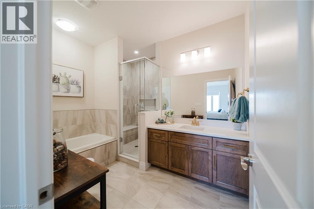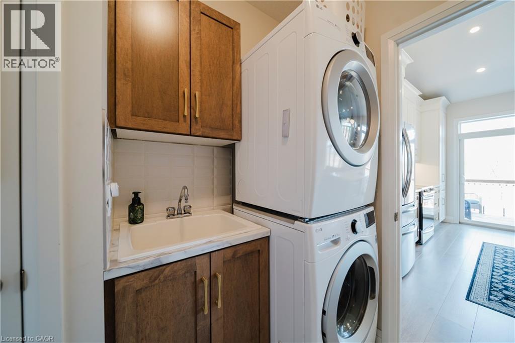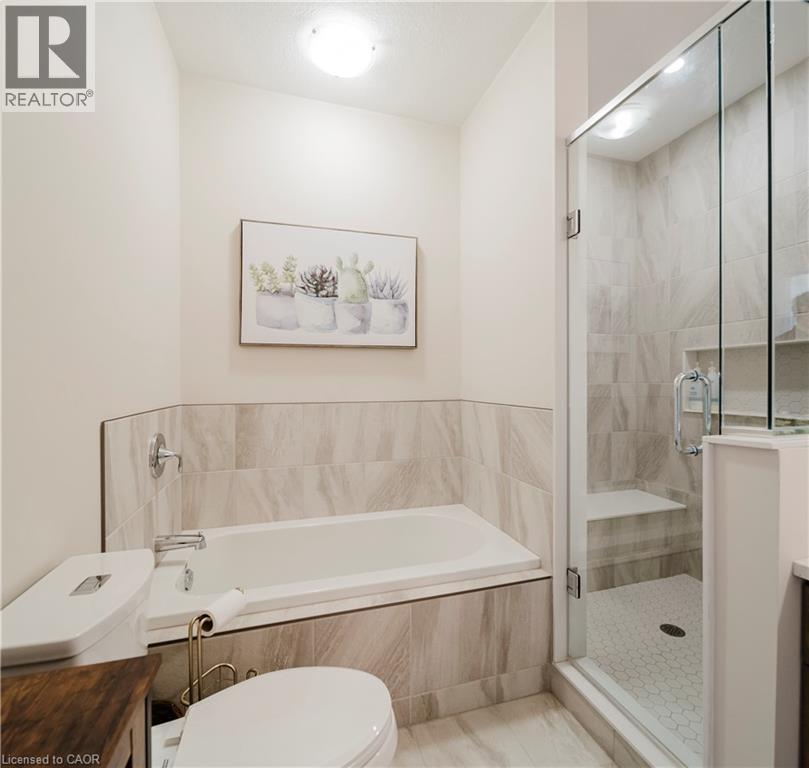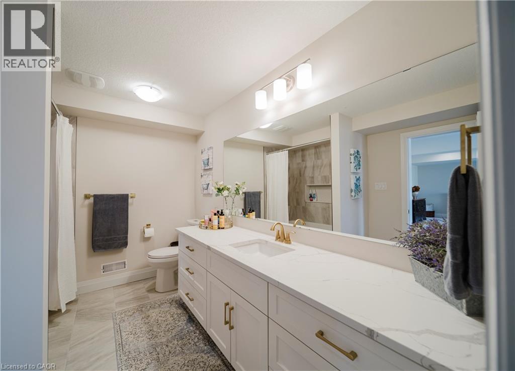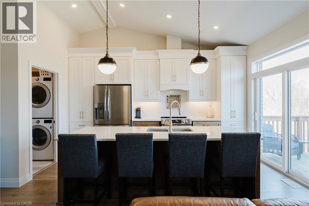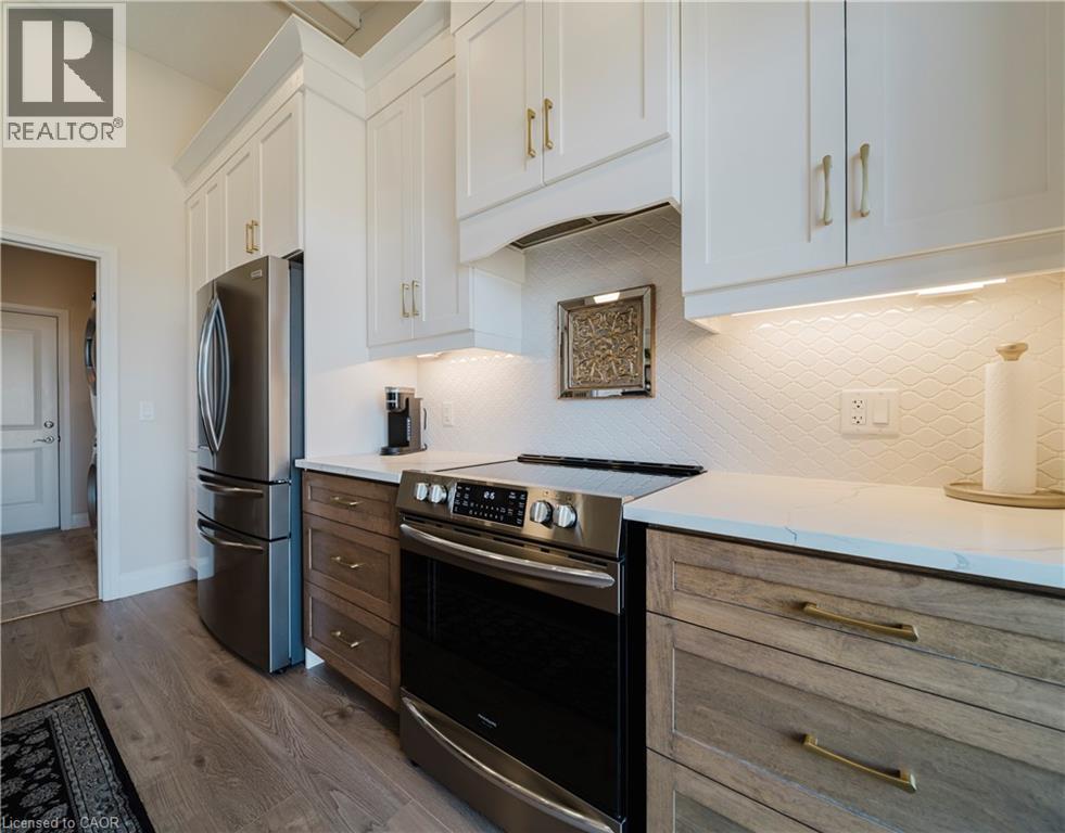 Welcome to Timberlane—an exclusive Baden community—where this exceptional end-unit bungalow townhome stands out with designer-inspired finishes and a premium greenspace setting that offers added privacy. The main level showcases a modern open-concept layout, anchored by a stunning custom stone fireplace that creates a warm and inviting focal point. Oversized windows flood the space with natural light, while the thoughtfully designed floorplan includes two spacious bedrooms and two bathrooms. At the heart of the home is the beautifully finished kitchen, featuring elevated finishes and designed with both style and functionality in mind—perfect for hosting. Convenient main floor laundry completes this level. The bright lower level offers oversized windows and a walkout to the private backyard, creating a seamless extension of the living space. Here, you’ll find a large bedroom with a cheater ensuite, a generous rec room with a second custom stone fireplace, and an oversized storage room ideal for hobbyists or additional organization. Step outside to enjoy a private deck overlooking serene greenspace—an ideal setting to relax or entertain. Additional highlights include a double car garage, parking for two more vehicles, and convenient access to nearby visitor parking. Perfectly located just 10 minutes from Kitchener-Waterloo, this home offers the best of both worlds—peaceful community living with easy access to city amenities. With tennis courts across the street, a nearby recreation centre, and scenic trails to enjoy, it’s an ideal setting for an active lifestyle. A beautifully finished home in one of Baden’s most sought-after communities. (id:4555)