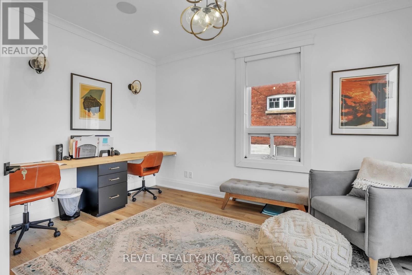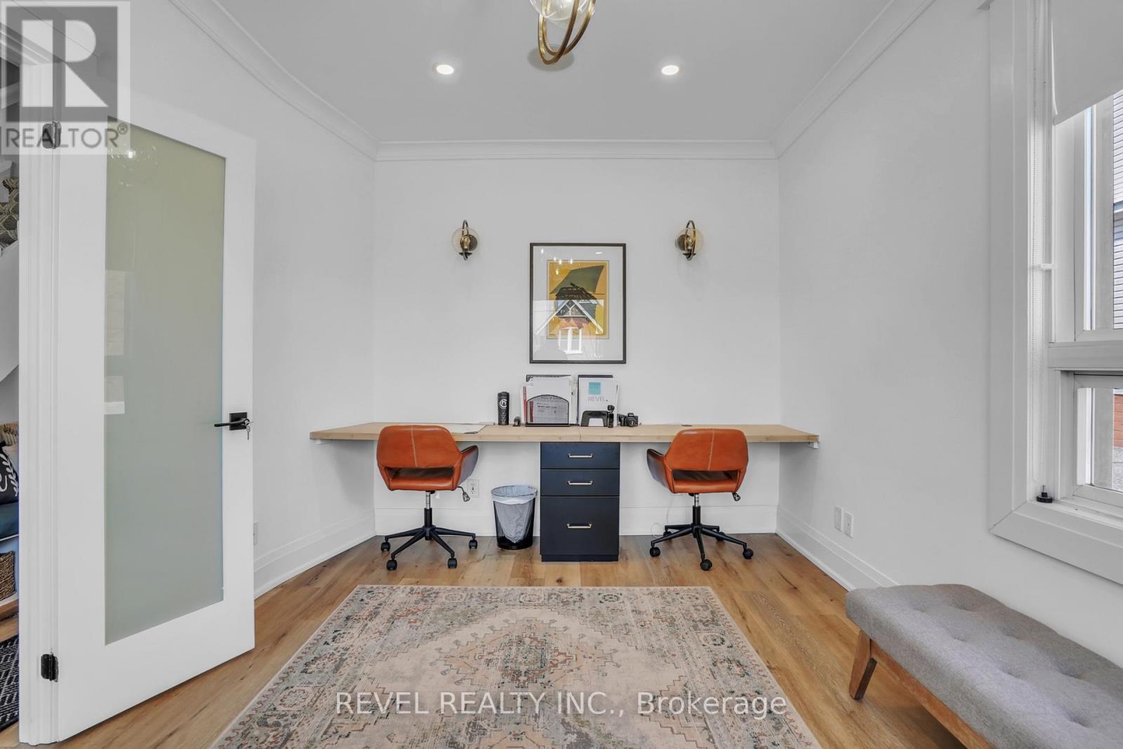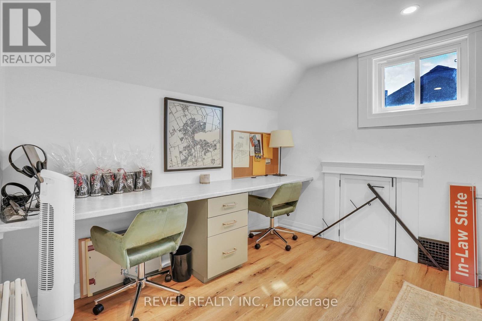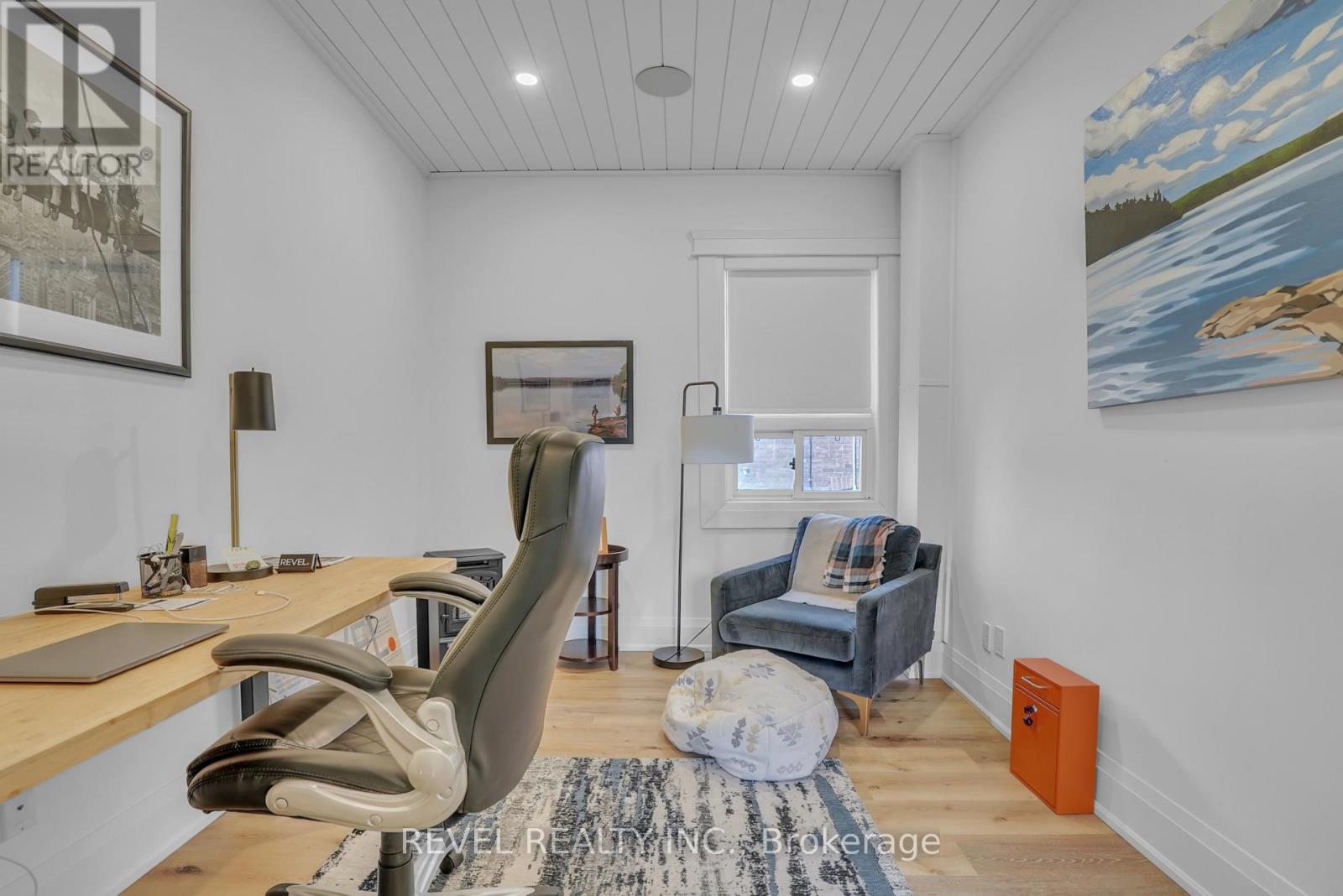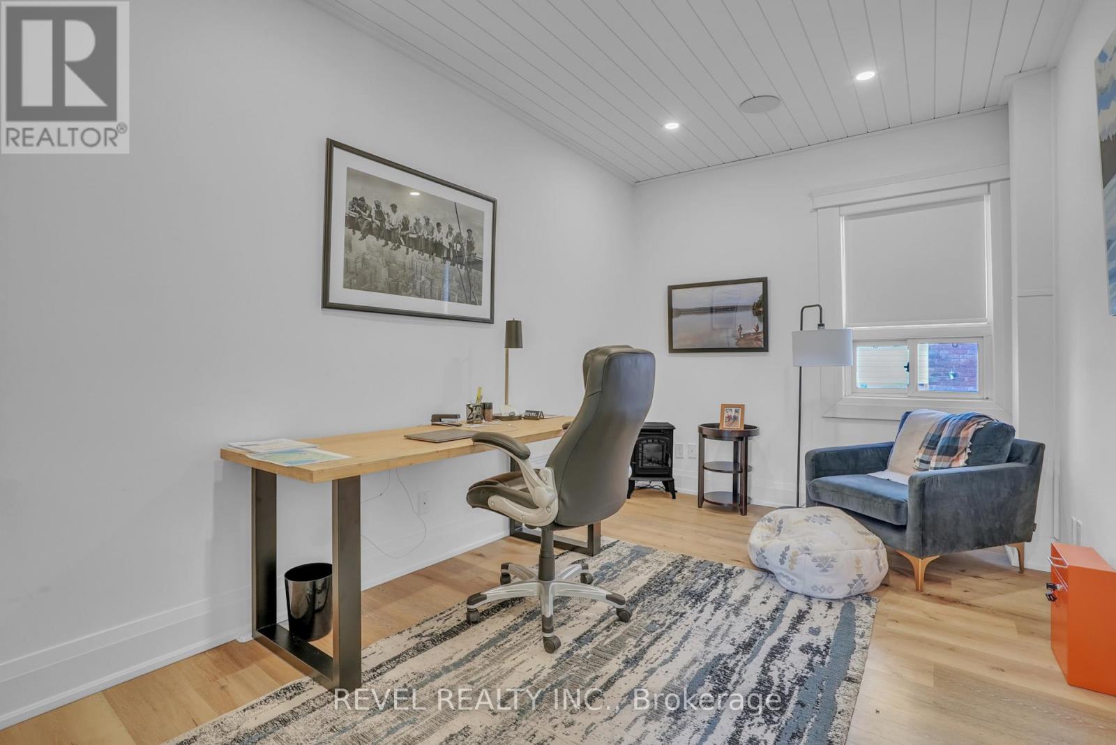 Exceptional Commercial Space | Designed to Impress, Situated to Succeed. Welcome to a beautifully appointed commercial property that blends functionality with sophisticated design, located in a highly sought-after location that ensures maximum visibility & convenience. Located just steps away from Barrie's waterfront, the flexible C4 zoning allows for several potential uses including: Office, Retail, Service, Veterinary, etc. From the moment you arrive, the professionally landscaped grounds, complete with elegant hardscaping & vibrant plantings, set the tone for this standout space. The attractive front signage offers excellent curb appeal & can be easily customized to reflect your brands identity. Step inside through the new front & side entrances (2021) and youre greeted by a stunning large conference room and welcoming seating area, anchored by a modern electric fireplace and a sleek dry bar/coffee stationthe perfect environment to host clients and team meetings. The main level also features two private offices, a well-equipped kitchen area, 1.5 tastefully updated bathrooms, and a secondary meeting area and waiting room, all adorned with durable laminate flooring and tile in the bathroomsa seamless blend of style and practicality. Upstairs, discover an airy, open-concept workspace designed to inspire productivity, complete with another private office featuring four custom-built workstations. Every detail speaks to quality, from the upgraded light fixtures and tilework to the integrated stereo system and wiring for a full security setup. With 10 private parking spaces across two driveways, this property offers rare convenience for both staff and clients. Nearly all windows were replaced in 2021, maximizing natural light and energy efficiency. Whether youre establishing a new business or relocating to a more refined space, this property offers an unbeatable combination of design-forward interiors and a premium locationtruly a place where business can thrive. (id:4555)