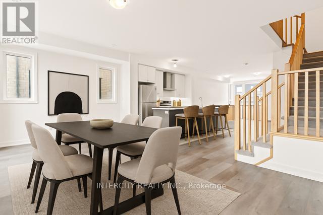 Power of Sale Opportunity. Welcome to your dream home: a sun-drenched executive corner townhome nestled in one of Barrie's most family-friendly neighborhoods at Yonge Street & Mapleview Drive East. Offering over 2,000 sq. ft. of stylish, functional living space, this4-bedroom, 4-bathroom residence is ideal for growing families seeking comfort, flexibility, and convenience. The main level features a finished rec room that easily functions as a 5th bedroom, home office, gym, or playroom. Upstairs, an open-concept design with soaring 9-ft ceilings and upgraded flooring creates a perfect flow for both entertaining and everyday living. The modern chefs kitchen is outfitted with quartz countertops, stainless steel appliances, a sleek backsplash, and a large breakfast island ideal for busy mornings or relaxed weekend gatherings. Upstairs, retreat to the private primary suite featuring a walk-in closet and spa-inspired ensuite. Additional bedrooms offer ample space and natural light for family, guests, or hobbies. Situated on a premium ravine lot with no rear neighbors, this home includes two private balconies, main-floor laundry, and an unspoiled lookout basement with endless potential. Located just minutes from parks, top-rated schools, GO Transit, shopping, dining, and Hwy 400 this Town home is more than a home; its a rare lifestyle and investment opportunity not to be missed. (id:4555)