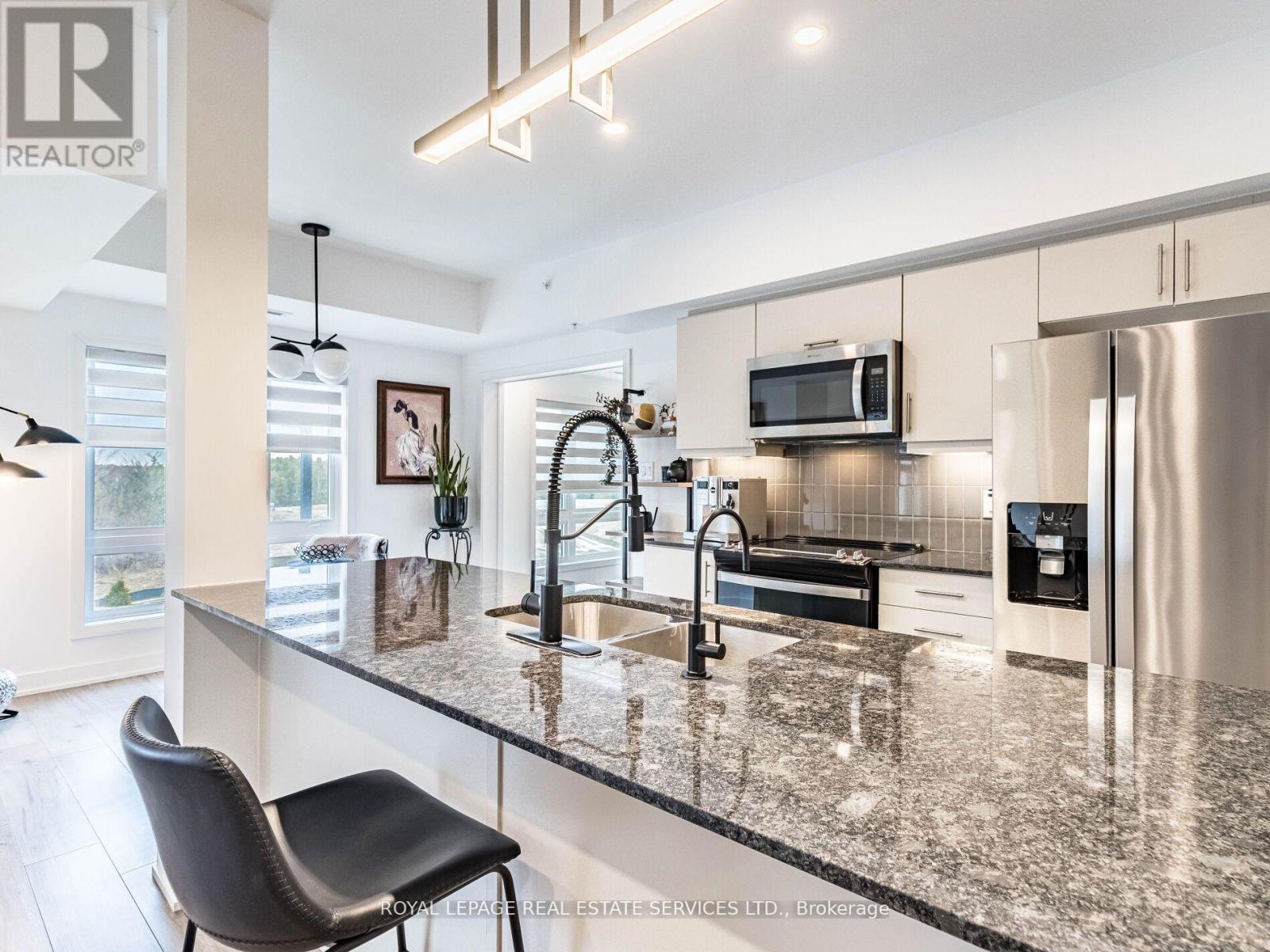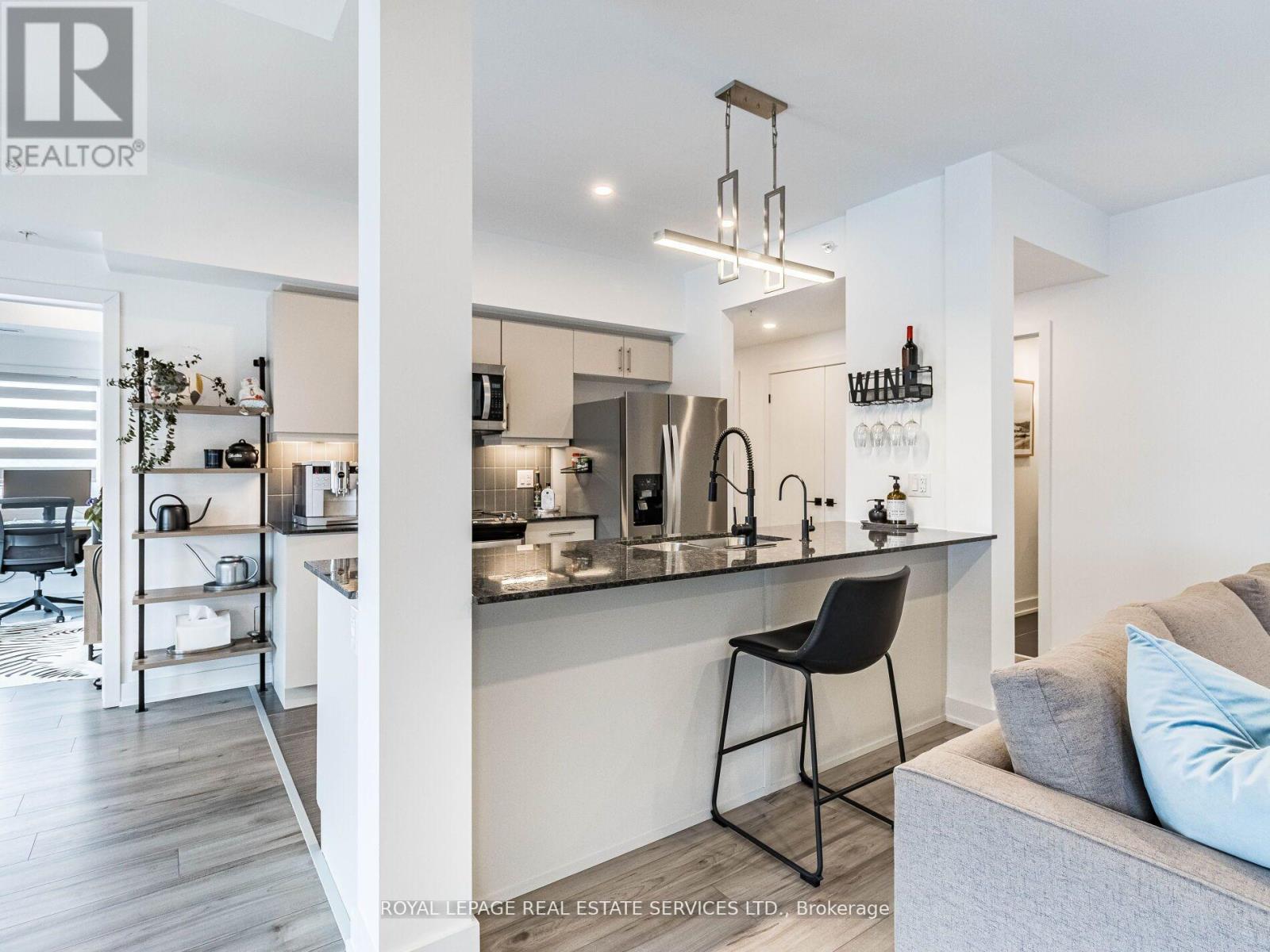 Stunning Renovated Corner Unit in Bistro 6 - Culinary-Inspired Condo Living in Barrie! Welcome to this gorgeous, sun-filled corner unit featuring over $60,000 in high-end renovations and modern finishes. Located in the sought-after Bistro 6 community, this spacious 3-bedroom condo showcases 9 smooth ceilings, premium laminate flooring, pot lights, and fully upgraded bathrooms - one with a sleek glass shower enclosure. The chef-inspired kitchen is an entertainers dream, boasting deluxe cabinetry, granite countertops, modern lighting, custom shelving, and stylish fixtures. The primary bedroom offers a serene retreat, while two additional bedrooms provide flexibility for family, guests, or a home office. Enjoy the convenience of a dedicated laundry room, custom-designed closet organizers, and full swing closet doors. Step outside to a large private balcony overlooking a protected green space, complete with a gas BBQ hookup - perfect for outdoor dining and relaxation. Includes one underground and one surface parking space, plus a private locker for extra storage. Resort-style amenities include a state-of-the-art fitness center, basketball court, kids' playground, chefs kitchen/lounge, and an outdoor kitchen with pizza ovens - ideal for gatherings and entertaining. Just minutes to the Barrie South GO Station, parks, restaurants, shops, schools, and the lake! (id:4555)